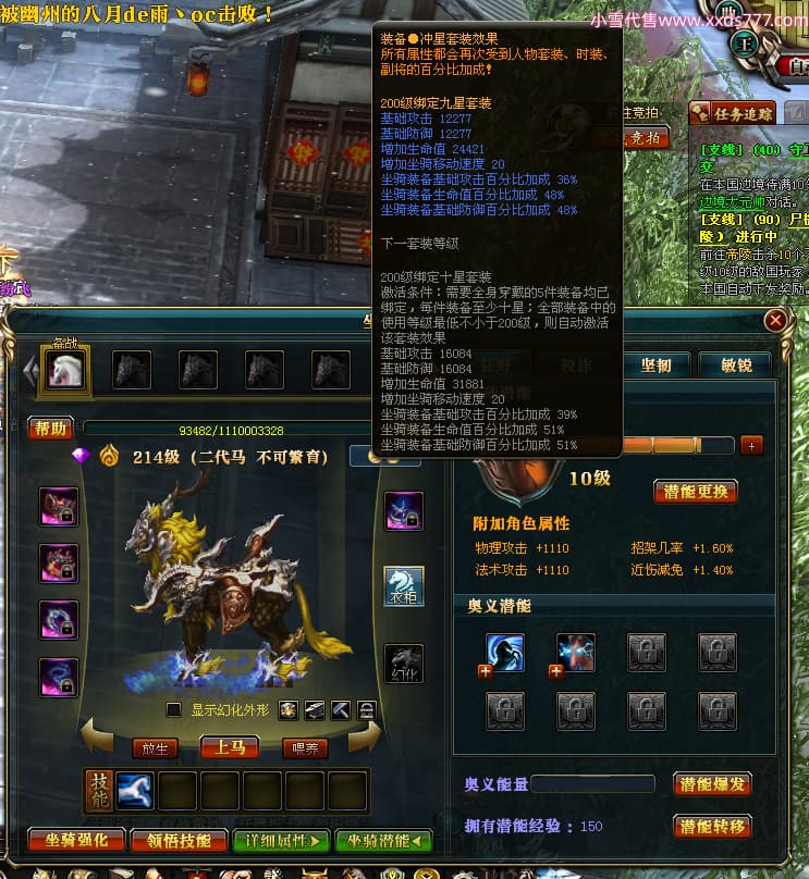 编号T24098 分割急暗爽 龙腾问鼎 江州 209级 人物12X点星号 铭刻12级 点亮12星 马9X 号内Q币90个 人物高淬32个 坐骑中淬1个
