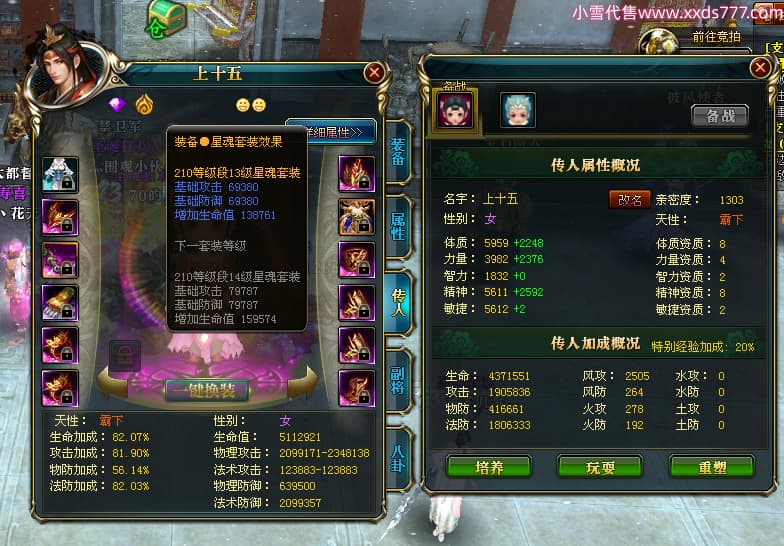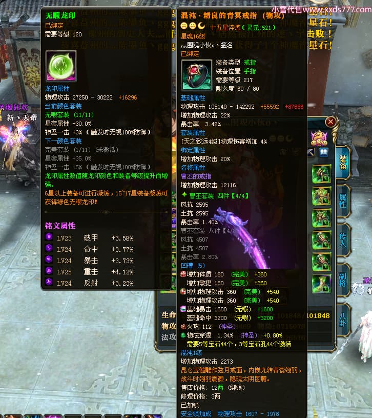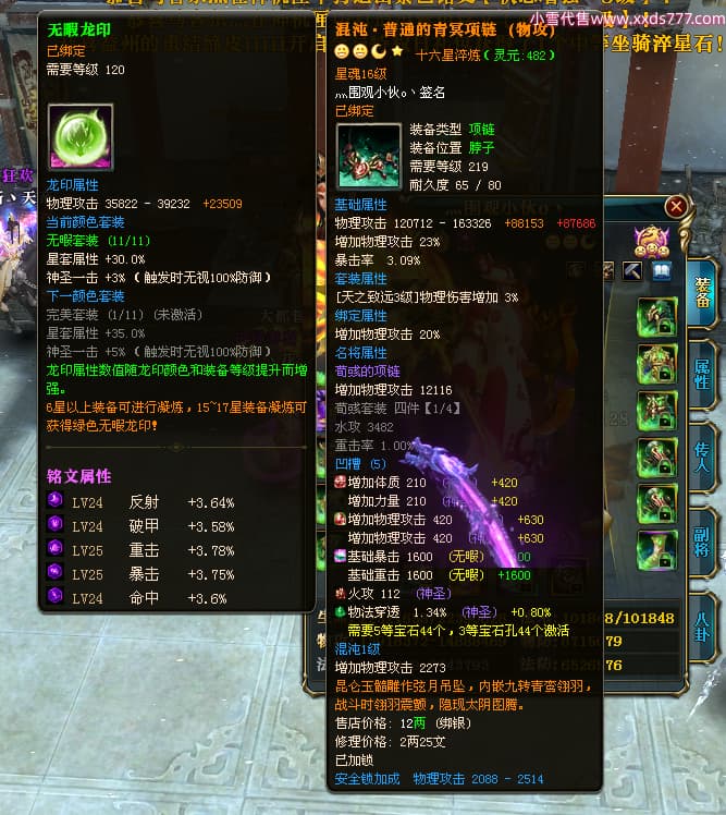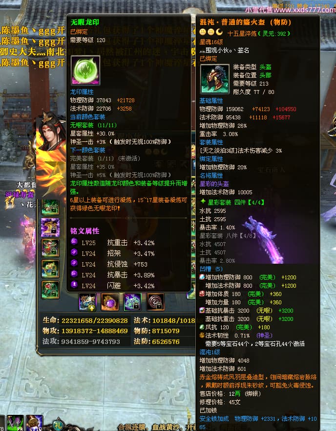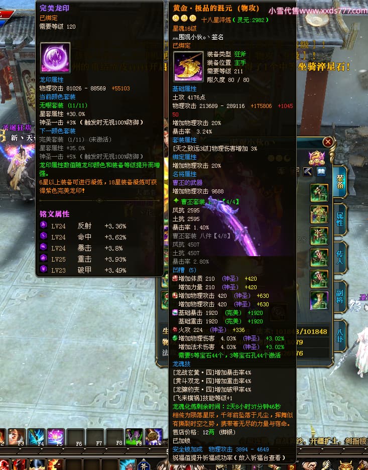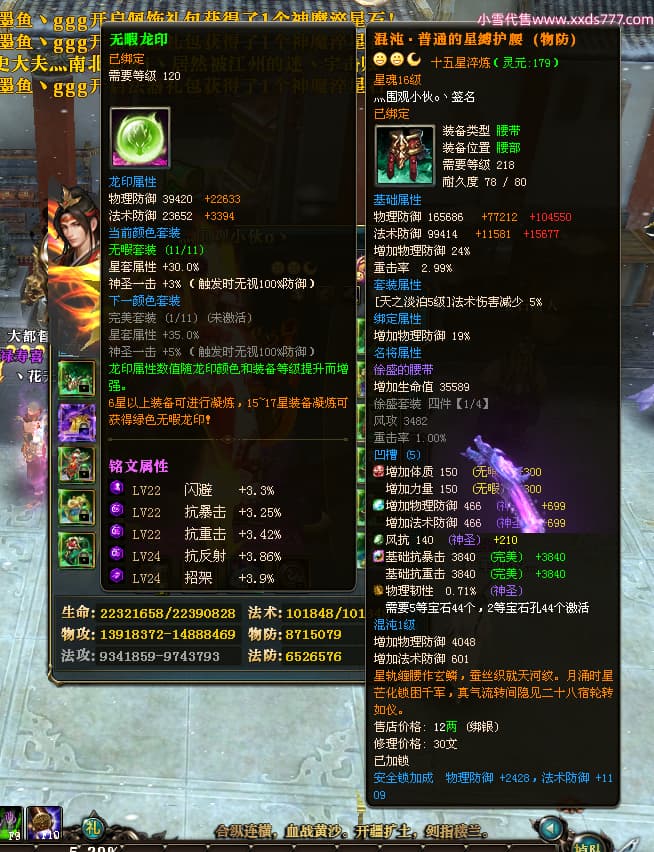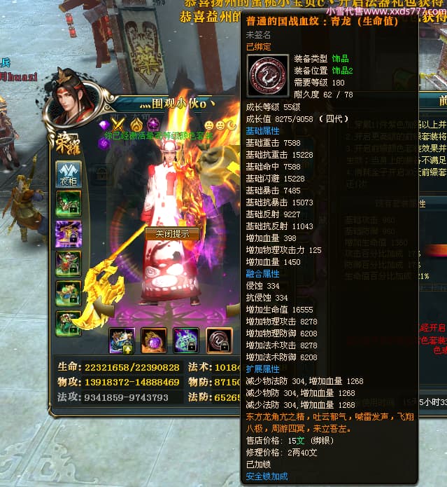编号T24108 灬围观小伙o丶 龙腾问鼎 青州 本国排名8名 21110W战力 人物黄金普通橙15X(1件18X7件混沌) 传人极品紫12X 副将精良紫12X 马普通橙13X(双潜能50级34级) 极品紫15披风 人物星魂16级 传人星魂13级 副将星魂6级 马星魂16级 人物铭刻1件16级其余15级 人物点亮16星 马铭刻13级 点亮14星 人物绿龙印(1件紫龙印) 马黄龙印 六等单双属性完美无暇神圣石头 黄绿孔 已开完永久15星套 可以转移百分百安全