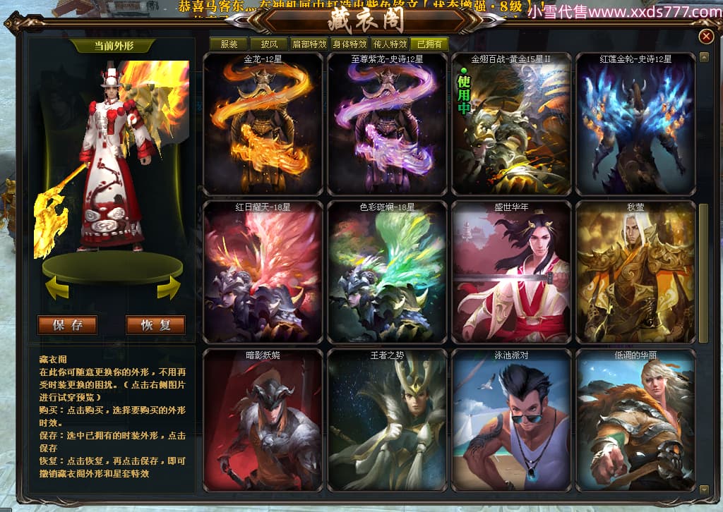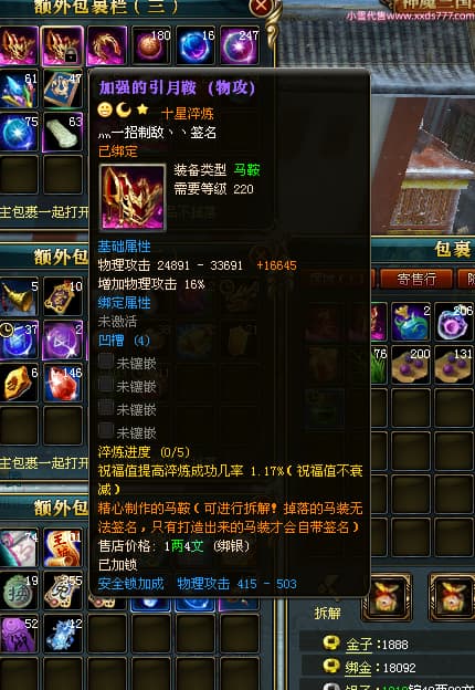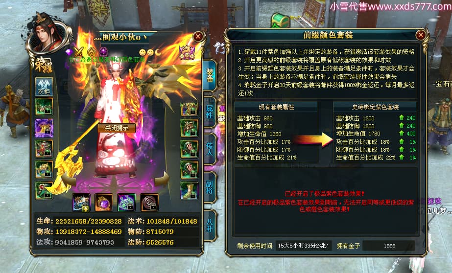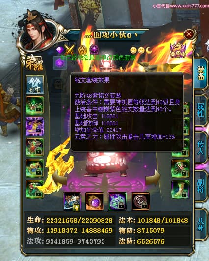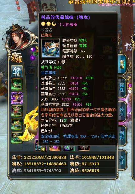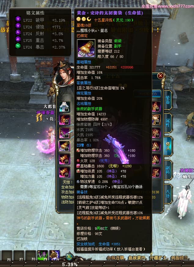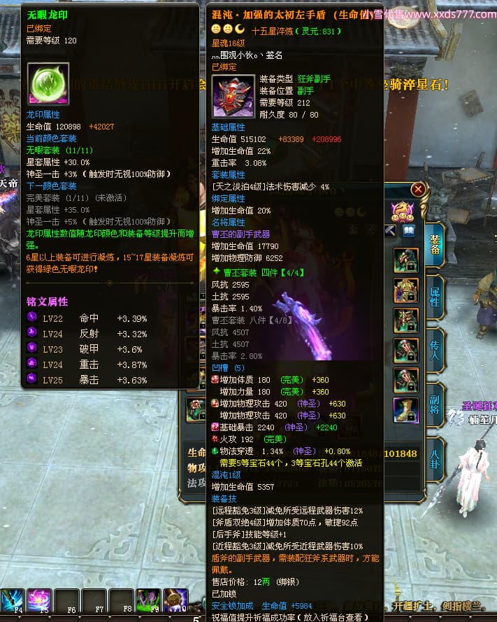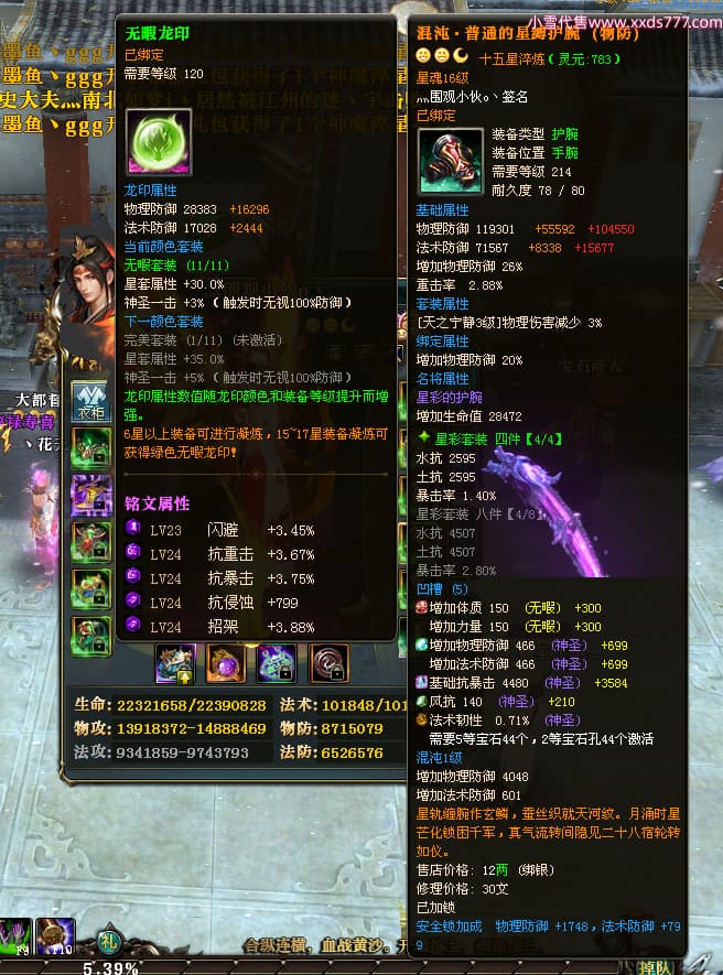 编号T24108 灬围观小伙o丶 龙腾问鼎 青州 本国排名8名 21110W战力 人物黄金普通橙15X(1件18X7件混沌) 传人极品紫12X 副将精良紫12X 马普通橙13X(双潜能50级34级) 极品紫15披风 人物星魂16级 传人星魂13级 副将星魂6级 马星魂16级 人物铭刻1件16级其余15级 人物点亮16星 马铭刻13级 点亮14星 人物绿龙印(1件紫龙印) 马黄龙印 六等单双属性完美无暇神圣石头 黄绿孔 已开完永久15星套 可以转移百分百安全