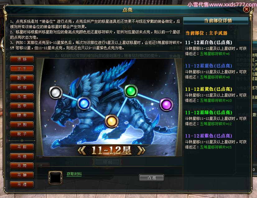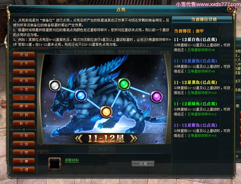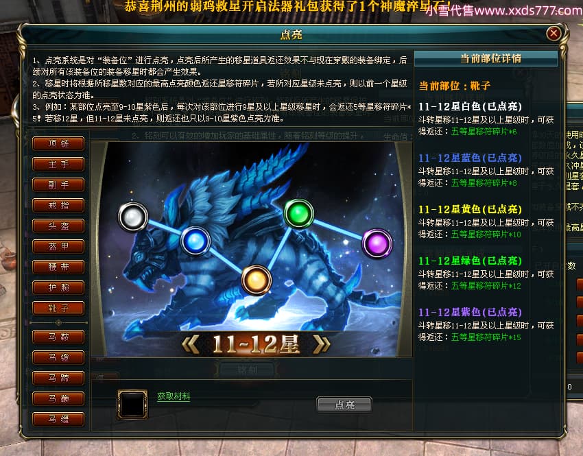 编号W24110 小D同学 龙舞九州 徐州 208级 4188W战力 人物12X点星号 铭刻12级 点亮12星 传人12X 副将12X 马9X 号内Q币1149个 人物高淬868个 坐骑中萃278个 坐骑高淬3个