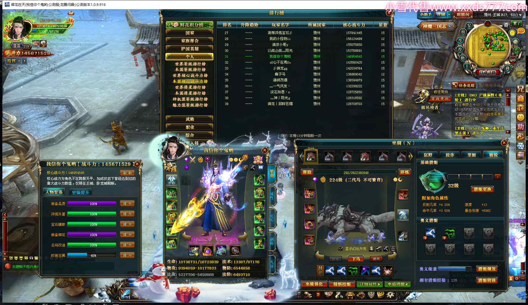 编号T24145 我信你个鬼哟 龙腾问鼎 豫州 本国排名31名 14567W战力 人物黄金史诗紫15X(3件混沌) 传人精良紫12X 副将精良紫12X 马史诗紫9X 精良紫14披风 人物星魂16级 传人星魂7级 副将星魂6级 马星魂9级 人物铭刻5件15级其余12级 人物点亮2件14星其余12星 马铭刻12级 马点亮10星 人绿龙印 马黄龙印 五六等单双属性神圣完美无暇石头 黄蓝孔 可以转移百分百安全