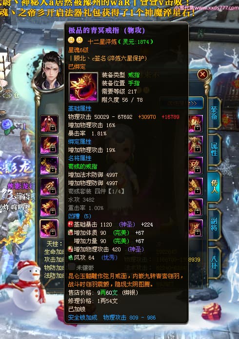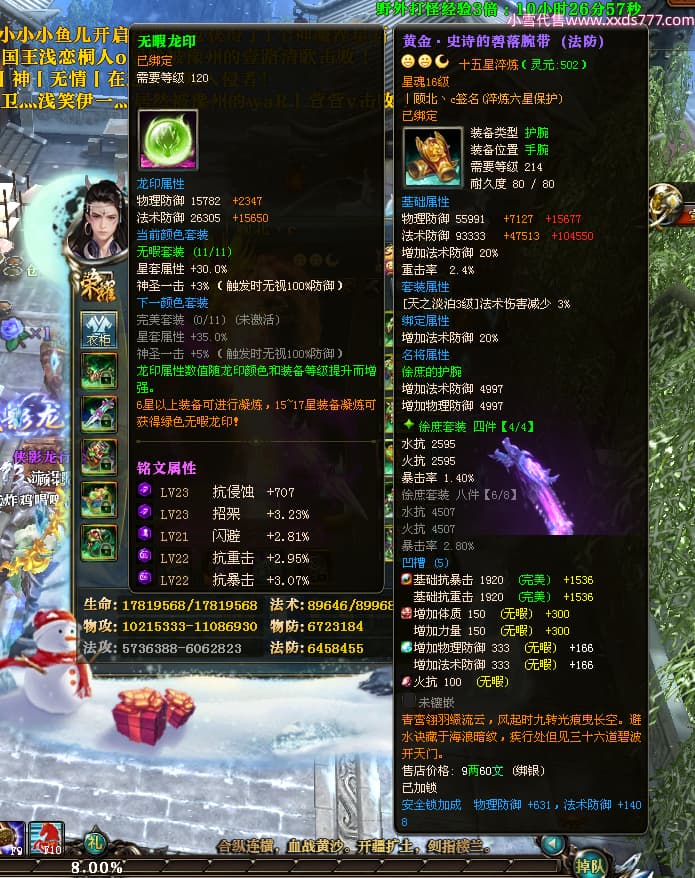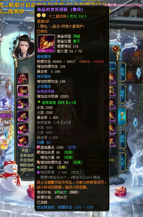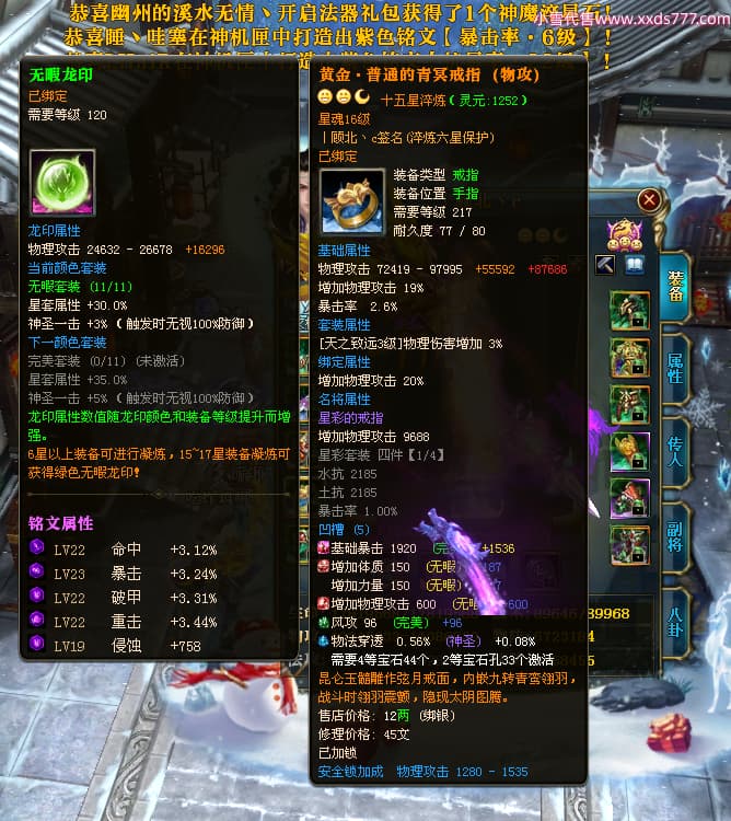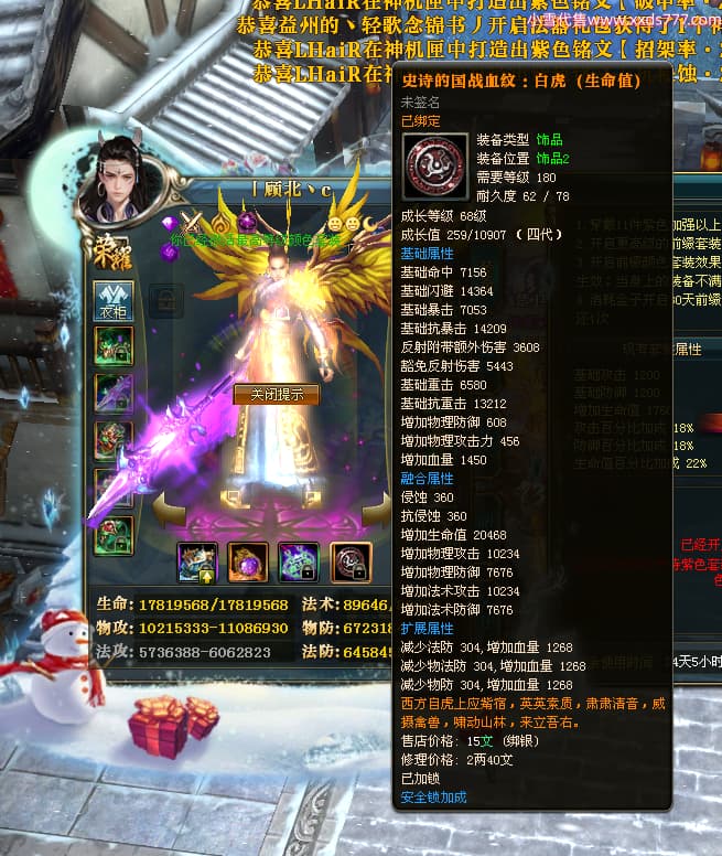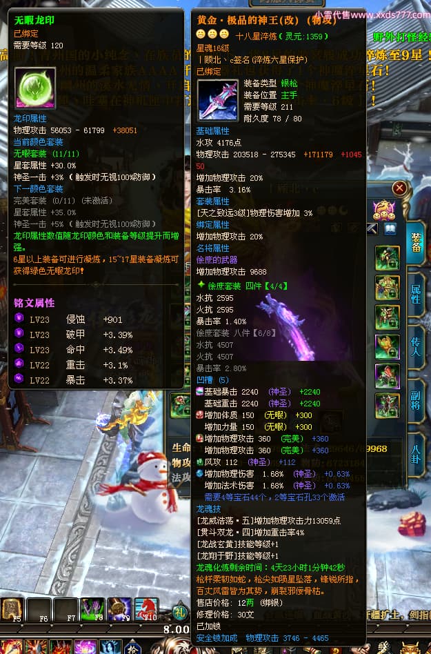编号W24165 丨顾北丶c 龙舞九州 徐州 本国排名20名 15348W战力 人物黄金普通橙15X(7件混沌) 传人极品紫12X 副将精良紫12X 马史诗紫10X 精良紫15披风 人物星魂16级 传人星魂6级 副将星魂6级 马星魂8级 人物铭刻15级 点亮6件16星其余14星 马铭刻12级 点亮10星 人物绿龙印 马黄龙印 五六等单双属性神圣完美无暇石头 黄蓝白孔