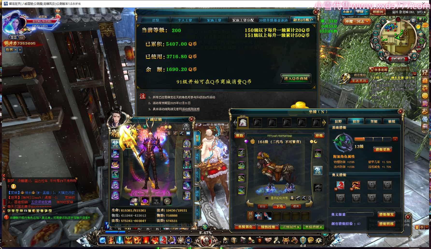 编号X24174 丿戚层驰 龙啸风云 益州 200级 人物12X点星号 马9X 人物高淬344个 坐骑中淬867个 可以转移百分百安全