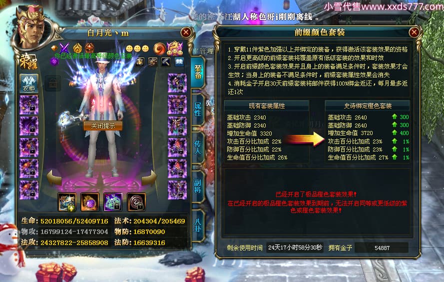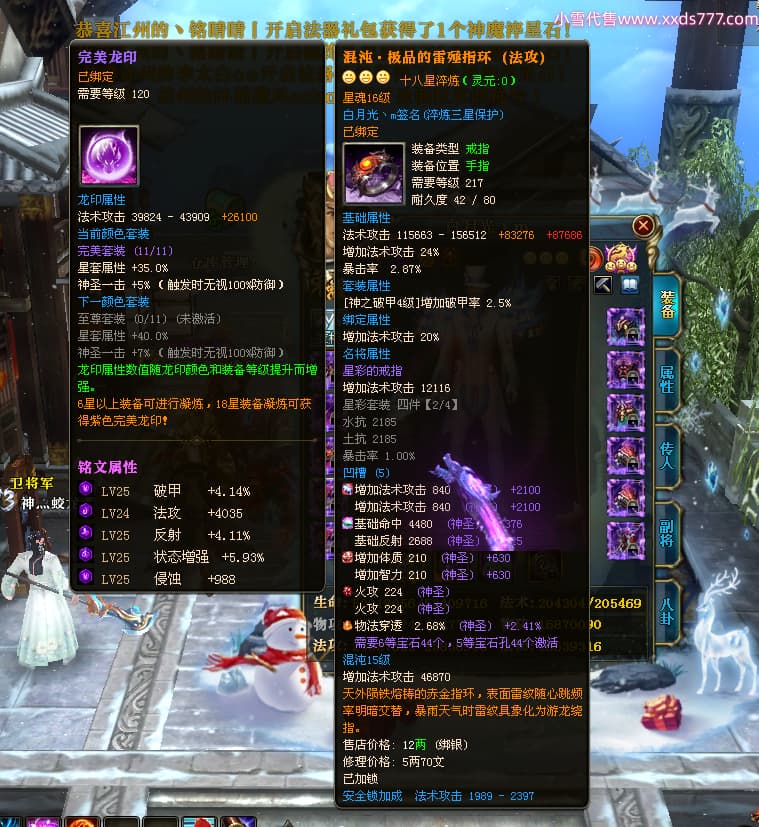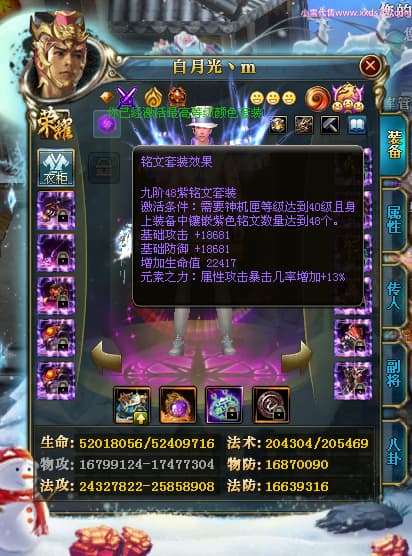 编号T24181 白月光丶m 龙腾问鼎 荆州 世界排名14名 43064W战力 人物混沌极品橙18X 传人混沌极品橙18X 副将黄金极品橙18X 马混沌极品橙14X(双潜能72级70级) 普通橙18披风 人物星魂16级 传人星魂16级 副将星魂16级 马星魂16级 人物铭刻18级 人物点亮18星 马铭刻3件16级其余15级 点亮14星 人紫龙印 马绿龙印 六等单双属性神圣石头 紫孔 可以转移百分百安全
