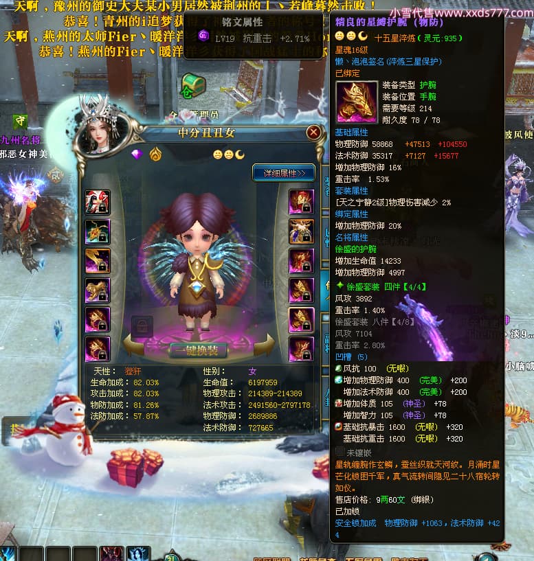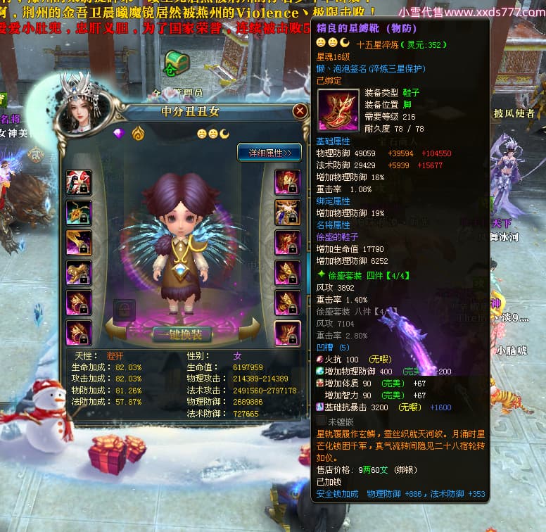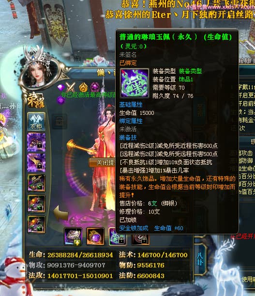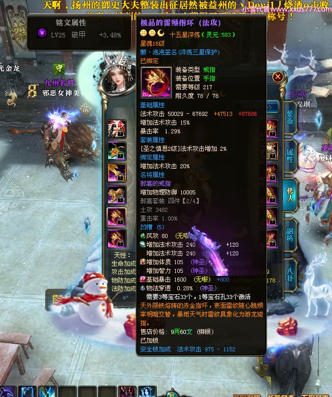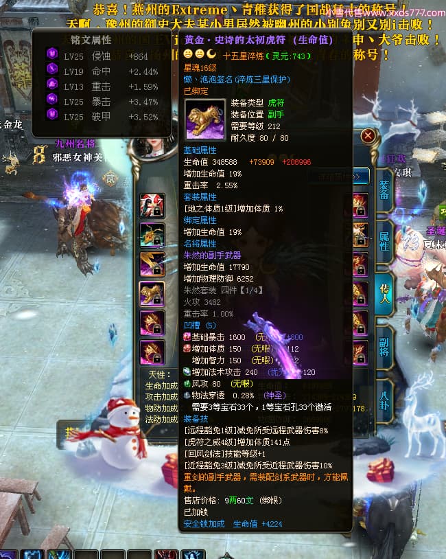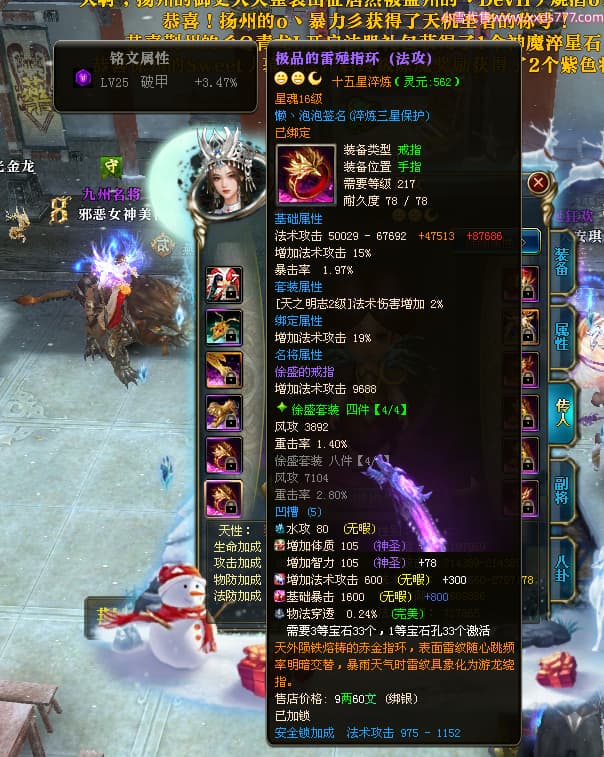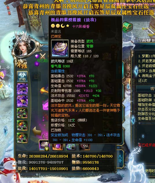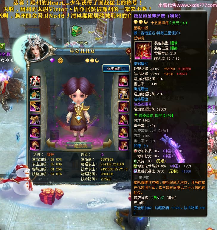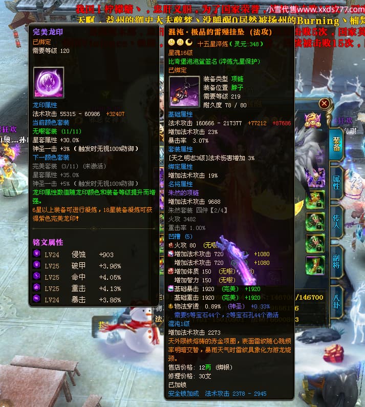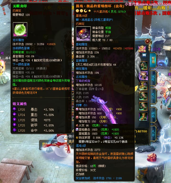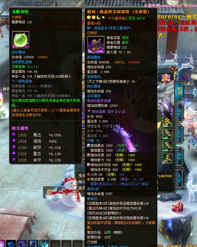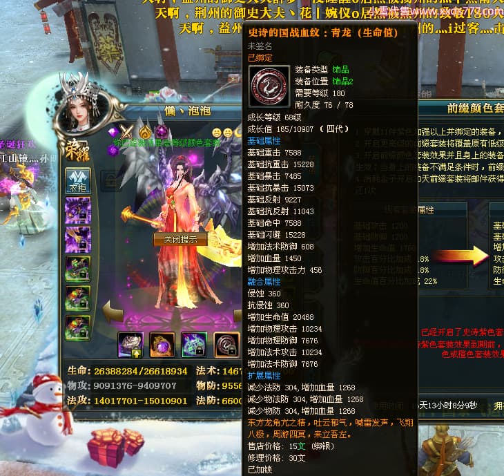 编号X24199 懒丶泡泡 龙啸风云 燕州 世界排名86名 23558W战力 人物黄金普通橙15X(7件混沌) 传人精良紫15X 副将史诗紫15X 马普通橙13X 极品紫16披风 人物星魂16级 传人星魂16级 副将星魂6级 马星魂16级 人物铭刻1件16级其余15级 人物点亮16星 马铭刻2件15级其余14级 点亮14星 人物绿龙印(3件紫龙印) 马黄龙印(1件绿龙印) 六等单双属性神圣完美无暇石头 黄绿孔