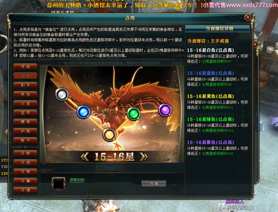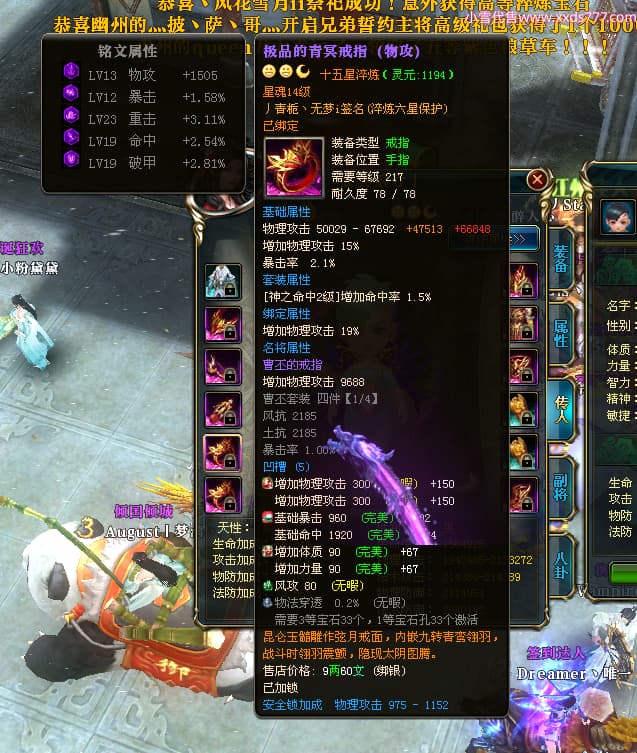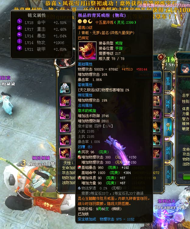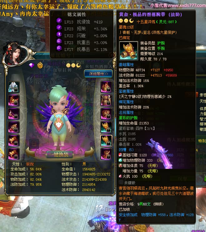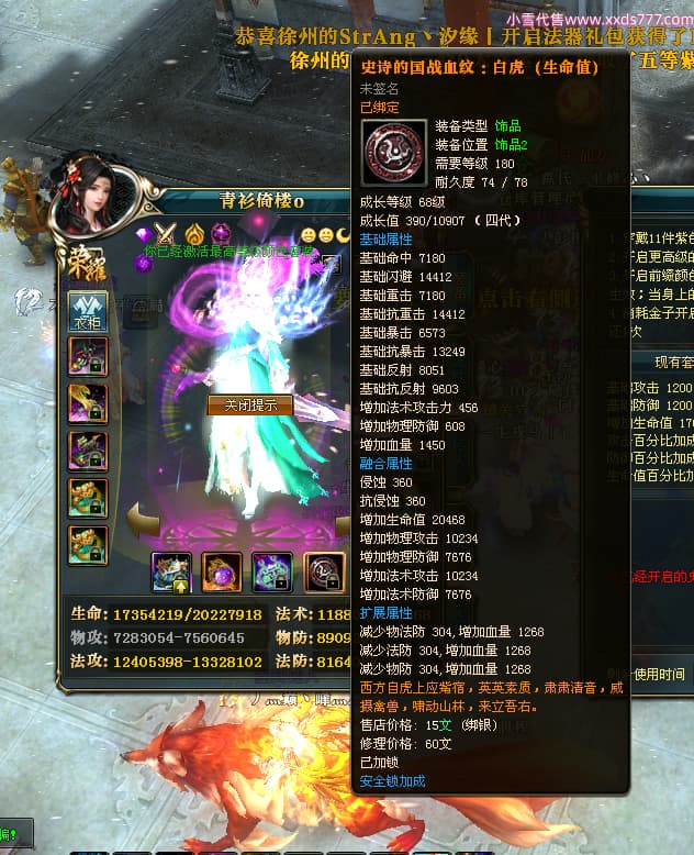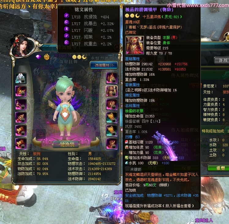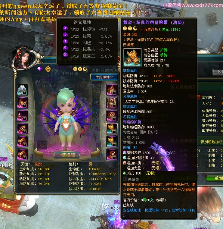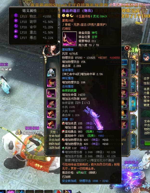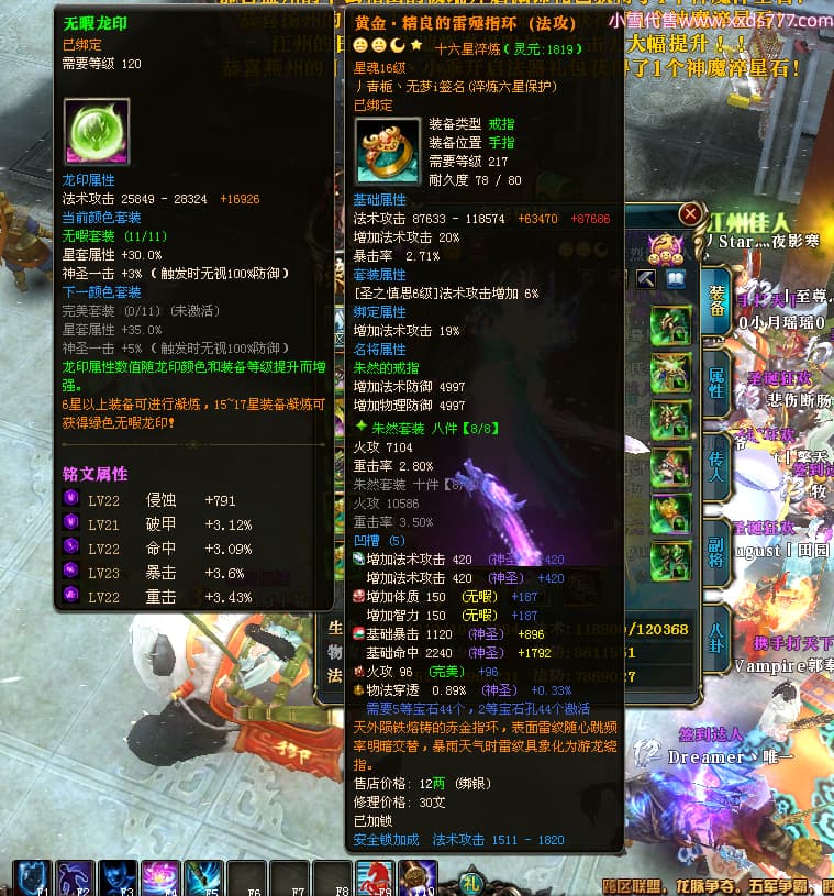 编号W24206 青衫倚楼o 龙舞九州 江州 本国排名37名 19151W战力 人物黄金普通橙15X(6件混沌) 传人精良紫15X 副将精良紫15X 马史诗紫12X 精良紫15披风 人物星魂16级 传人星魂12级 副将星魂6级 马星魂13级 人物铭刻15级 人物点亮16星 马铭刻12级 点亮12星 人物绿龙印 马黄龙印 六等单双属性完美无暇神圣石头 蓝黄孔 已开2次永久15星套