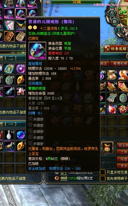编号Y24214 云深o归鹤 龙耀狂飙 燕州 世界排名66名 3036W战力 人物黄金精良橙15X(8件混沌) 马黄金普通橙12X 人物绿龙印 马黄龙印 六等单双属性石头 已开1次永久15星套 可以转移百分百安全