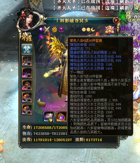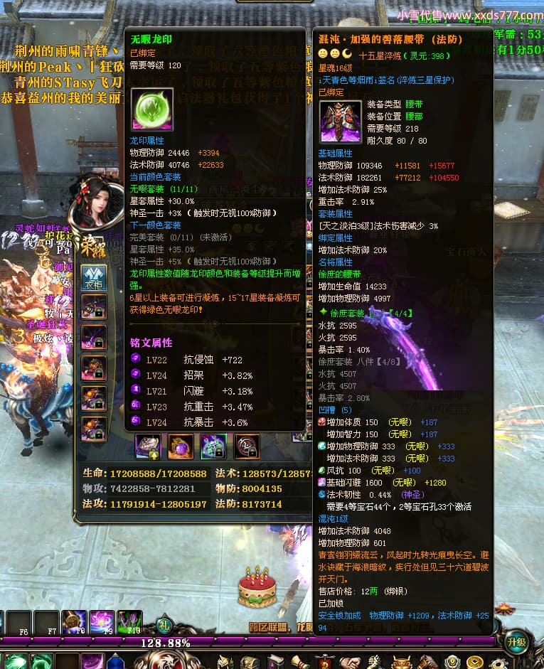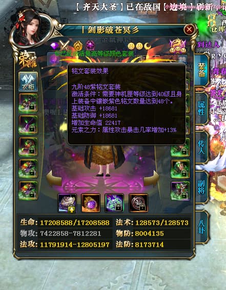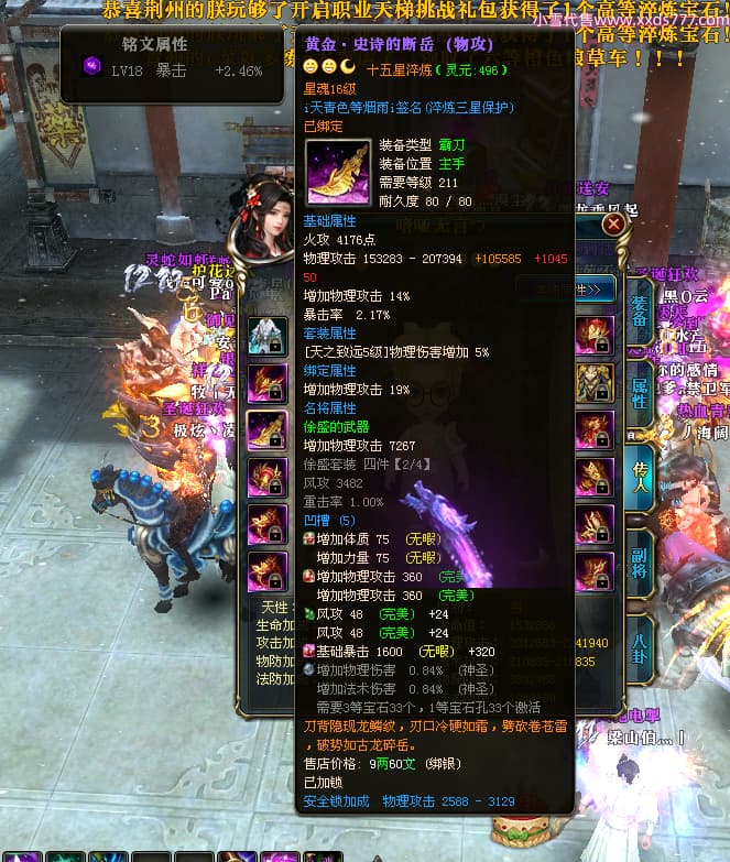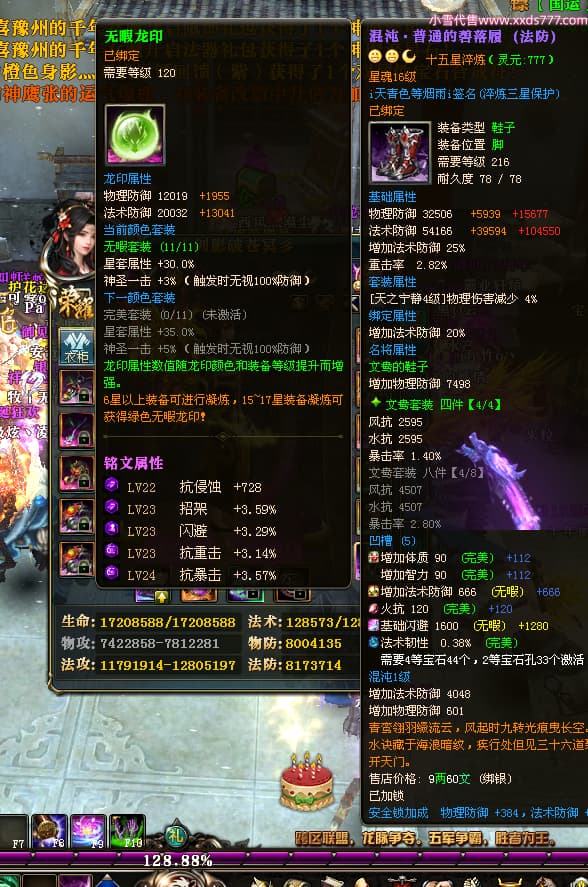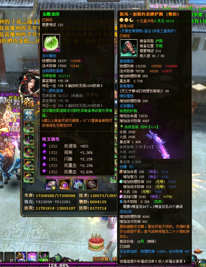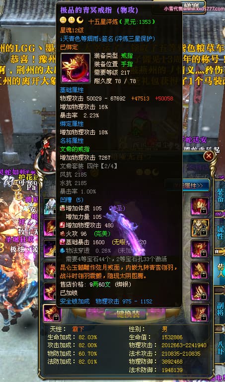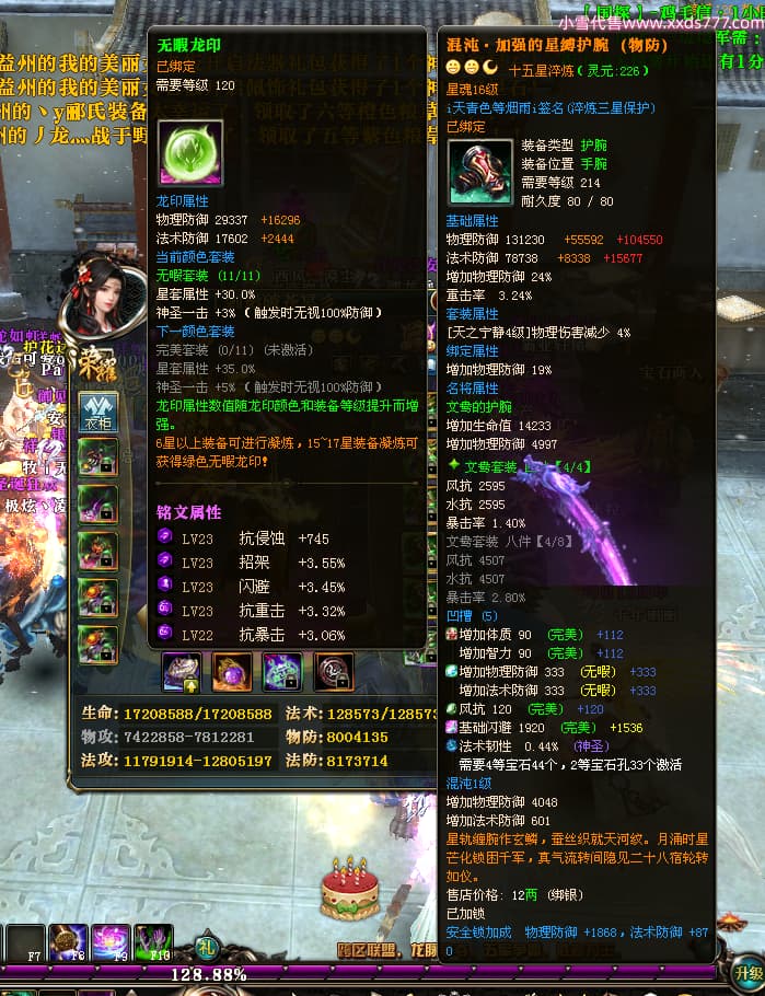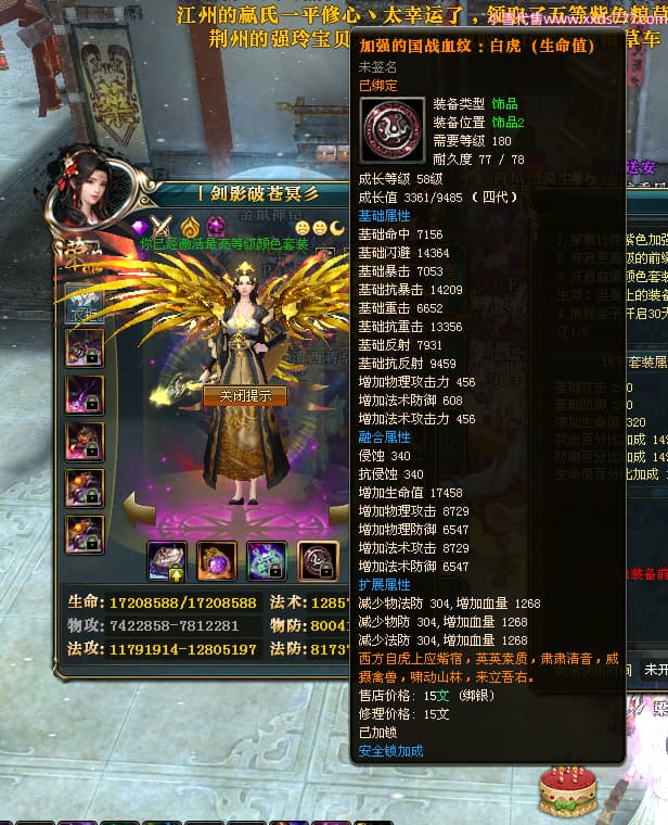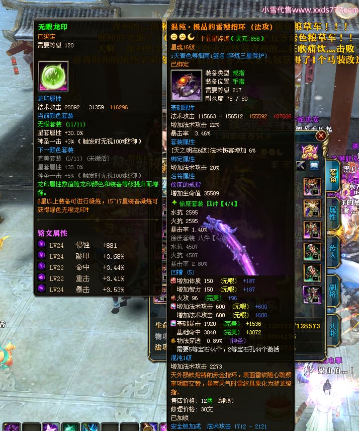 编号W24217 丨剑影破苍冥彡 龙舞九州 豫州 本国排名78名 18322W战力 人物黄金加强橙15X(9件混沌) 传人精良紫15X 副将精良紫12X 马普通橙12X 精良紫15披风 人物星魂16级 传人星魂12级 副将星魂6级 马星魂9级 人物铭刻6件16级奇异15级 人物点亮16星 马铭刻12级 点亮12星 人物绿龙印 马黄龙印(1件绿龙印) 五六等单双属性完美无暇神圣石头 蓝黄孔