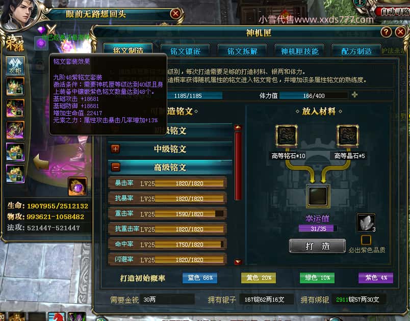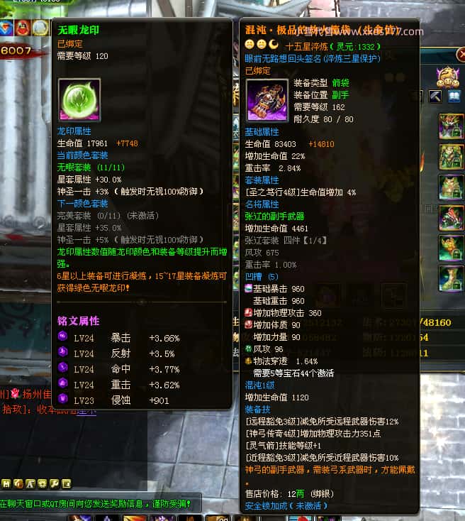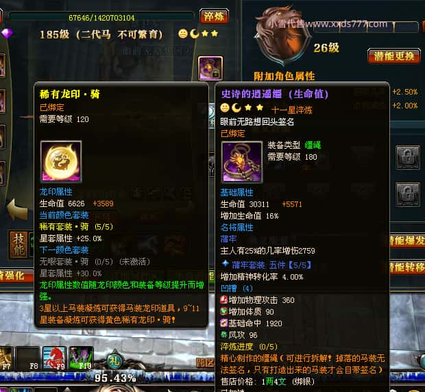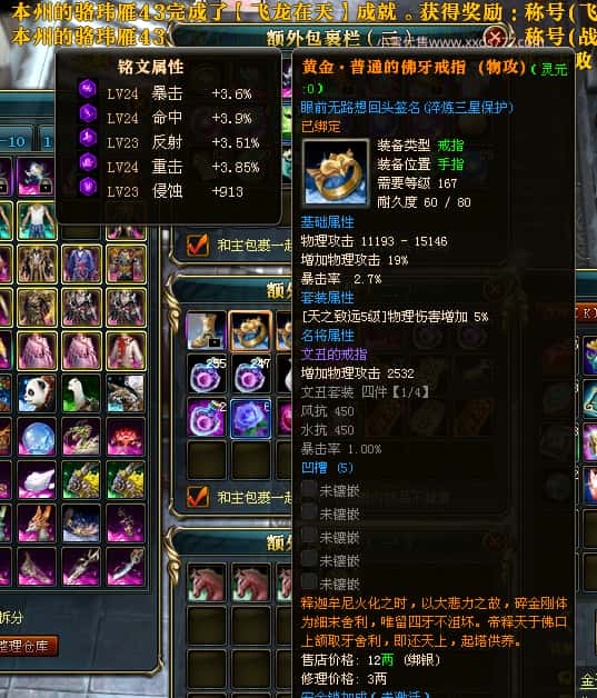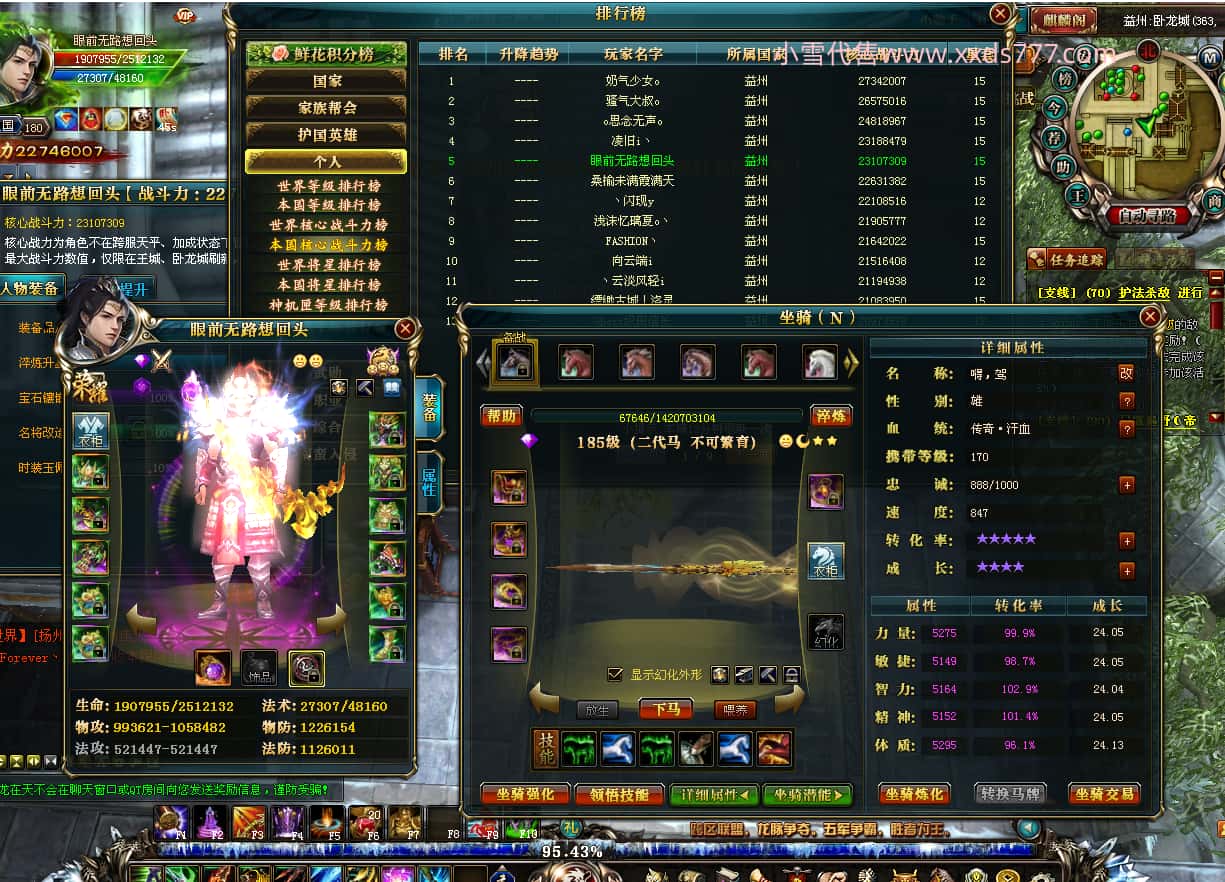 编号Y24219 眼前无路想回头 龙耀狂飙 益达本国第5名 2274W战力 人物黄金普通紫12X(6件15X)马史诗紫11X 人物绿龙印 马黄龙印 六等单双属性石头 可以转移百分百安全