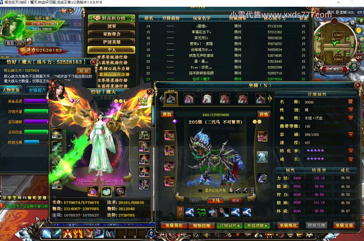 编号L24227 恰好丨魔天 龙战王者 燕州 本国排名第23名 5252W战力 人物黄金史诗紫15X(6件混沌) 马史诗紫12X 龙魂253级 人物绿龙印 马黄龙印 6666等单双属性石头 可以转移百分百安全 国婚时装