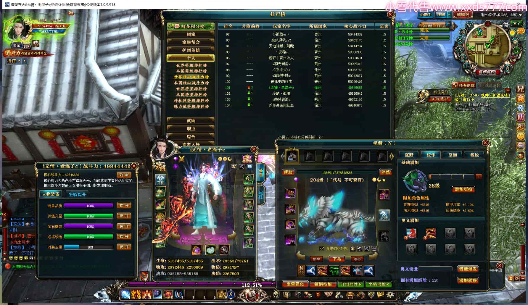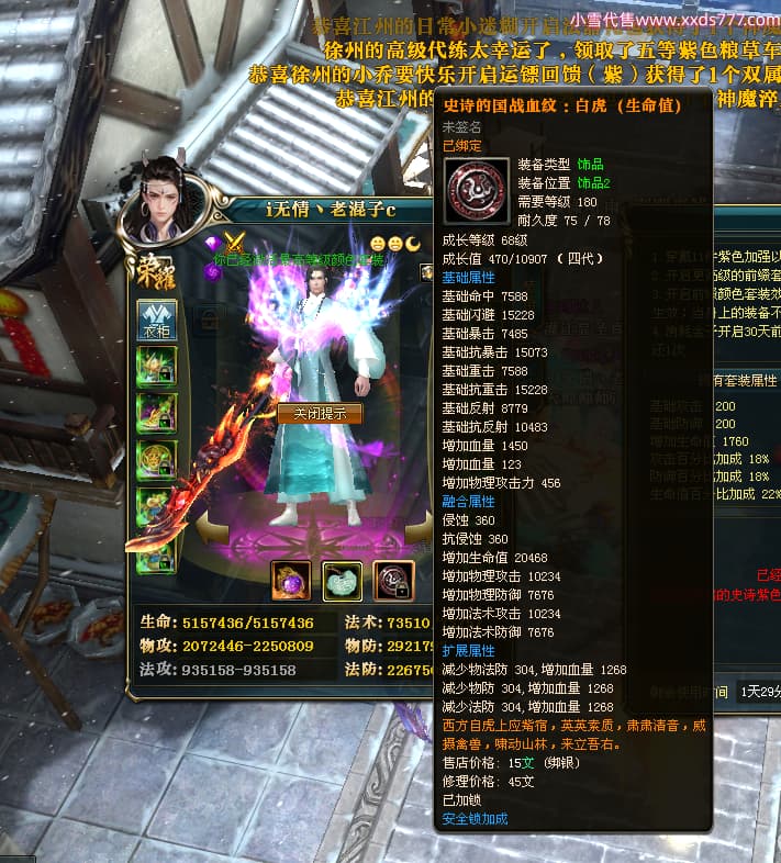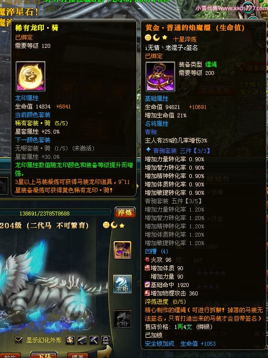编号Q24253 i无情丶老混子c 群龙纵横 徐州 世界排名101名 4984W战力 人物黄金普通橙15X(5件混沌) 马黄金史诗紫12X 人物绿龙印 马黄龙印(1件绿龙印) 六等单双属性石头 已开2次永久15星套 可以转移百分百安全