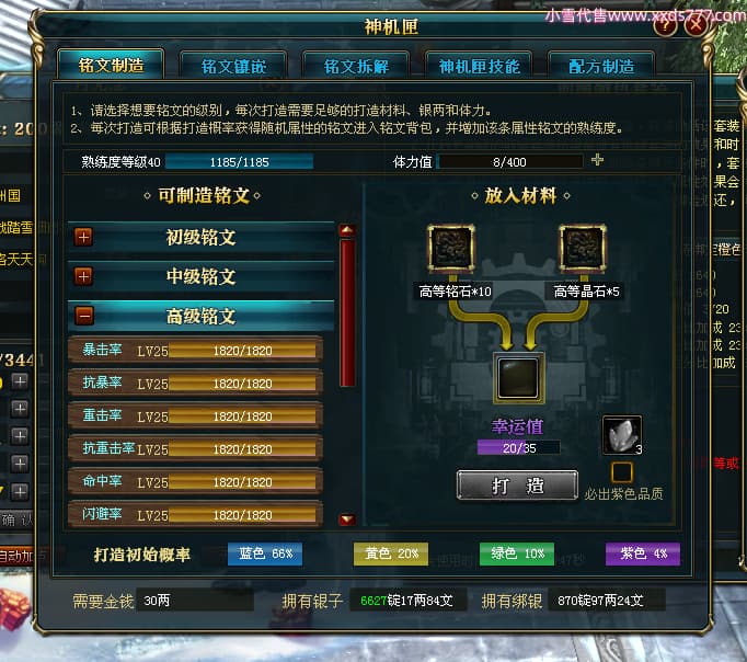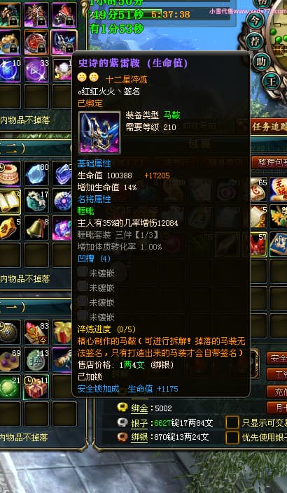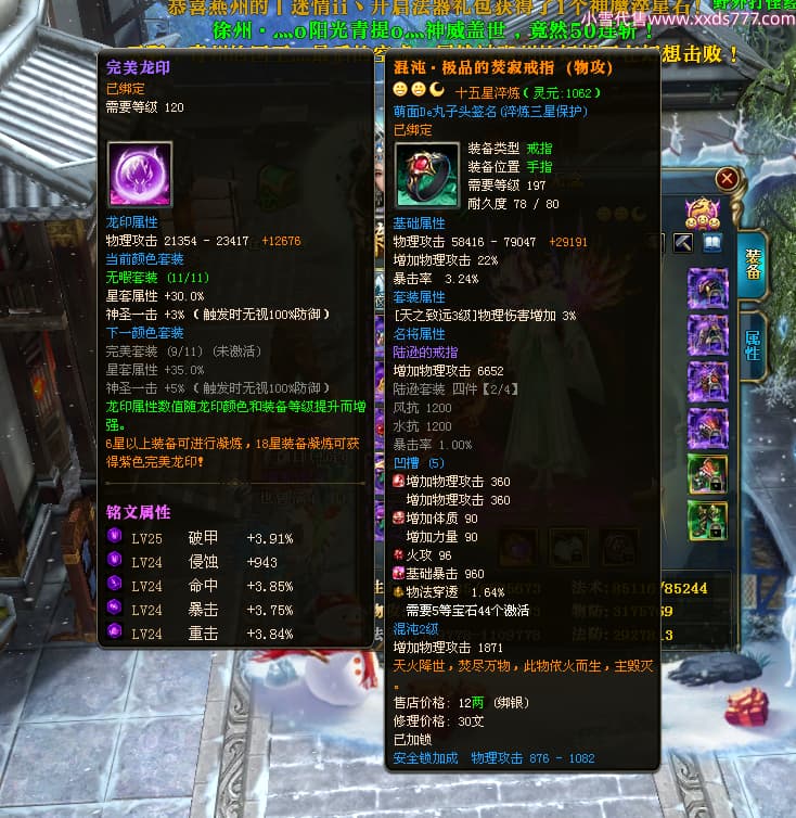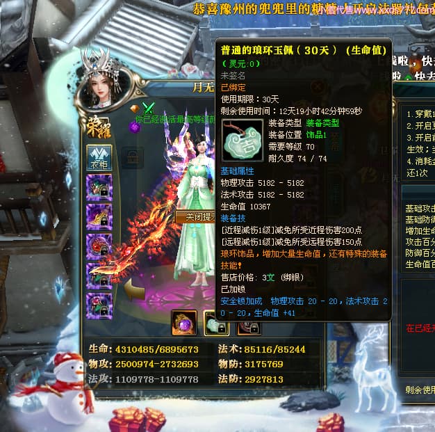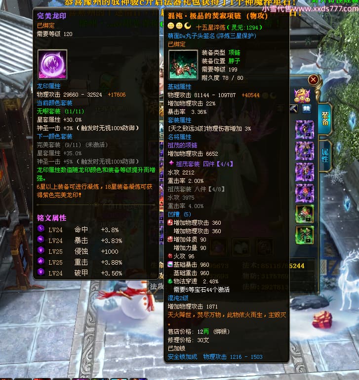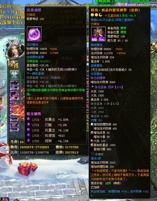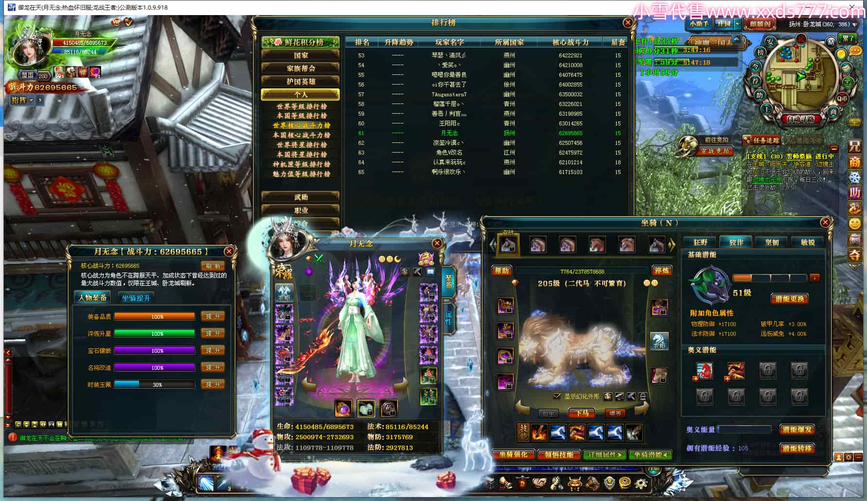 编号L24254 月无念 龙战王者 幽州 世界排名61名 6269W战力 人物黄金极品橙15X(9件混沌) 马黄金加强橙12X 人物绿龙印(9件紫龙印) 马黄龙印(2件绿龙印) 六等单双属性石头 已开完永久15星套 可以转移百分百安全