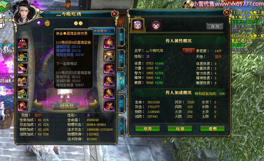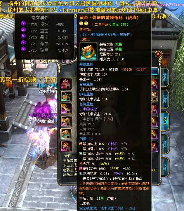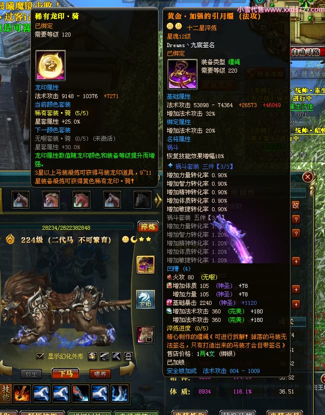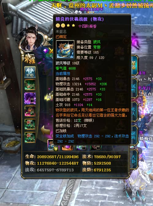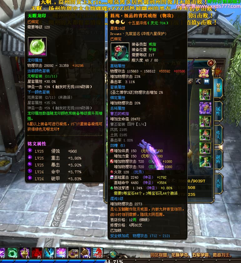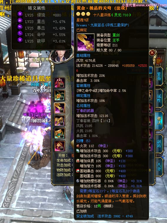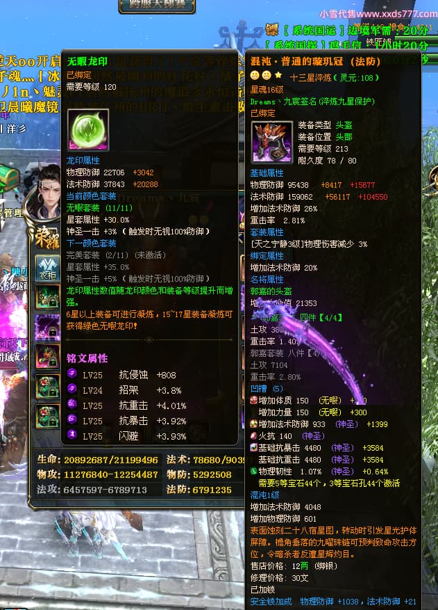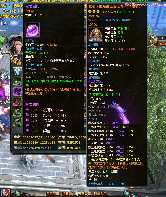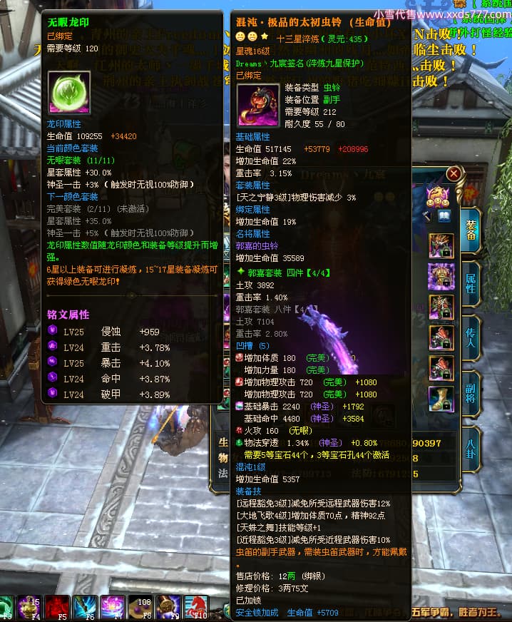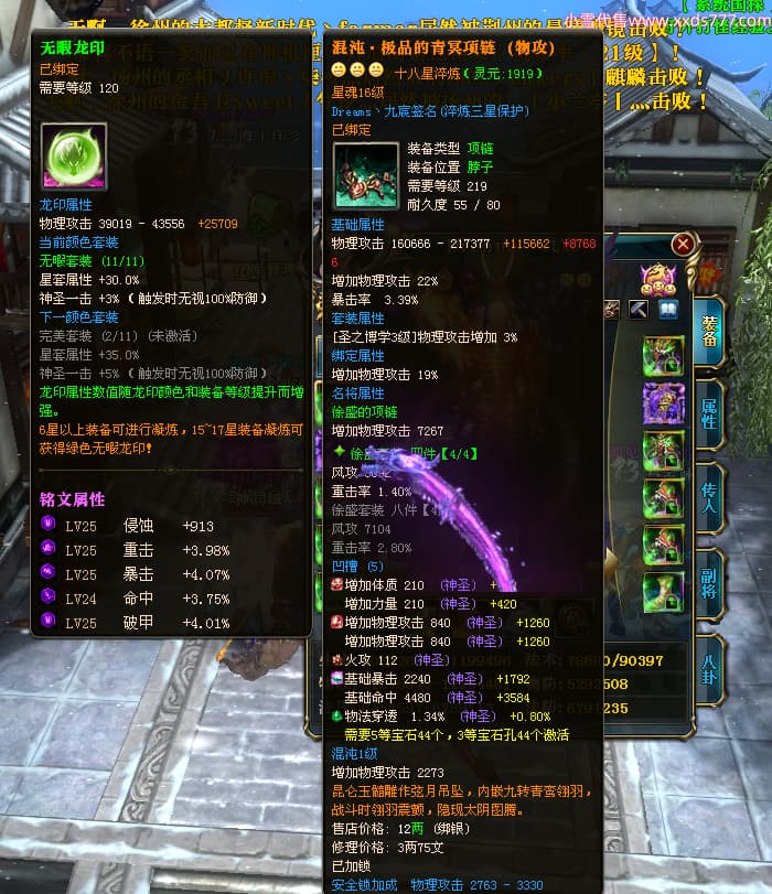 编号X24255 Dreams丶九宸 龙啸风云 益州 本国排名53名 18156W战力 人物黄金普通橙12X(3件18X8件混沌) 传人精良紫12X(2件18X) 副将精良紫12X 马加强橙11X 精良紫14披风 人物星魂16级 传人星魂6级 副将星魂6级 马星魂11级 人物铭刻2件18级5件15级1件14级其余12级 点亮6件16星其余12星 马铭刻12级 点亮10星 人物绿龙印(2件紫龙印) 马黄龙印 六等单双属性神圣完美无暇石头 黄孔