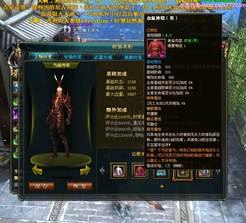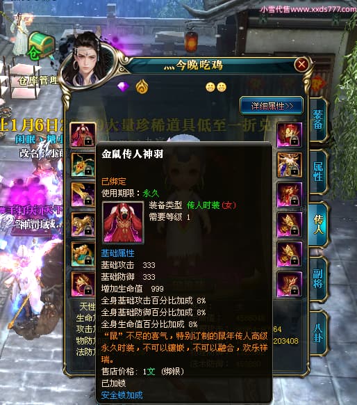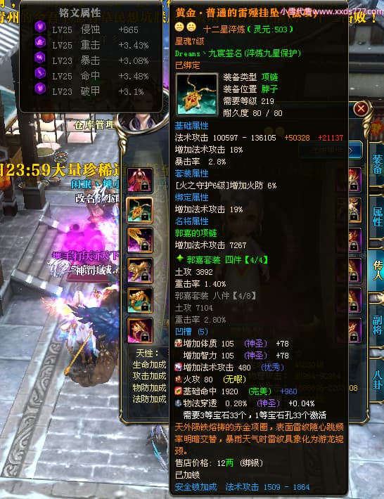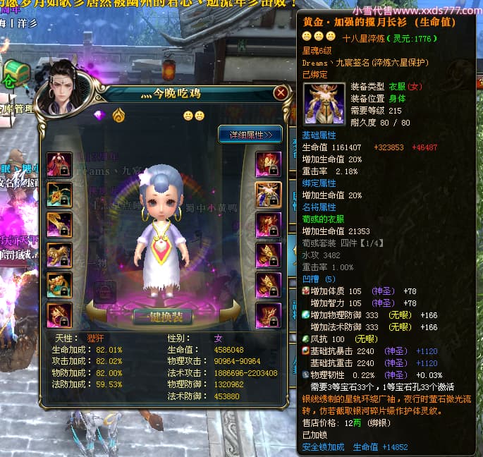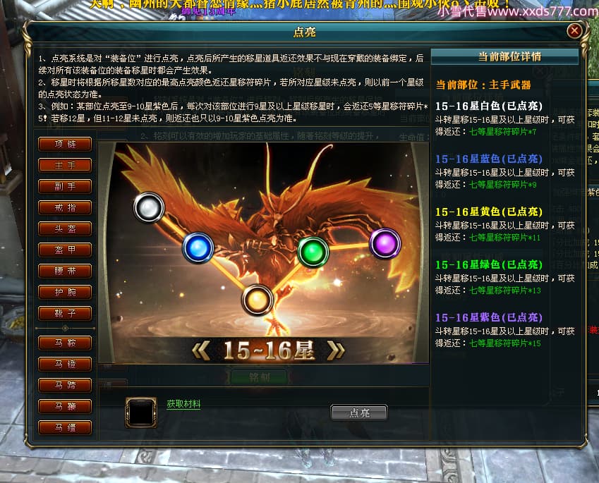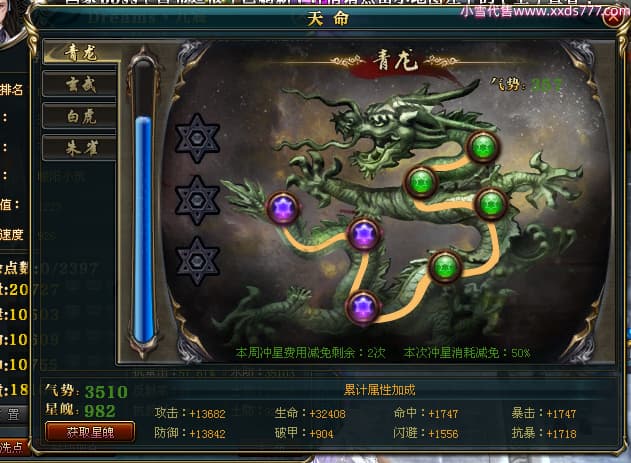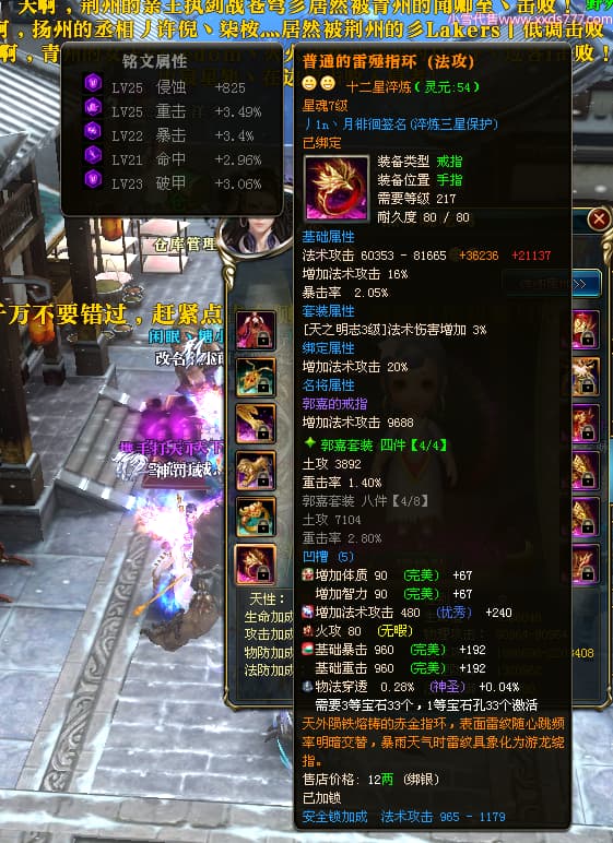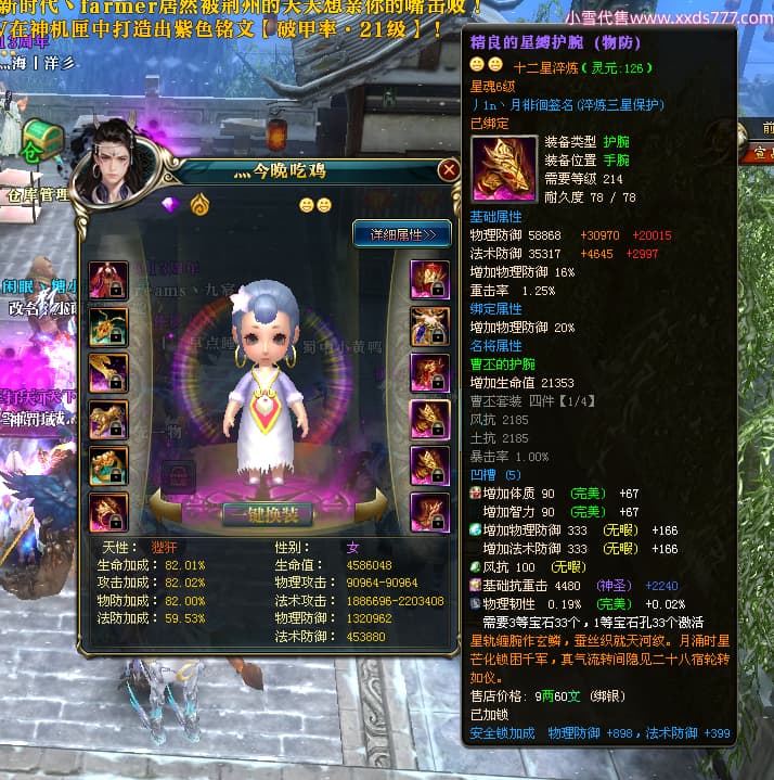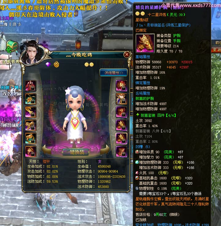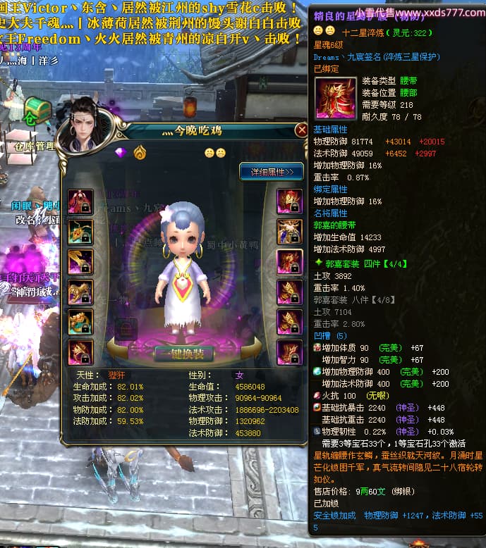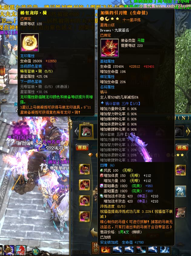 编号X24255 Dreams丶九宸 龙啸风云 益州 本国排名53名 18156W战力 人物黄金普通橙12X(3件18X8件混沌) 传人精良紫12X(2件18X) 副将精良紫12X 马加强橙11X 精良紫14披风 人物星魂16级 传人星魂6级 副将星魂6级 马星魂11级 人物铭刻2件18级5件15级1件14级其余12级 点亮6件16星其余12星 马铭刻12级 点亮10星 人物绿龙印(2件紫龙印) 马黄龙印 六等单双属性神圣完美无暇石头 黄孔