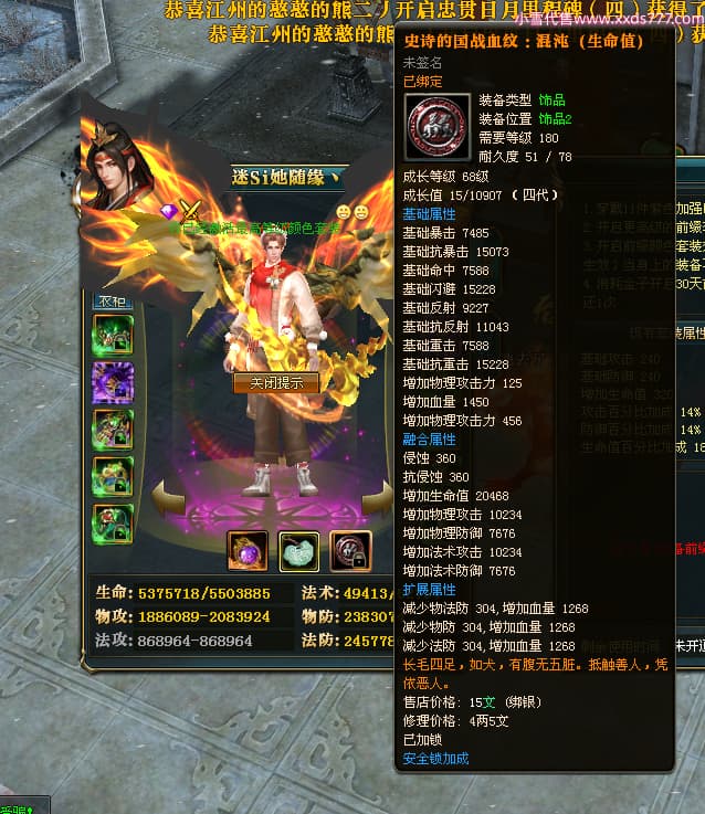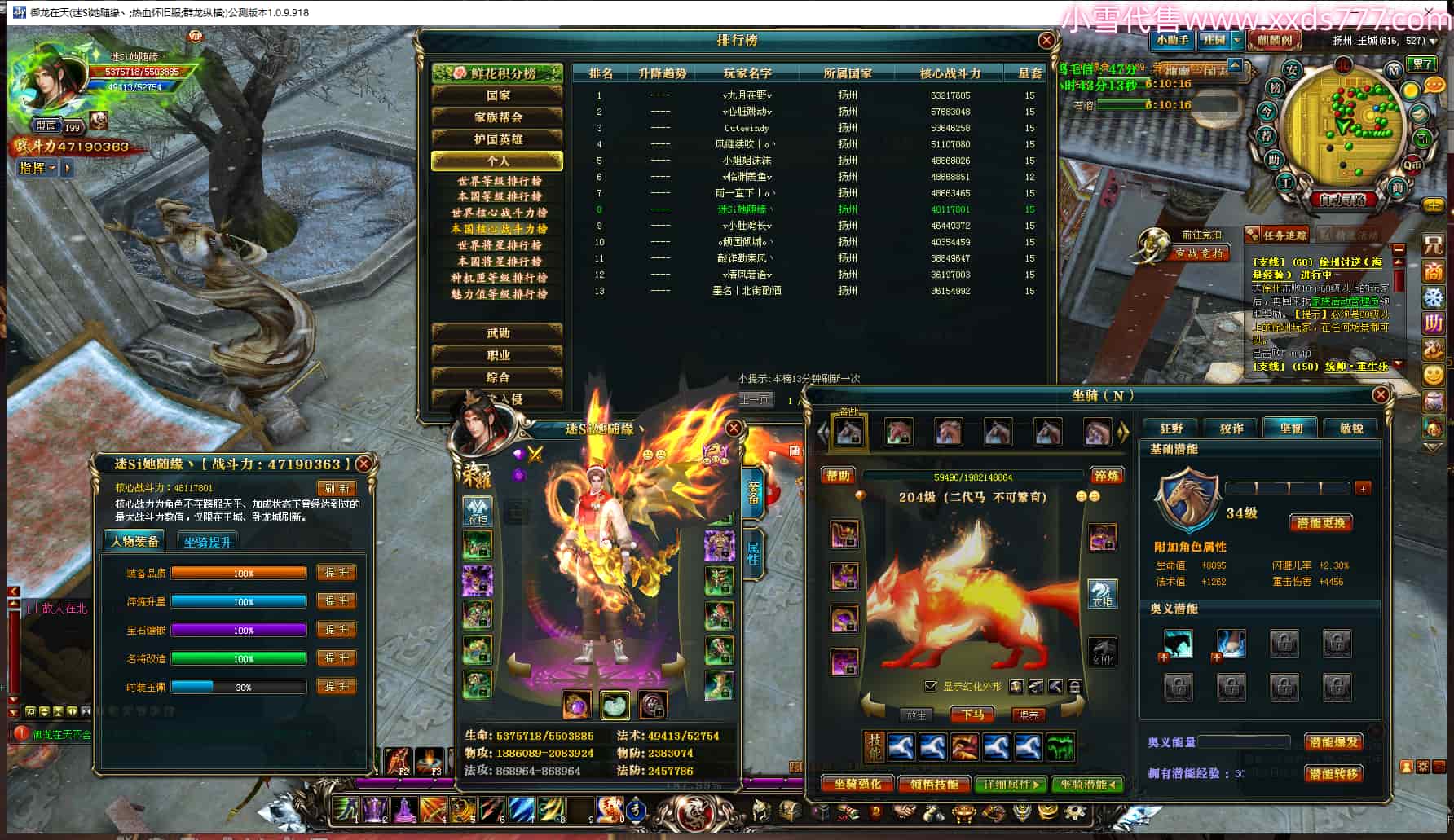 编号Q24258 迷Si她随缘丶 群龙纵横 扬州 本国排名8名 4719W战力 人物黄金普通橙12X(1件15X7件混沌) 马黄金普通橙12X 人物绿龙印(2件紫龙印) 马黄龙印 六等单双属性石头 已开完永久15星套 可以转移百分百安全