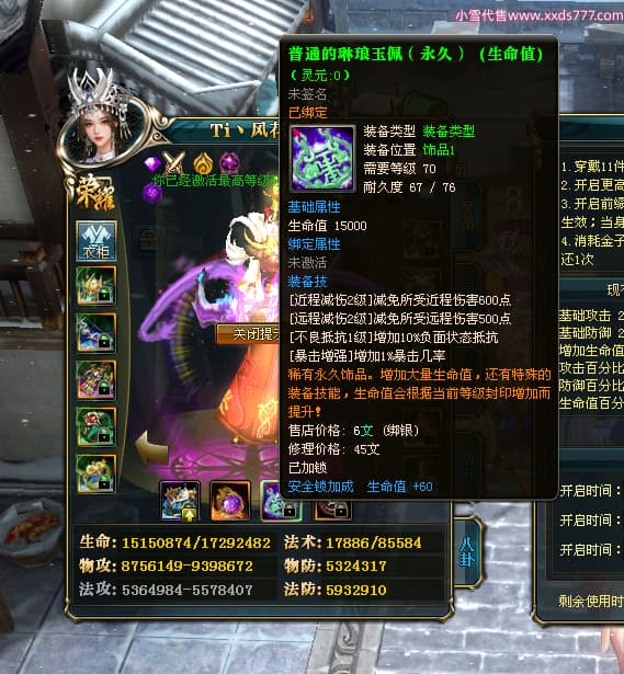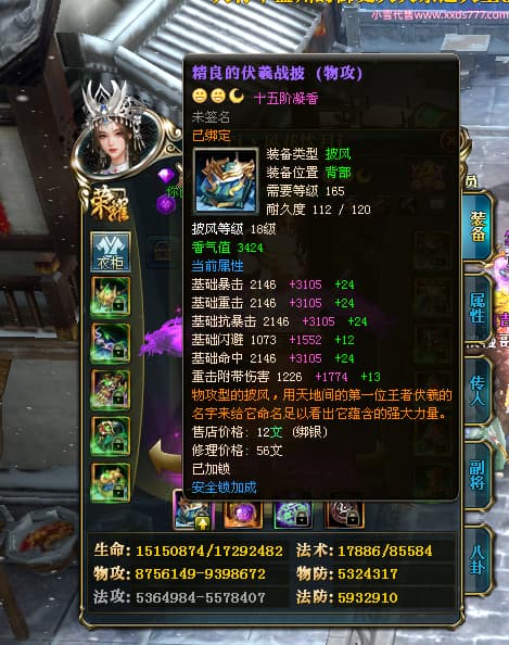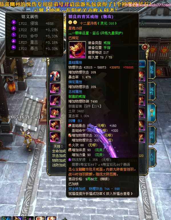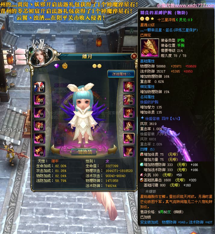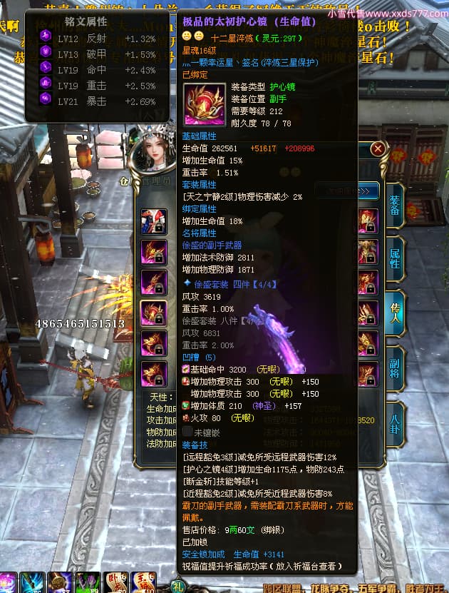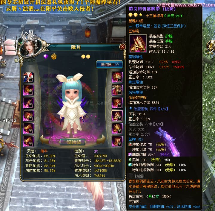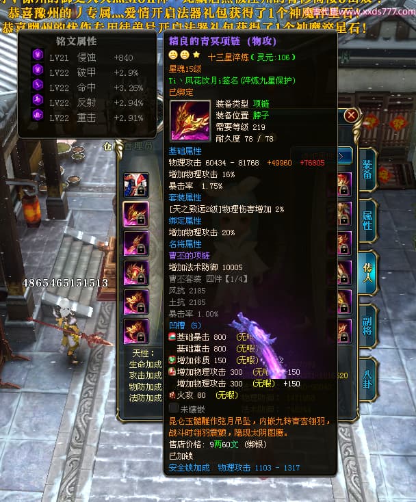 编号W24262 Ti丶风花饮月i 龙舞九州 青州 本国排名72名 13188W战力 人物黄金普通橙15X(6件混沌) 传人加强紫12X 副将精良紫12X 马史诗紫10X 精良紫15披风 人物星魂16级 传人星魂12级 副将星魂6级 马星魂12级 人物铭刻15级 人物点亮3件16星其余14星 马铭刻12级 点亮1件12星其余10星 人物绿龙印 马黄龙印 五六等单双属性完美无暇神圣石头 蓝黄孔