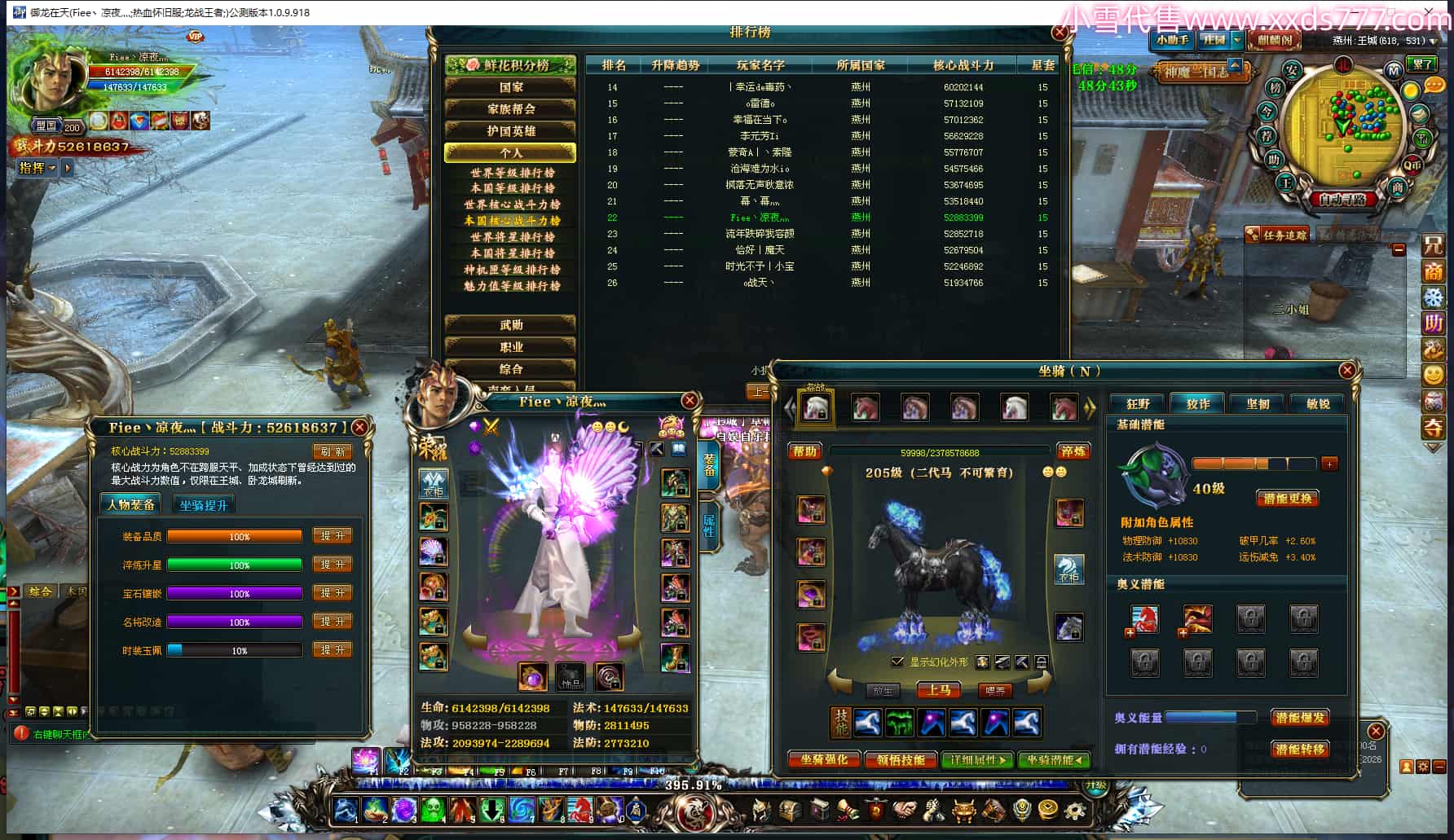 编号L24265 Fiee丶凉夜灬 龙战王者 燕州 本国排名22名 5261W战力 人物黄金加强橙15X(1件18X4件混沌) 马精良橙12X 人物绿龙印 马黄龙印 六等单双属性石头 可以转移百分百安全