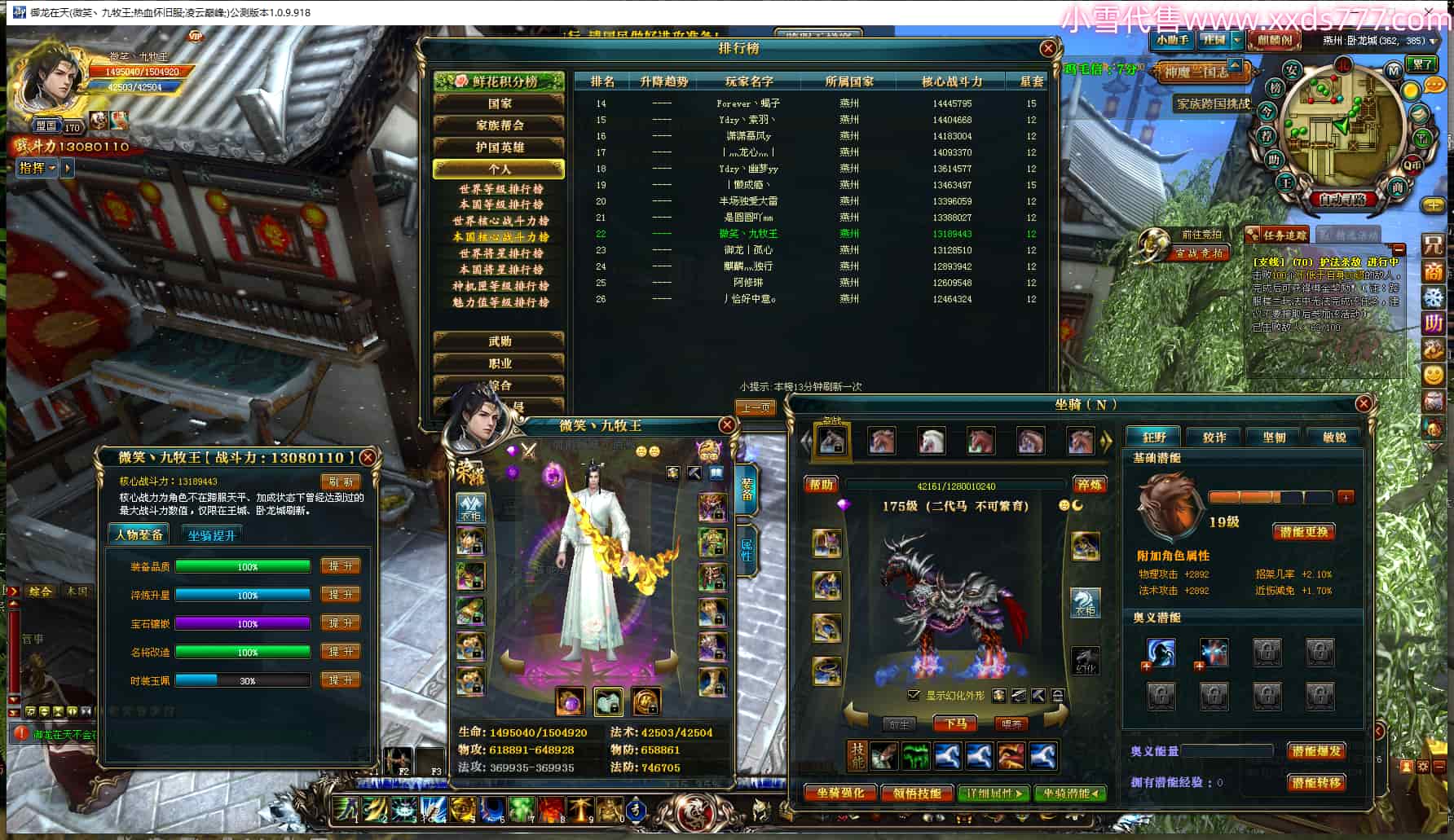 编号Y24269 微笑丶九牧王 凌云巅峰 燕州 本国排名22名 1308W战力 人物黄金史诗紫12X(1件18X1件15X2件混沌) 马极品紫9X 人物黄龙印(3件绿龙印) 马黄龙印 六等单双属性石头 可以转移百分百安全