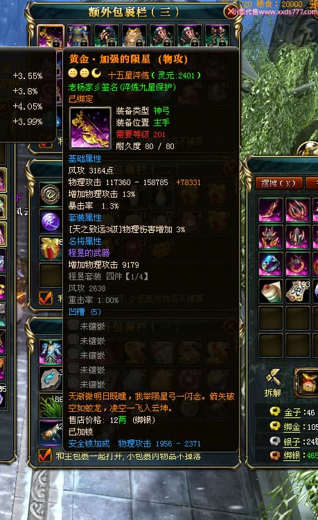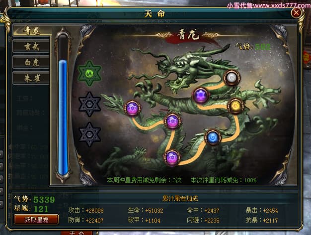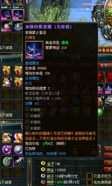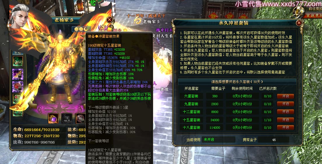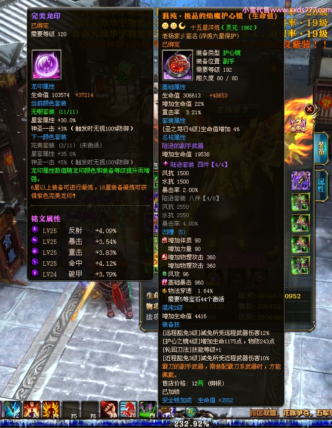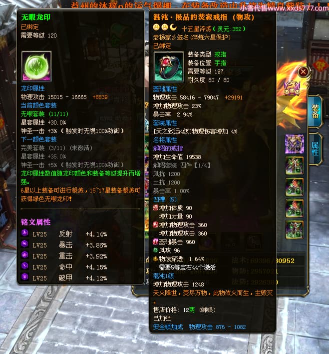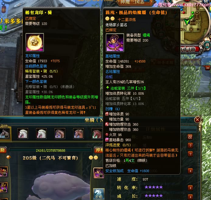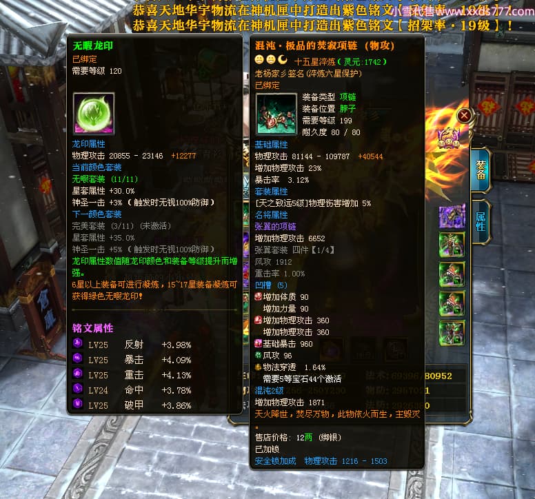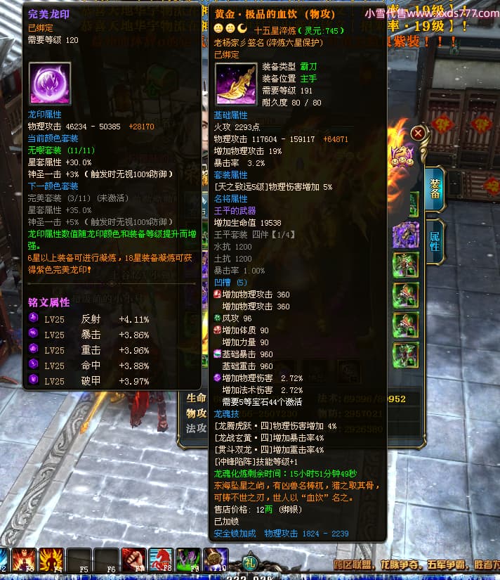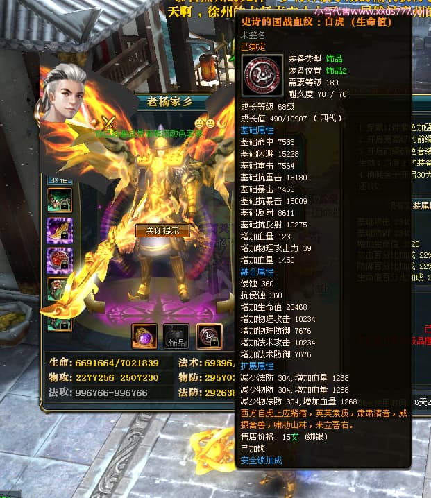 编号L24273 老杨家彡 龙战王者 幽州 世界排名81名 6019W战力 人物黄金极品橙15X(9件混沌) 马黄金精良橙12X 人物绿龙印(3件紫龙印) 马黄龙印 六等单双属性石头 已开1次永久15星套 可以转移百分百安全