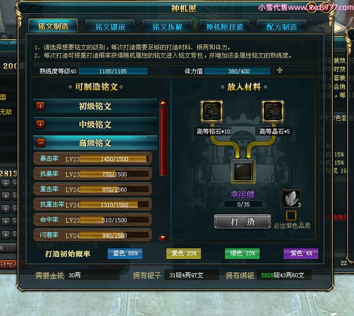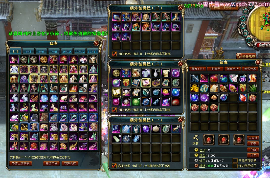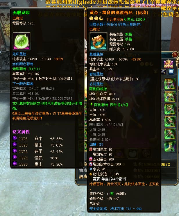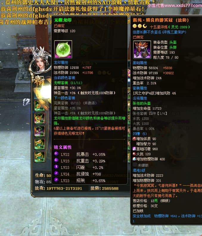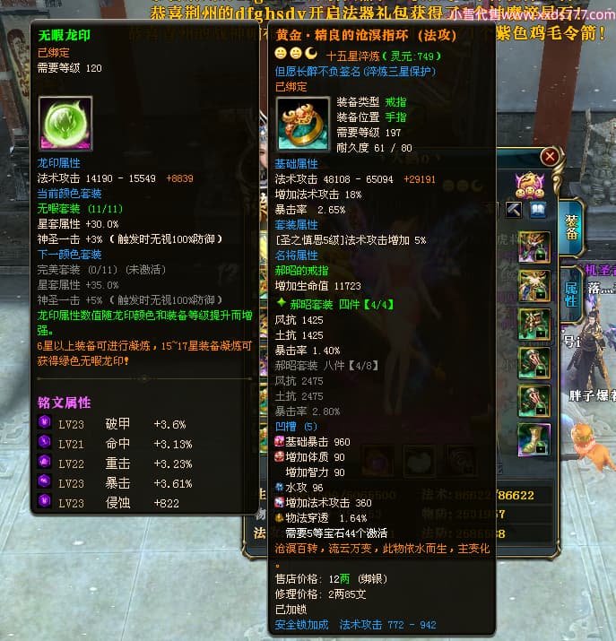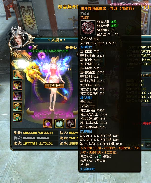 编号L24282 丶大鹏o丶 龙战王者 幽州 本国排名66名 4669W战力 人物黄金精良橙15X(5件混沌) 马普通橙10X 人物绿龙印 马黄龙印 六等单双属性石头 可以转移百分百安全