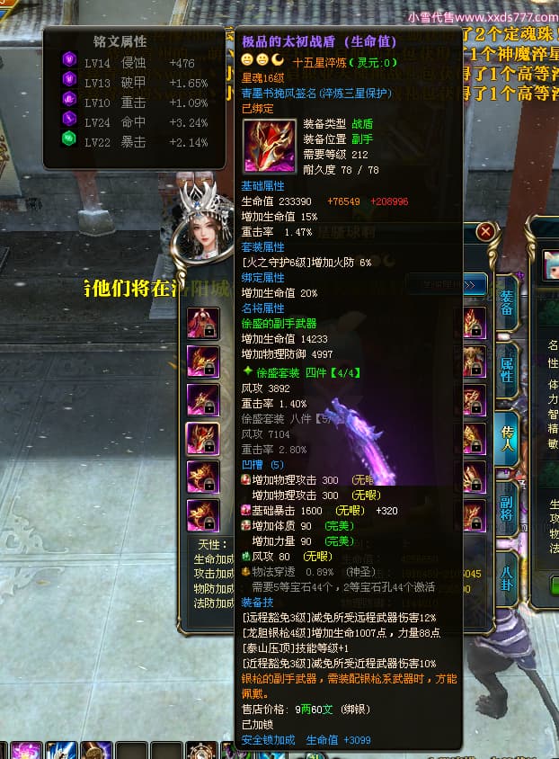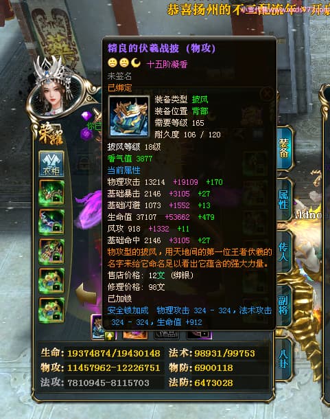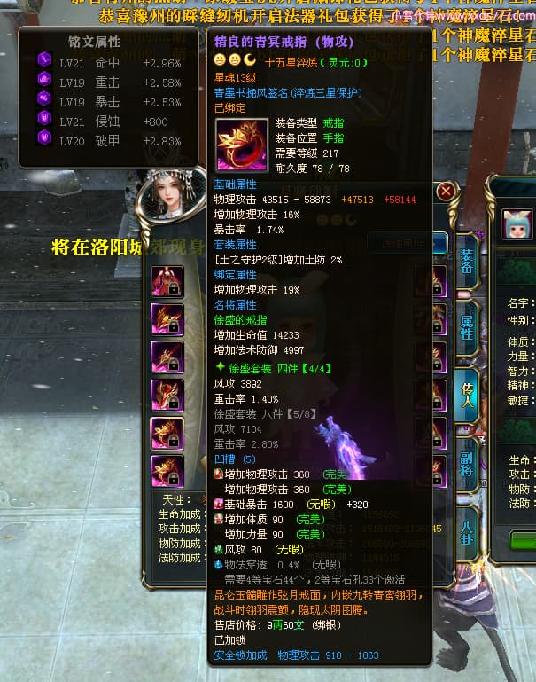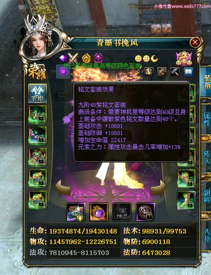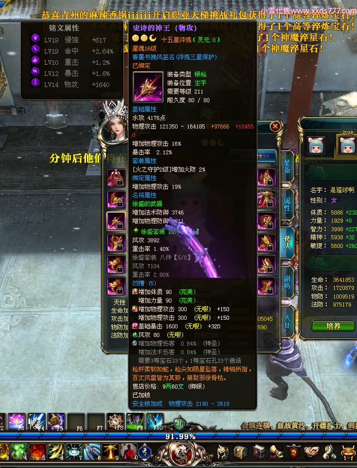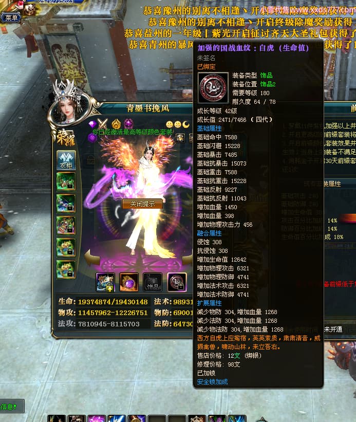 编号X24295 青墨书挽风 龙啸风云 青州 本国排名26名 16917W战力 人物黄金普通橙15X(5件混沌) 传人精良紫15X 副将史诗紫15X 马史诗紫11X 精良紫15披风 人物星魂16级 传人星魂12级 副将星魂6级 马星魂16级 人物铭刻15级 点亮7件16星其余14星 马铭刻12级 点亮12星 人物绿龙印 马黄龙印 五六等单双属性神圣完美无暇石头 蓝孔 已开2次永久15星套