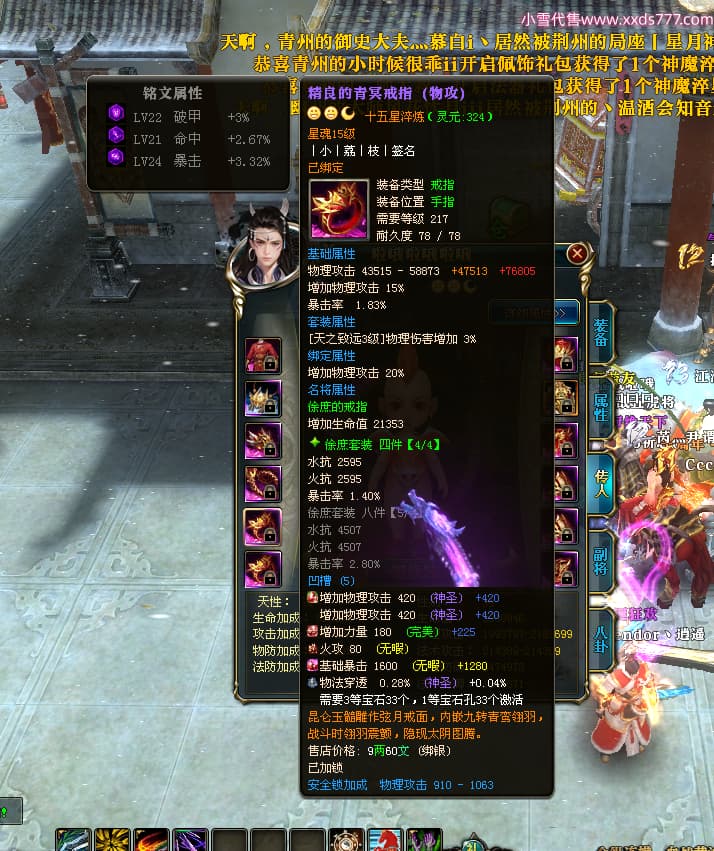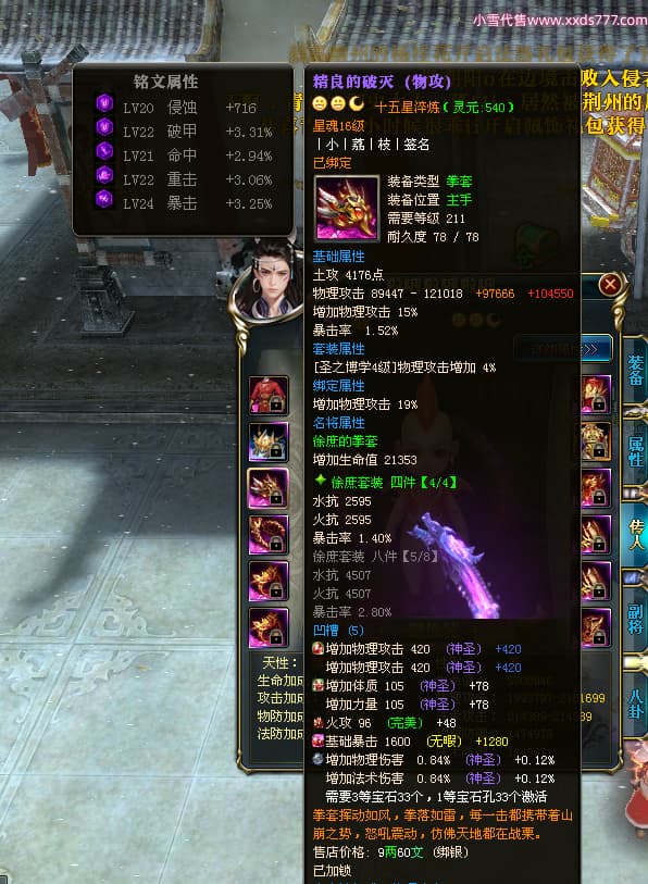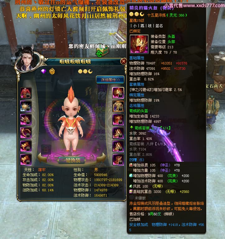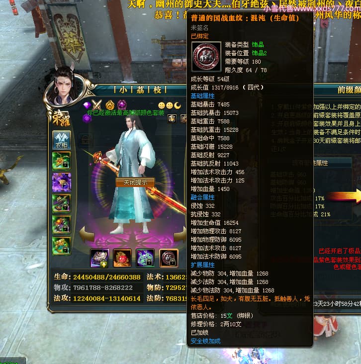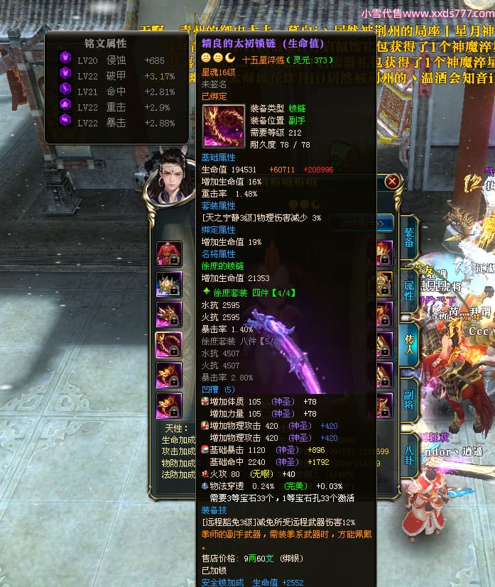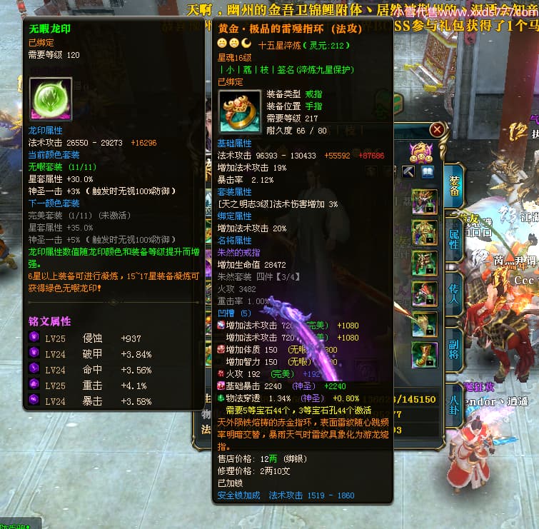 编号T24296 丨小丨荔丨枝丨 龙腾问鼎 荆州 本国排名41名 19980W战力 人物黄金精良橙15X(5件混沌) 传人精良紫15X 副将精良紫12X 马普通橙12X 史诗紫16披风 人物星魂16级 传人星魂15级 副将星魂6级 马星魂16级 人物铭刻15级 点亮6件16星其余14星 马铭刻13级 点亮12星 人绿龙印(1件紫龙印) 马黄龙印 六等单双属性神圣完美无瑕石头 黄孔 已开3次永久15星套