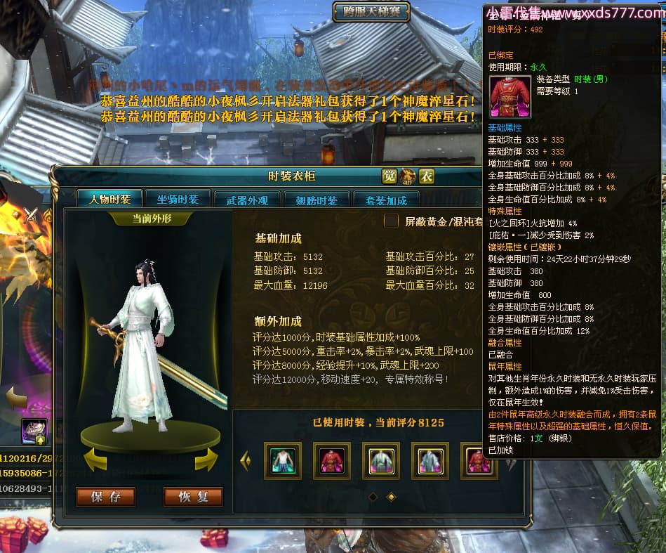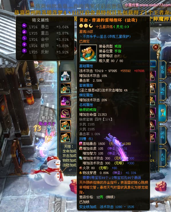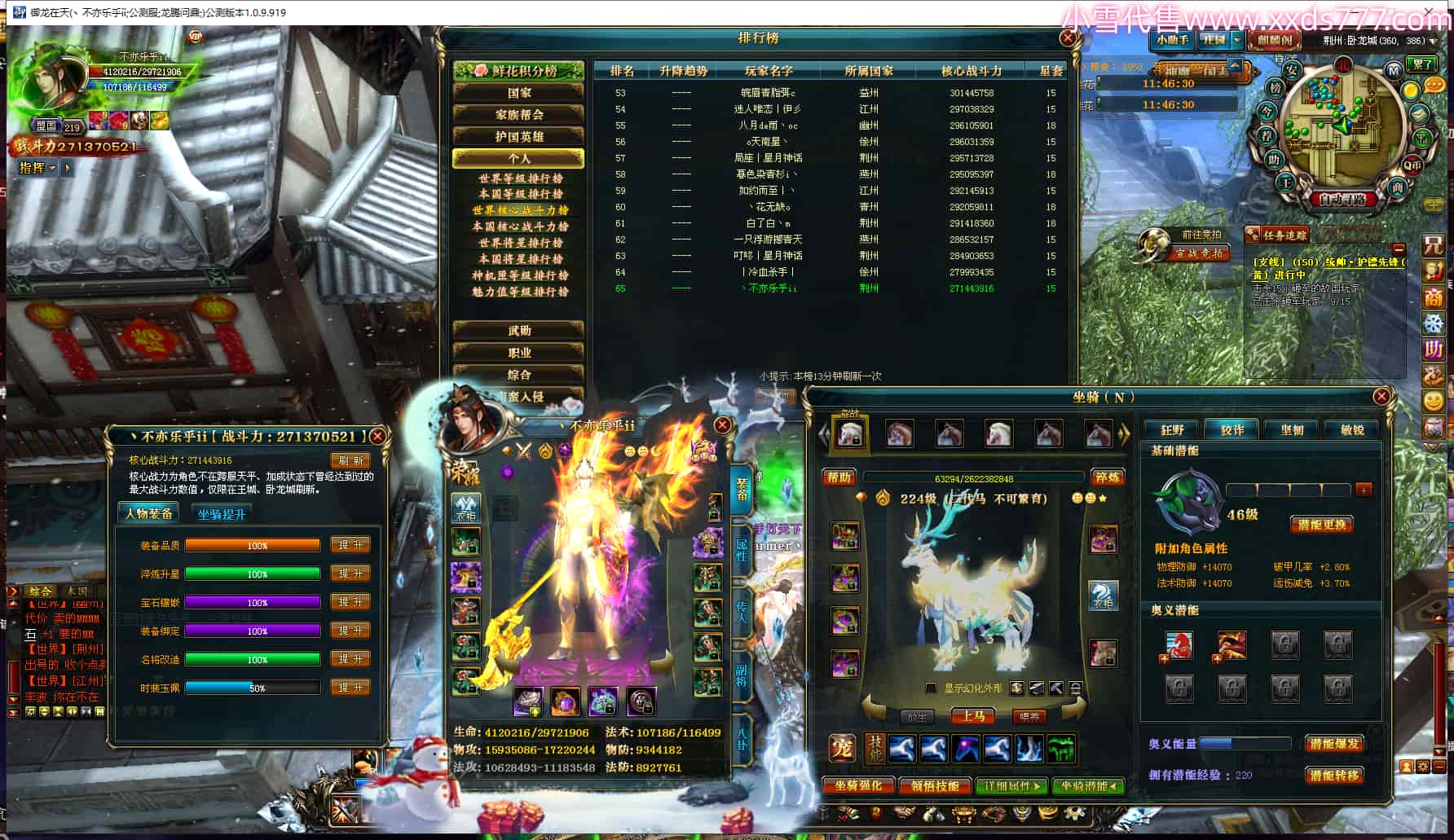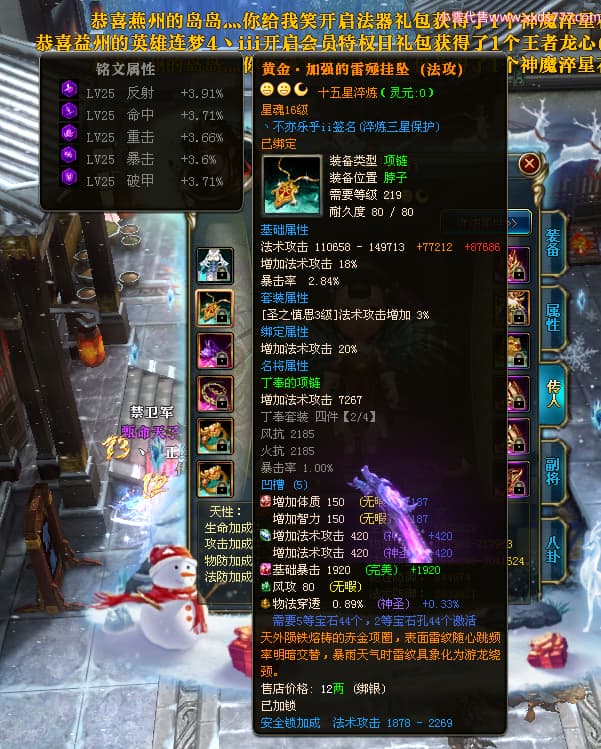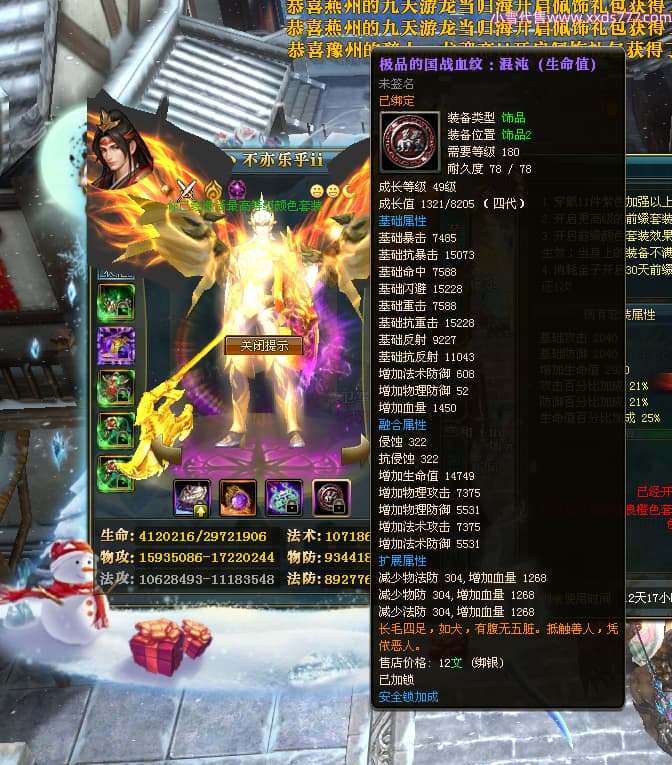编号T24303 丶不亦乐乎ii 龙腾问鼎 荆州 世界排名65名 27137W战力 人物黄金极品橙16X(9件混沌) 传人史诗紫15X 副将史诗紫15X 马黄金精良橙13X 极品紫16披风 人物星魂16级 传人星魂16级 副将星魂7级 马星魂16级 人物铭刻7件16级2件15级 人物点亮16星 马铭刻13级 点亮14星 人物绿龙印(2件紫龙印) 马绿龙印 六等单双属性神圣完美石头 黄绿紫孔 已开完永久15星套 可以转移百分百安全