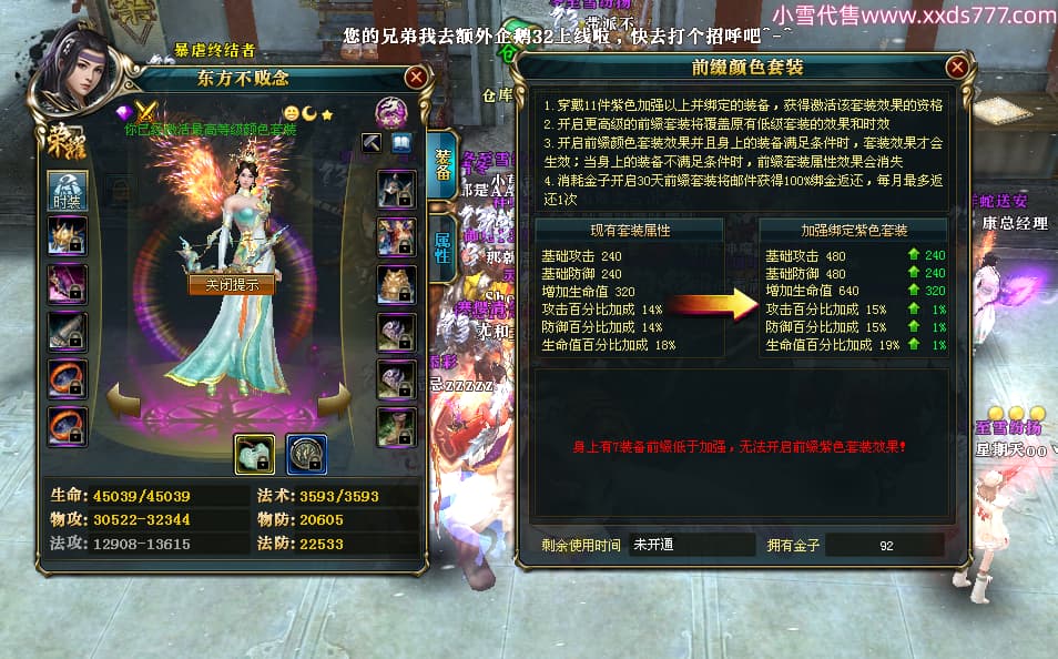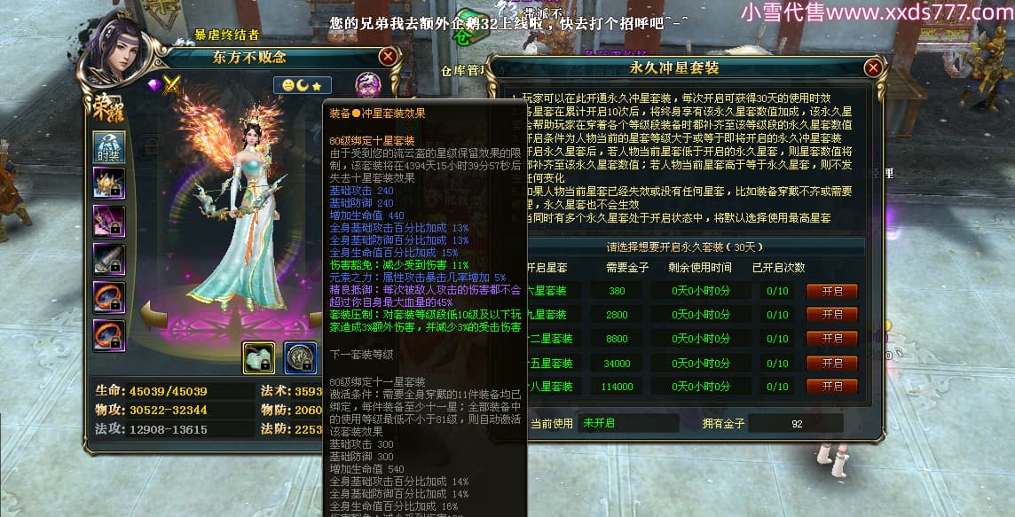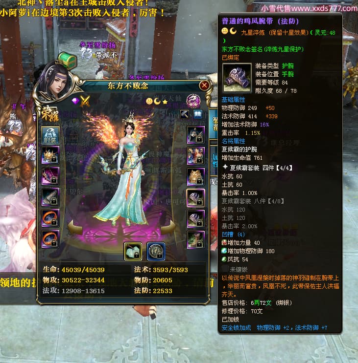 编号A24306 东方不败念 傲视皇朝 燕州 90级 本国排名90名 31W战力 人物普通紫9X(2件12X) 马普通紫3X 号内Q币1825个