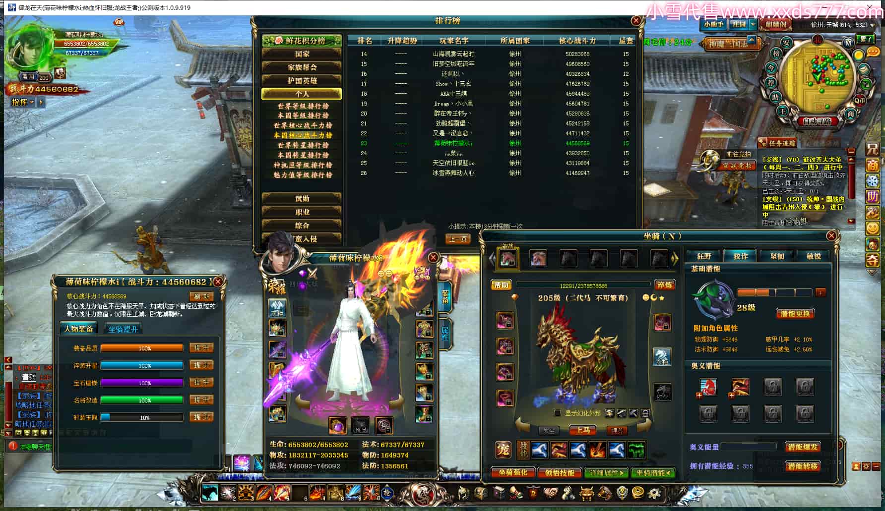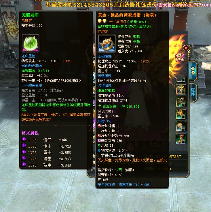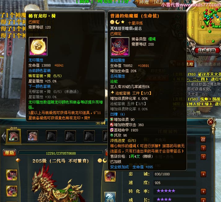 编号L24312 薄荷味柠檬水i 龙战王者 徐州 本国排名23名 4456W战力 人物黄金加强橙12X(3件15X1件混沌) 马普通橙10X 人物绿龙印 马黄龙印 六等单双属性石头 已开启永久15星套 可以转移百分百安全