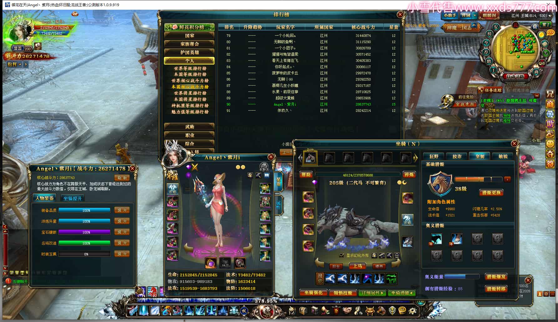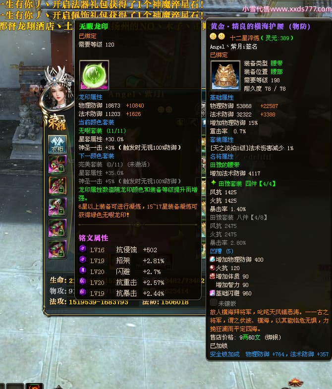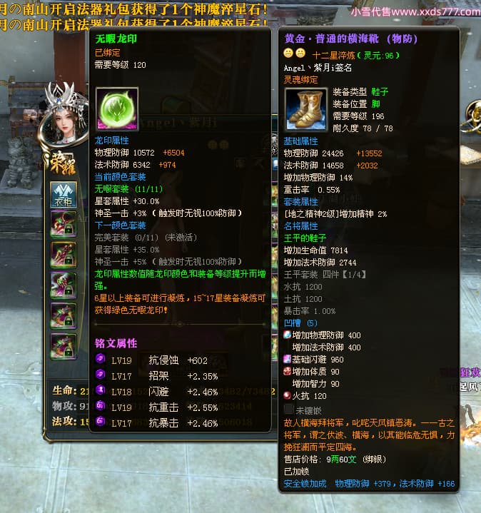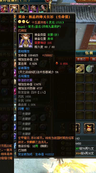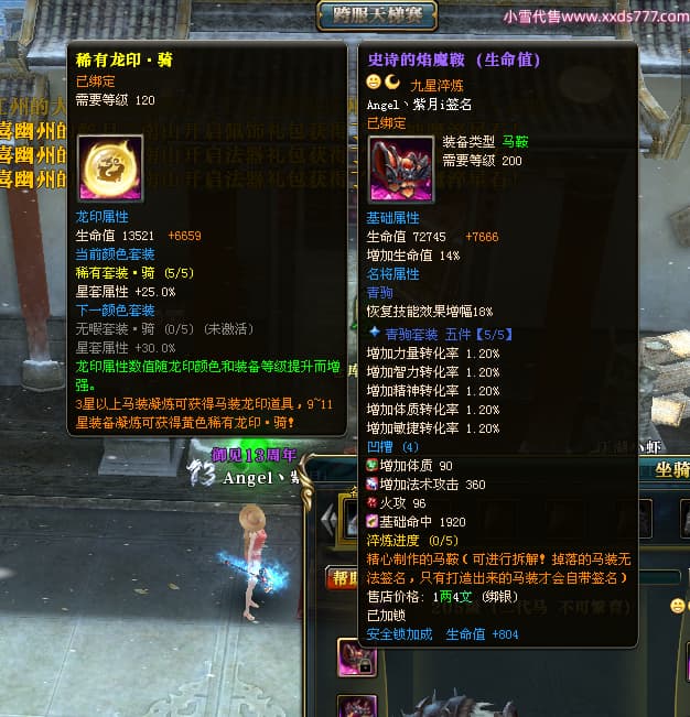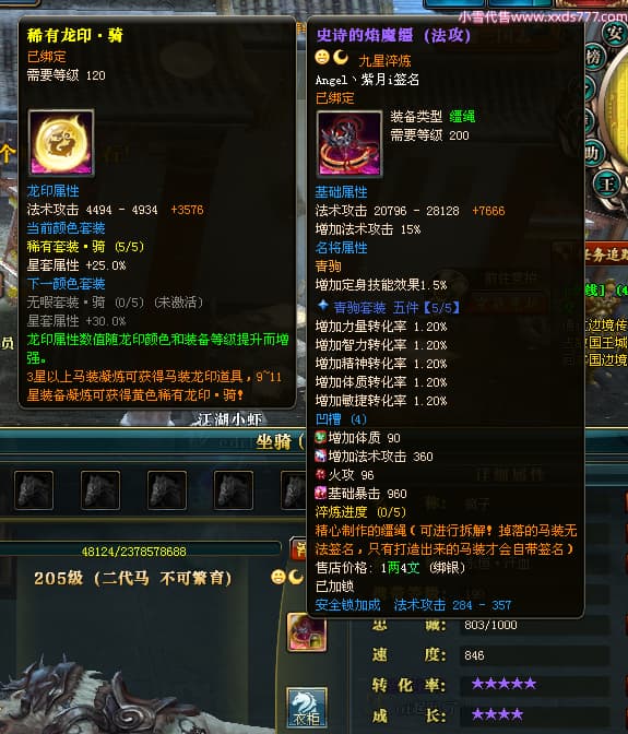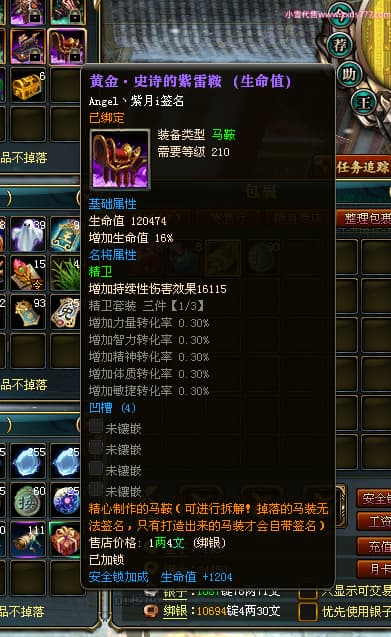 编号L24314 Angel丶紫月i 龙战王者 江州 本国排名90名 2627W战力 人物精良紫12X 马史诗紫9X 人物绿龙印 马黄龙印 六等单双属性石头 已开1次永久15星套 可以转移百分百安全