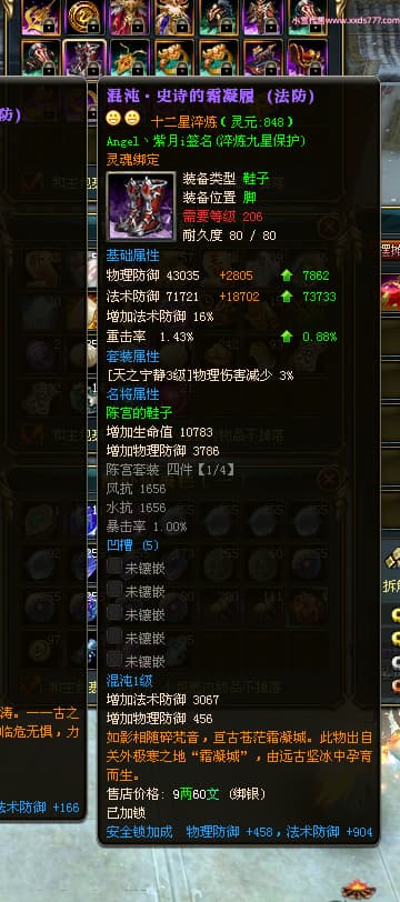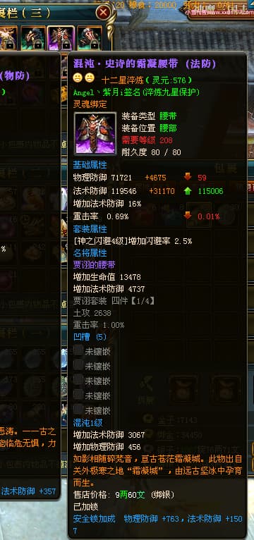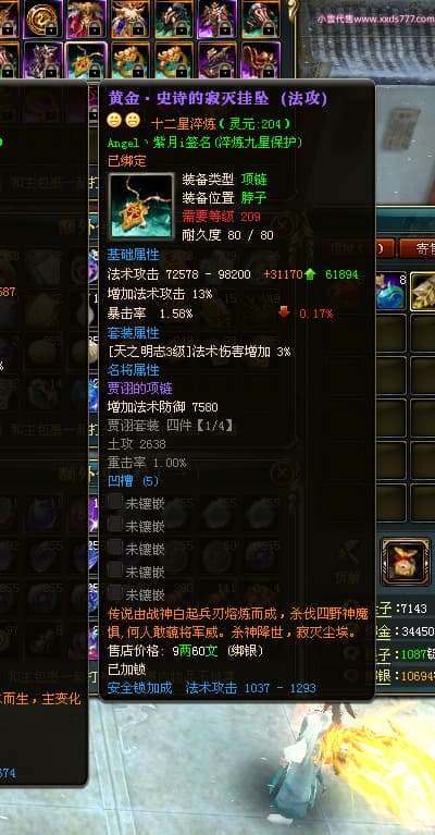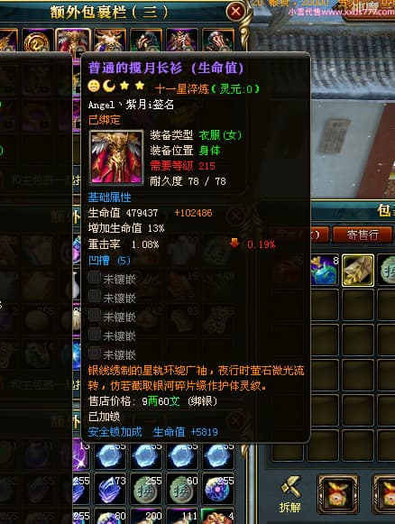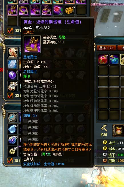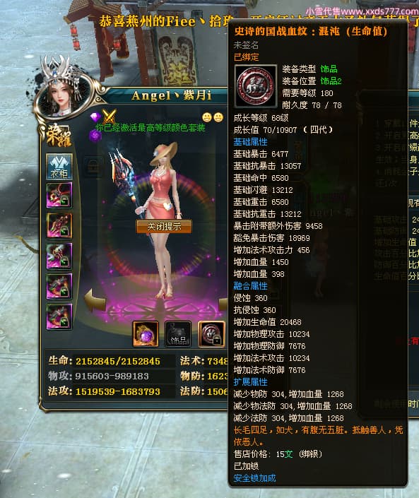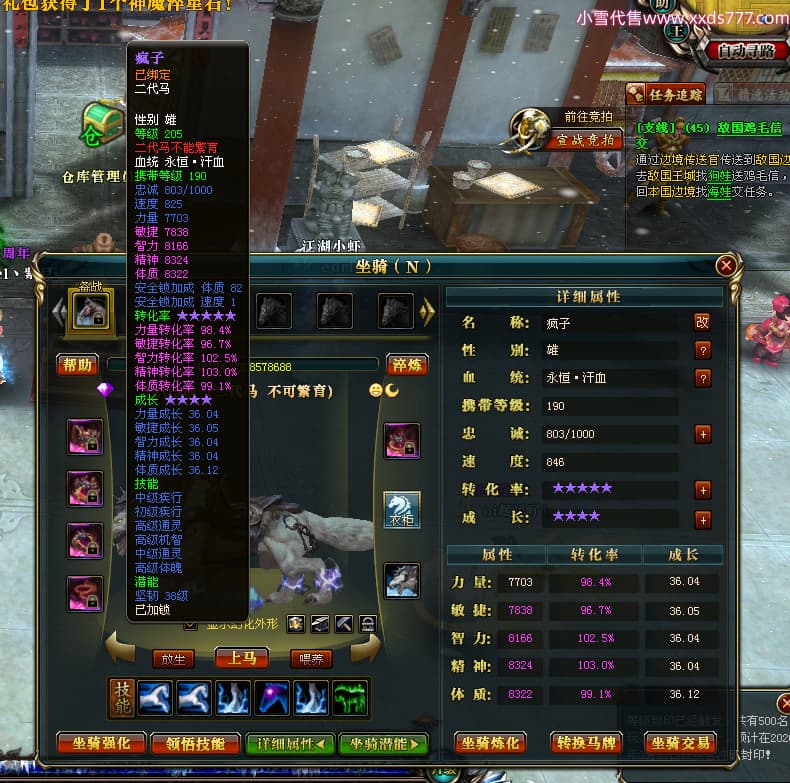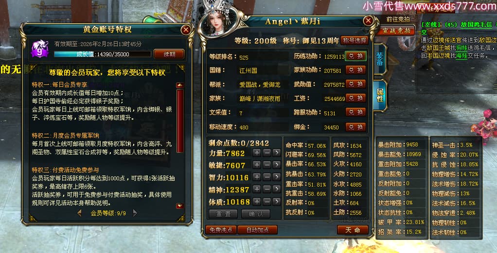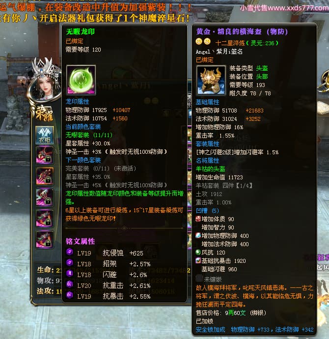 编号L24314 Angel丶紫月i 龙战王者 江州 本国排名90名 2627W战力 人物精良紫12X 马史诗紫9X 人物绿龙印 马黄龙印 六等单双属性石头 已开1次永久15星套 可以转移百分百安全