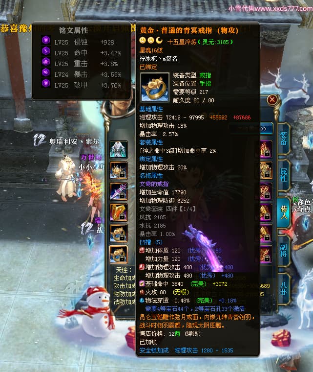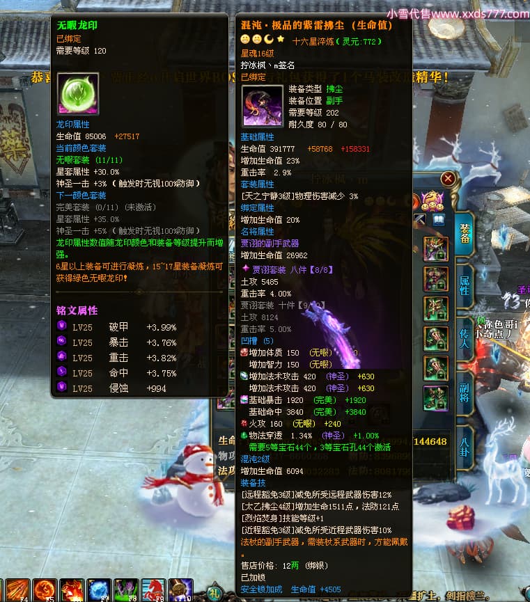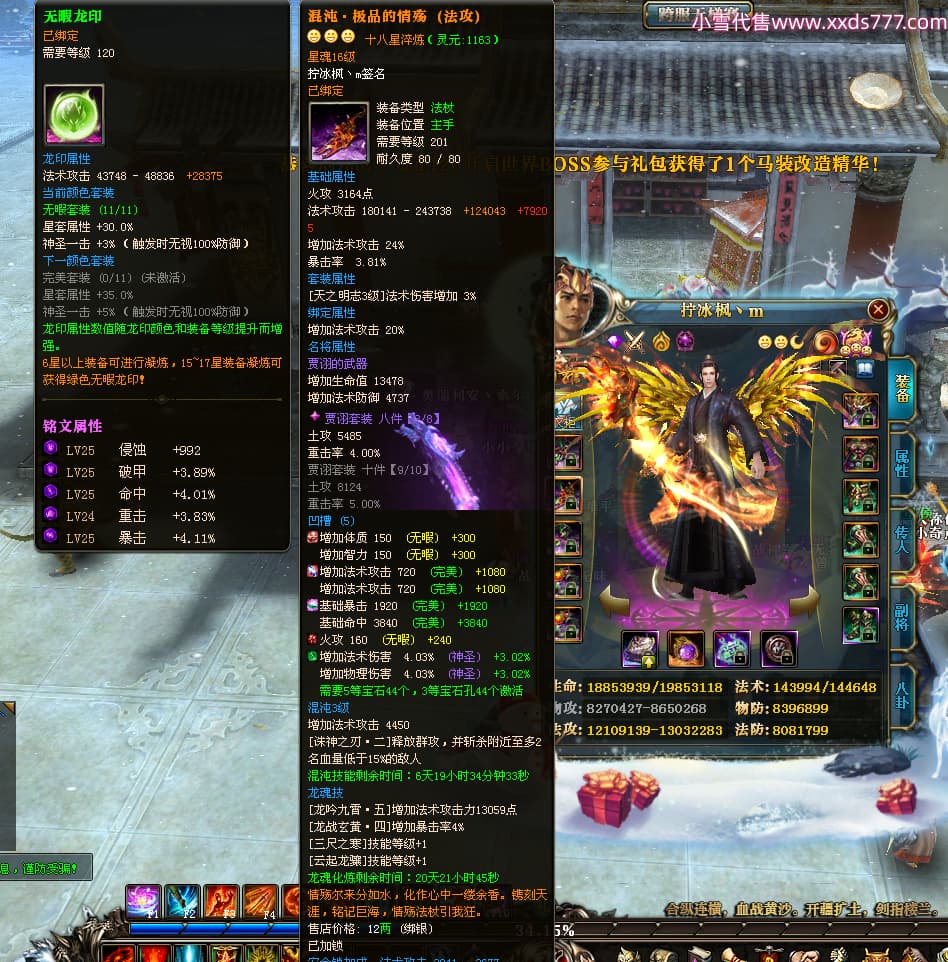 编号T24317 拧冰枫丶m 龙腾问鼎 荆州 本国排名37名 20380W战力 人物混沌极品橙15X(1件18X) 传人极品紫15X 副将史诗紫12X 马黄金加强橙12X 精良紫14披风 人物星魂16级 传人星魂16级 副将星魂6级 马星魂16级 人物铭刻15级 点亮16星 马铭刻15级 点亮12星 人绿龙印 马黄龙印 六等单双属性神圣完美无瑕石头 黄绿孔 可以转移百分百安全