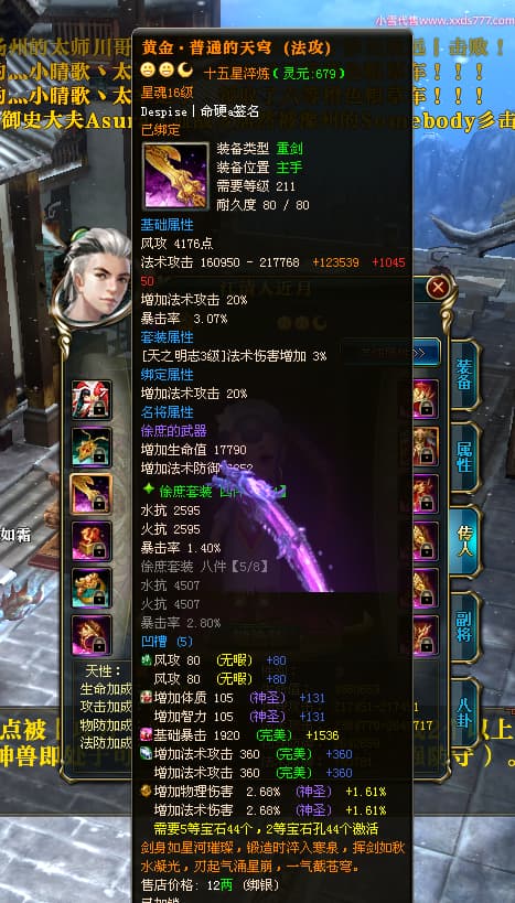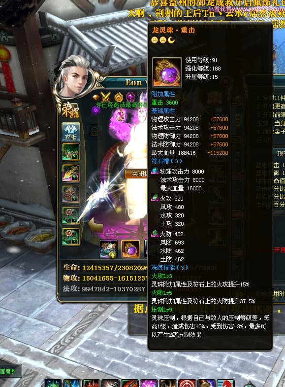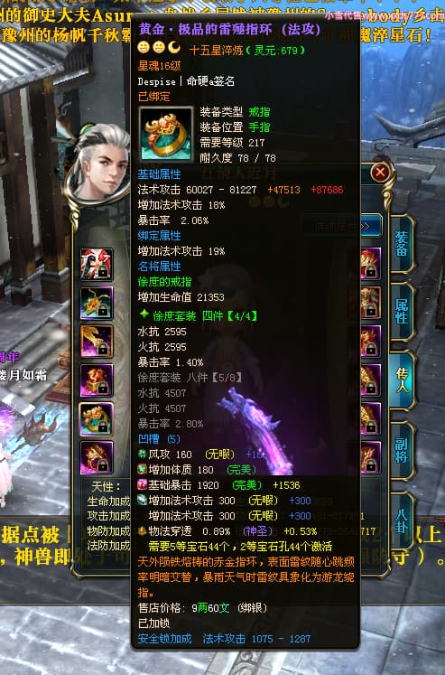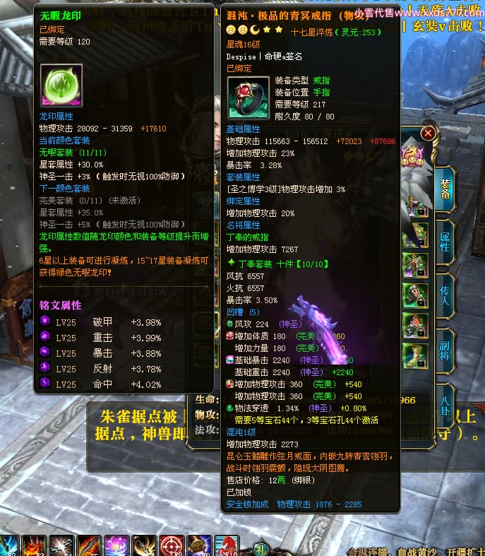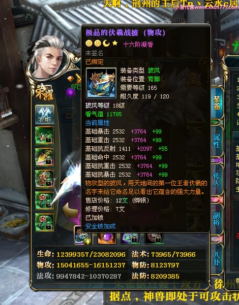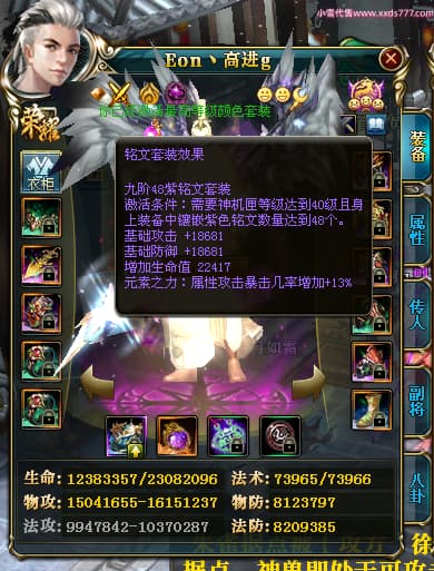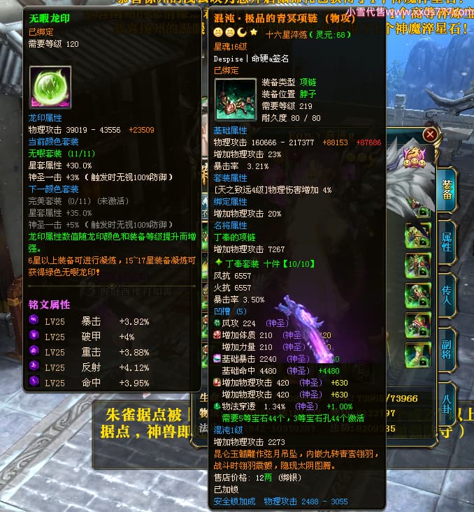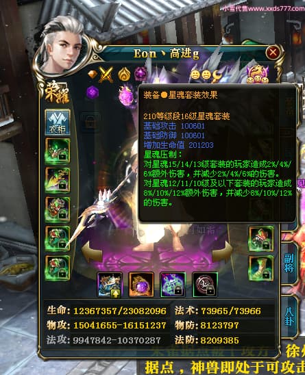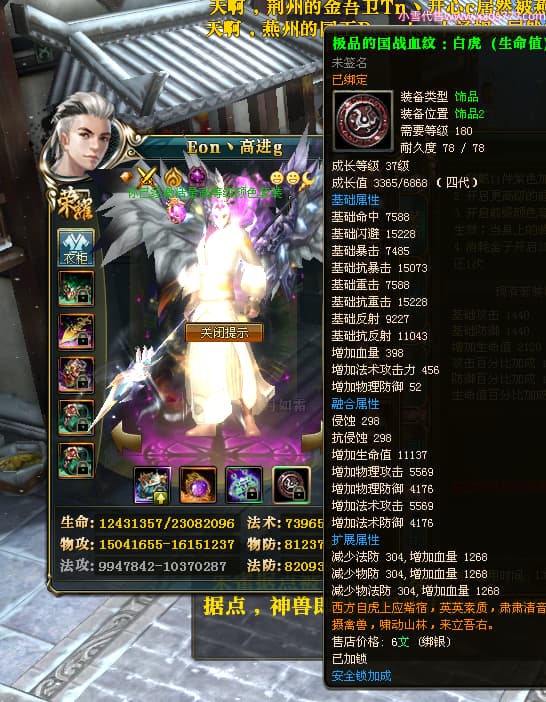 编号Z24326 Eon丶高进g 逐鹿天下 扬州 世界排名81名 23529W战力 人物黄金普通橙15X(1件18X1件17X8件混沌) 传人极品紫15X 副将史诗紫12X 马普通橙13X(双潜能52级46级) 极品紫16披风 人物星魂16级 传人星魂16级 副将星魂6级 马星魂16级 人物铭刻1件17级其余16级 人物点亮16星 马铭刻13级 点亮14星 人绿龙印 马黄龙印 六等单双属性神圣完美无暇石头 黄绿孔 已开完永久15星套