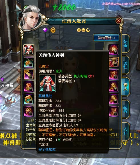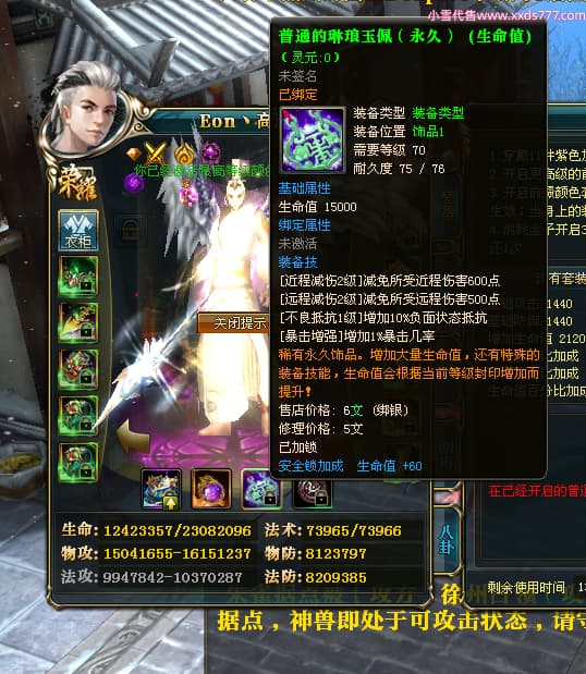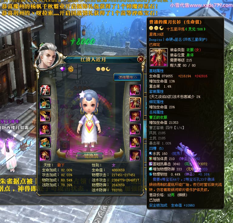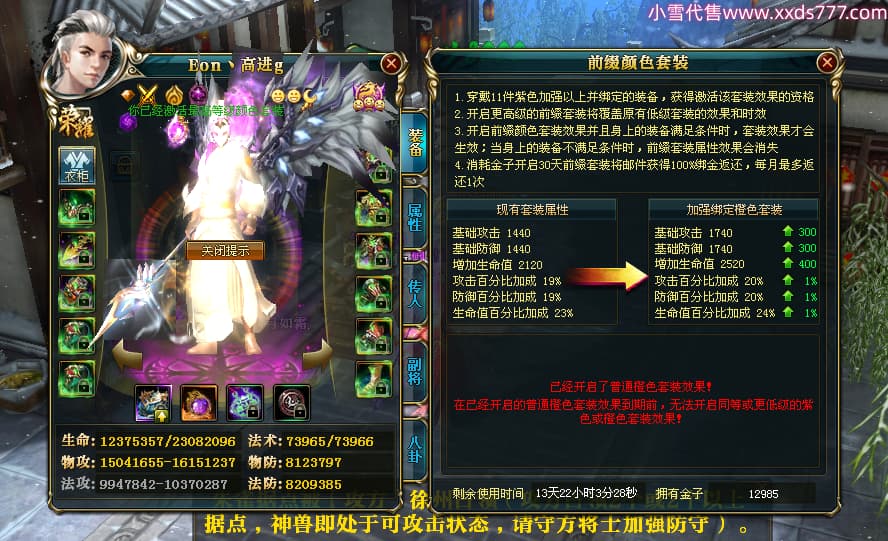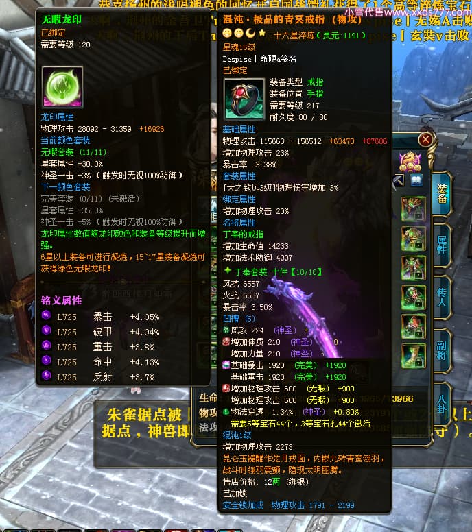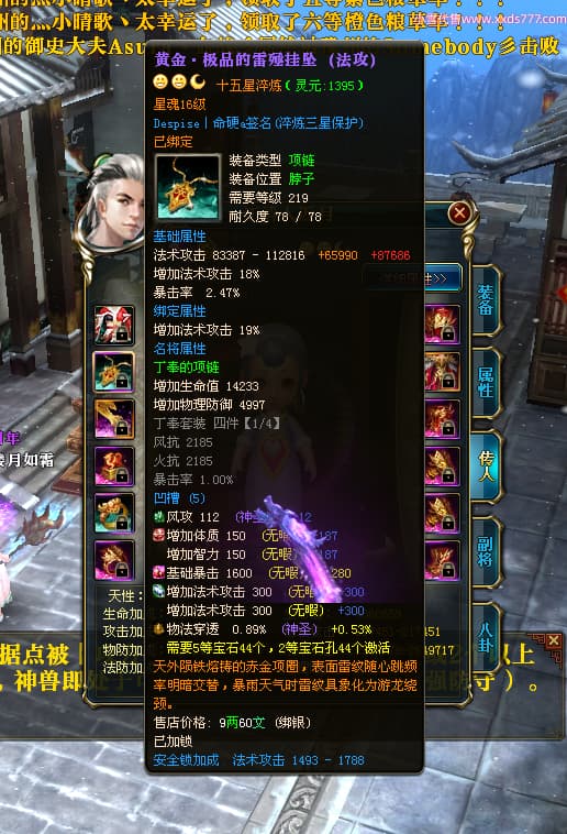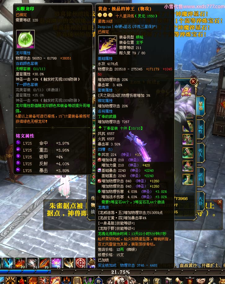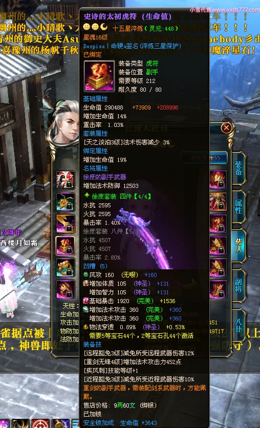 编号Z24326 Eon丶高进g 逐鹿天下 扬州 世界排名81名 23529W战力 人物黄金普通橙15X(1件18X1件17X8件混沌) 传人极品紫15X 副将史诗紫12X 马普通橙13X(双潜能52级46级) 极品紫16披风 人物星魂16级 传人星魂16级 副将星魂6级 马星魂16级 人物铭刻1件17级其余16级 人物点亮16星 马铭刻13级 点亮14星 人绿龙印 马黄龙印 六等单双属性神圣完美无暇石头 黄绿孔 已开完永久15星套