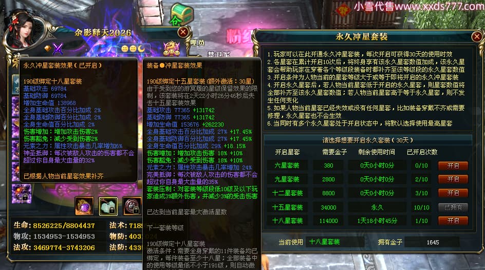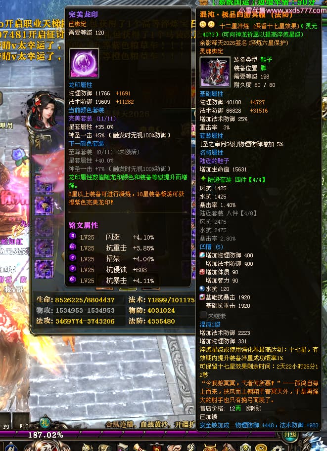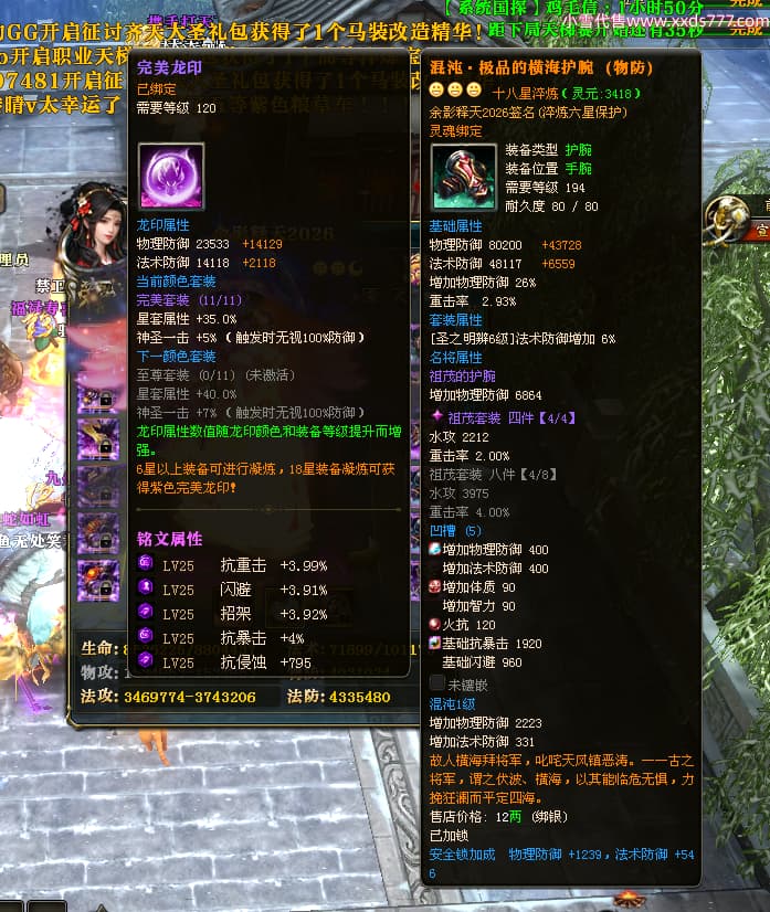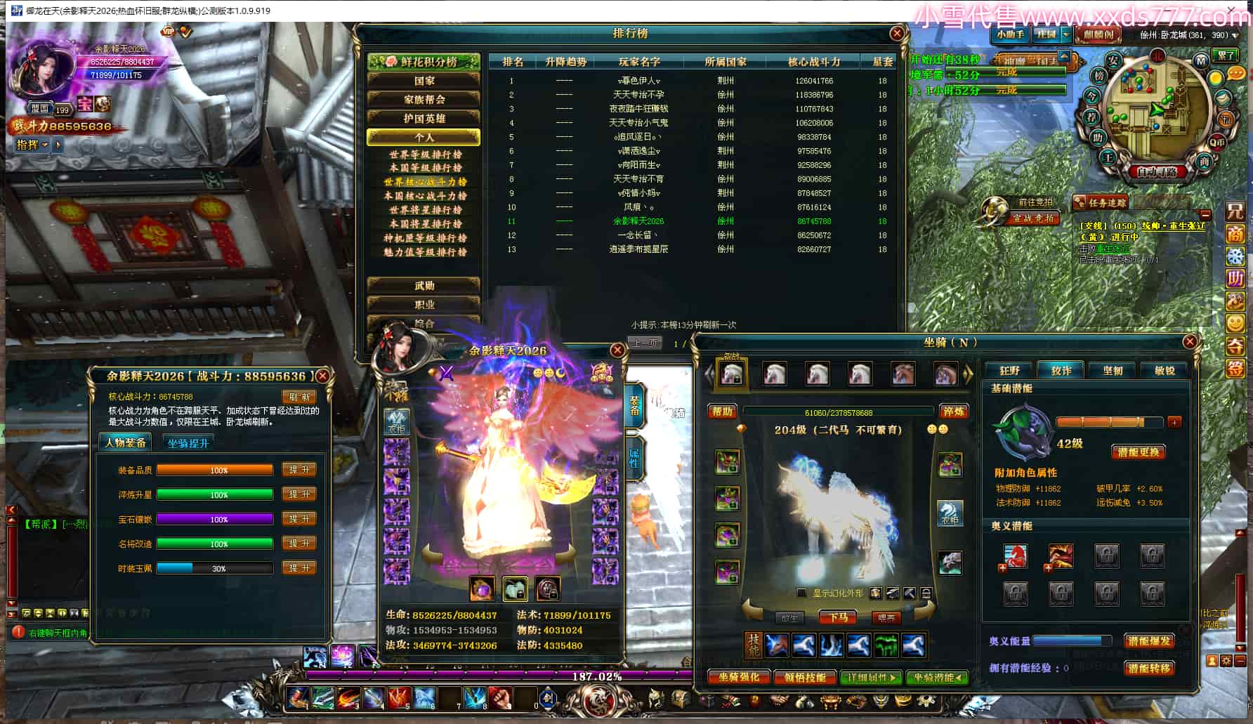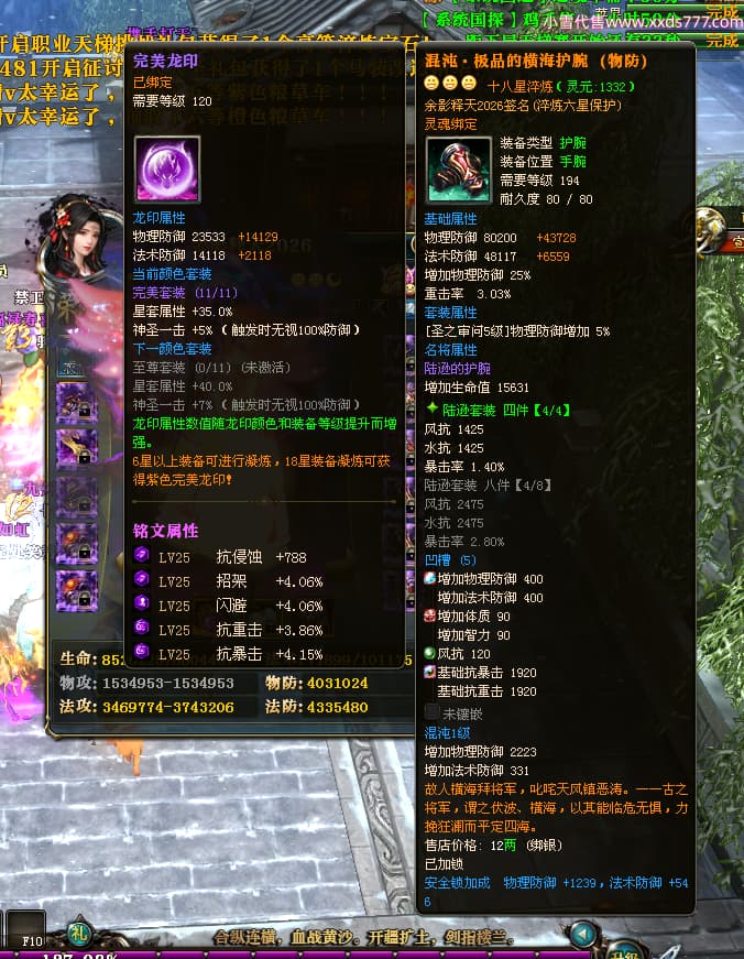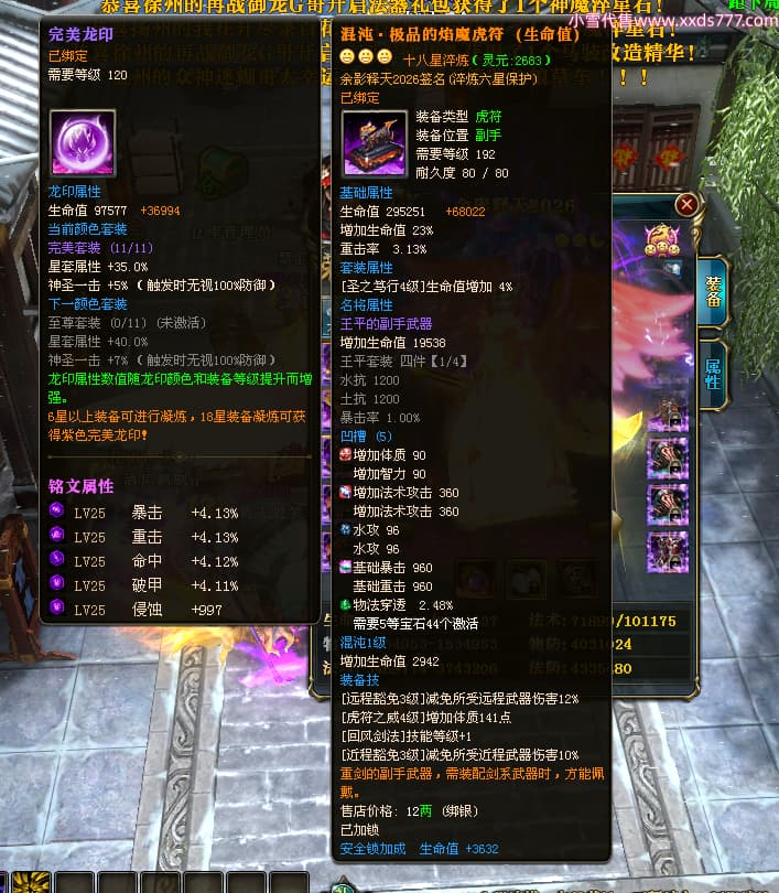 编号Q24327 余影释天2026 群龙纵横 徐州 世界排名11名 8859W战力 人物黄金极品橙15X(10件18X9件混沌) 马黄金精良橙12X 人物紫龙印 马绿龙印 六等单双属性石头 已开完永久15星套 可以转移百分百安全