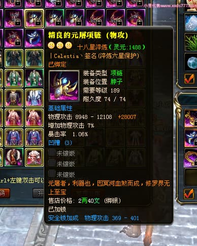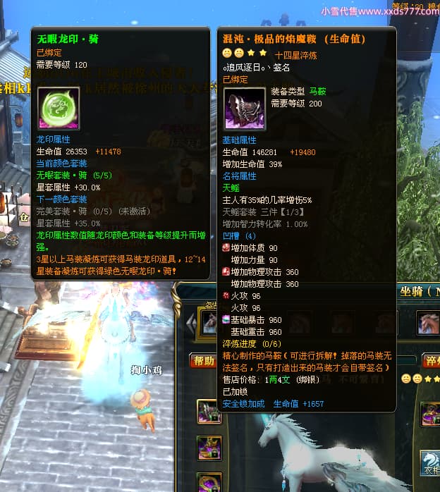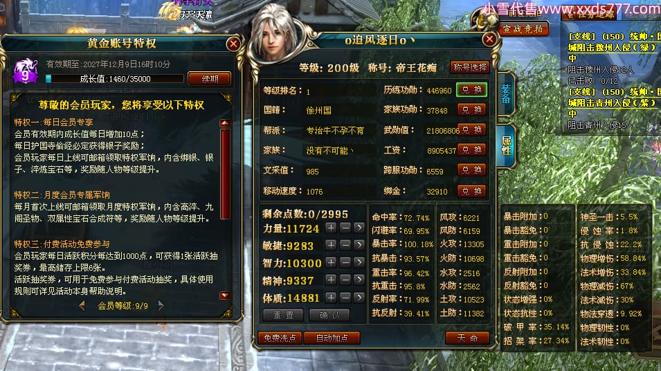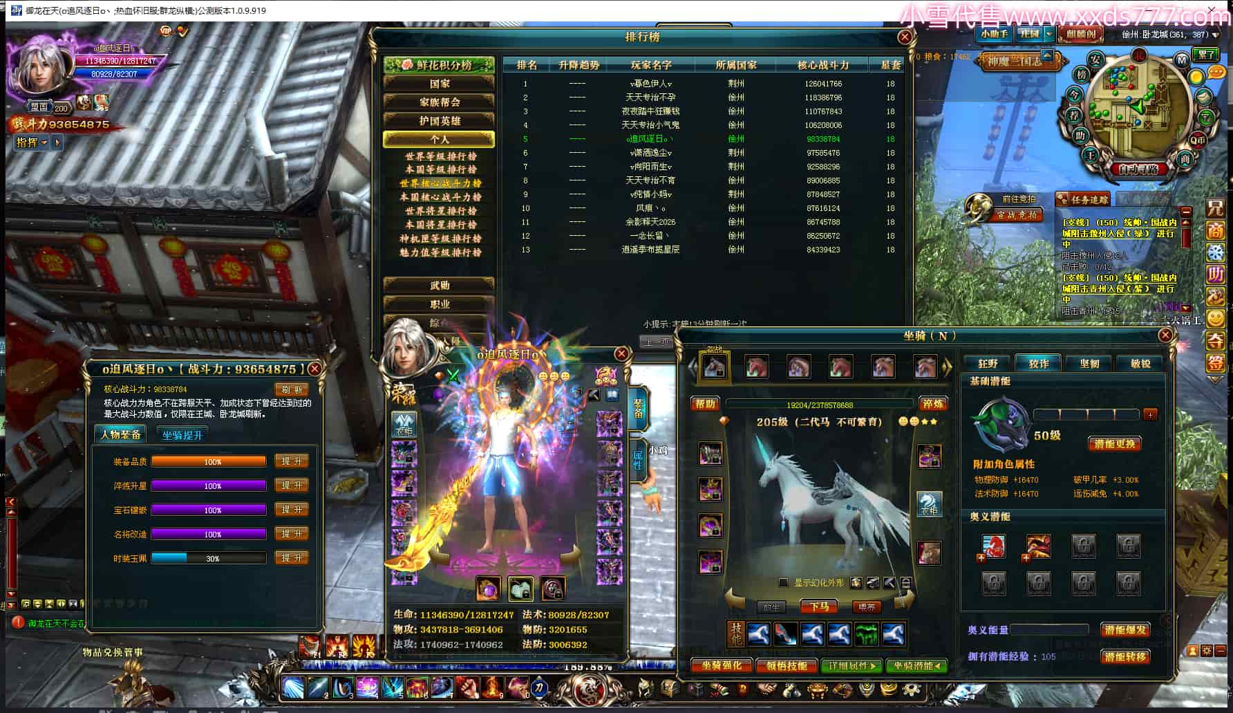 编号Q24334 o追风逐日o丶 群龙纵横 徐州 世界排名5名 9365W战力 人物黄金极品橙18X(9件混沌) 马黄金极品橙14X(双潜能50级43级) 人物紫龙印 马绿龙印 六等单双属性石头 已开完永久15星套 可以转移百分百安全