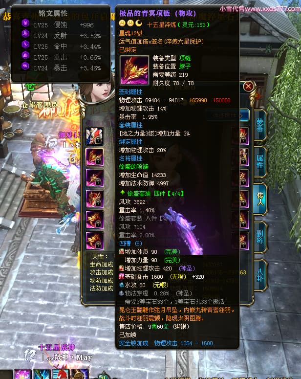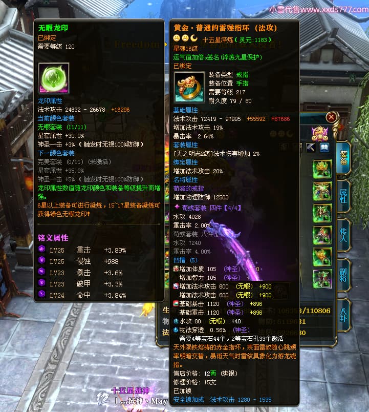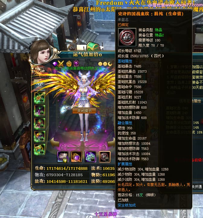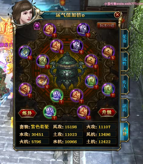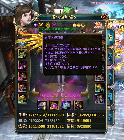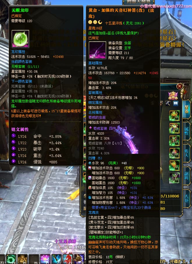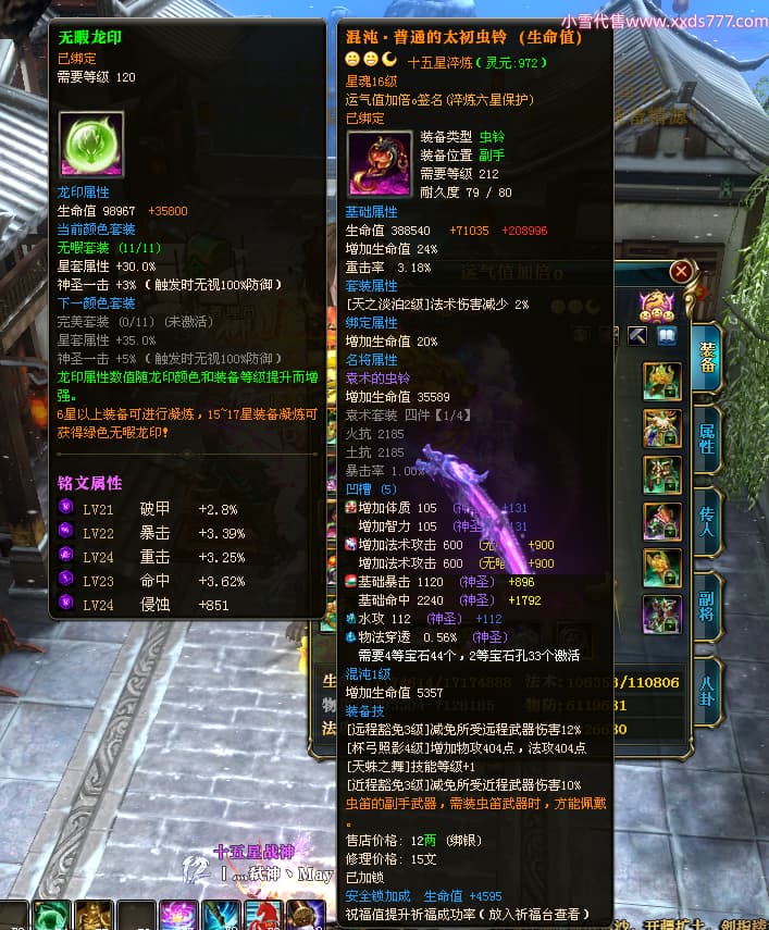 编号X24338 运气值加倍o 龙啸风云 青州 本国排名38名 15672W战力 人物黄金普通橙15X(5件混沌) 传人极品紫12X 副将极品紫12X 马史诗紫12X 精良紫14披风 人物星魂16级 传人星魂12级 副将星魂6级 马星魂12级 人物铭刻15级 点亮4件16星其余14星 马铭刻2件15级其余14级 点亮12星 人物绿龙印 马黄龙印 五六等单双属性神圣完美无暇石头 黄蓝孔 已开2次永久15星套