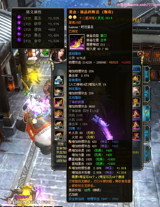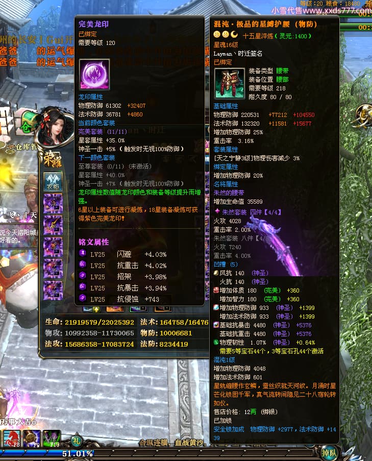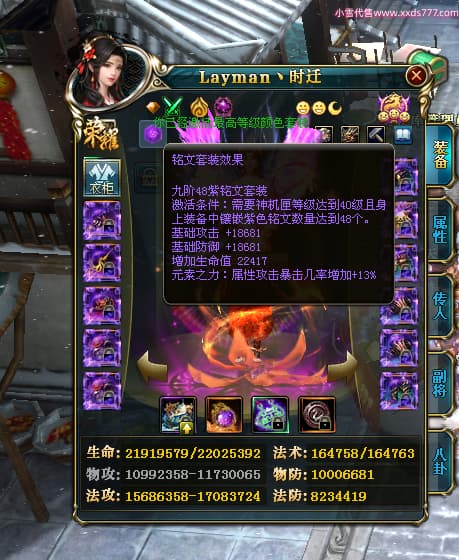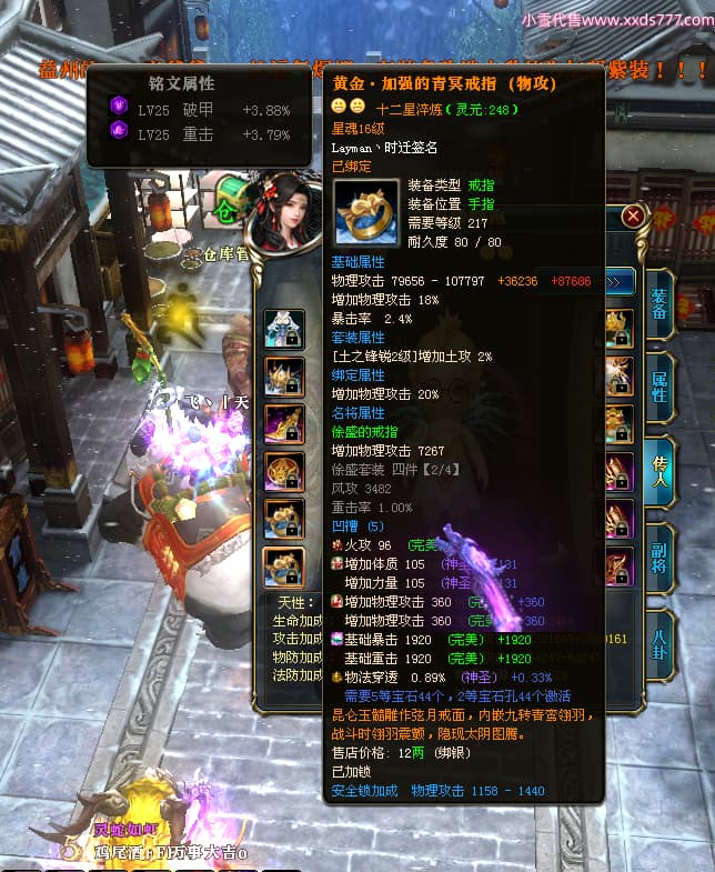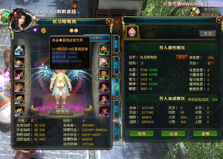 编号T24340 Layman丶时迁 龙腾问鼎 益州 世界排名84名 25912W战力 人物黄金极品橙15X(9件混沌) 传人史诗紫12X 副将普通橙12X 马黄金极品橙13X 极品紫16披风 人物星魂16级 传人星魂16级 副将星魂8级 马星魂16级 人物铭刻8件16级1件15级 人物点亮16星 马铭刻15级 点亮14星 人物紫龙印 马黄龙印(2件绿龙印) 六等单双属性神圣完美石头 黄绿紫孔 已开5次永久15星套 可以转移百分百安全
