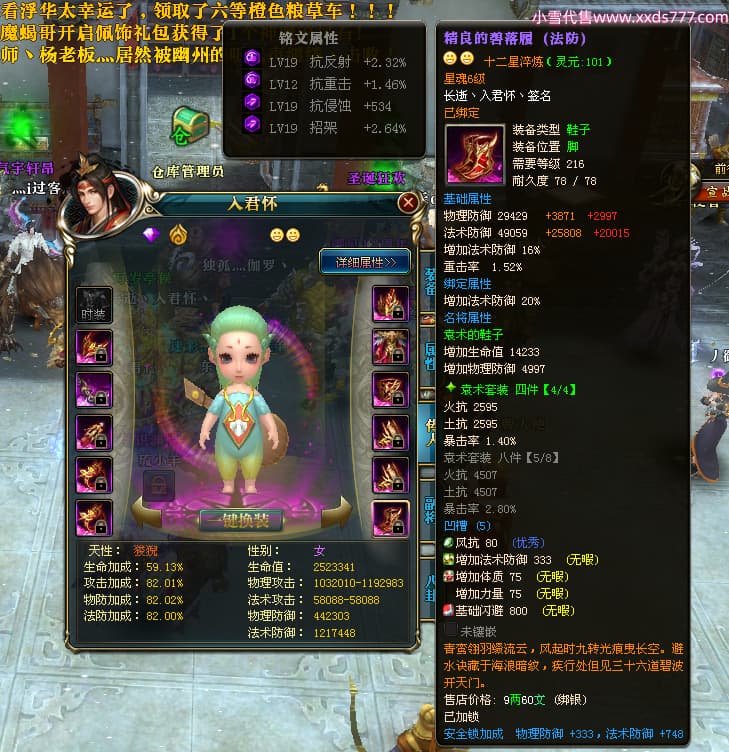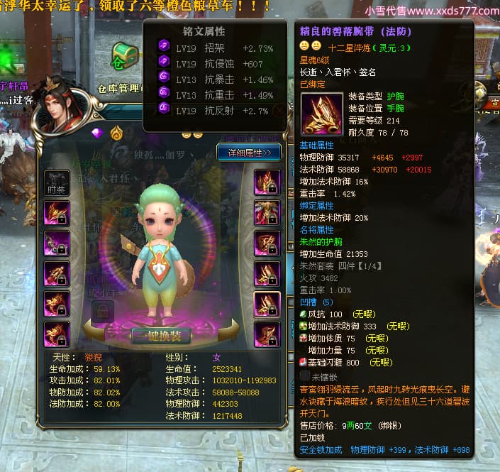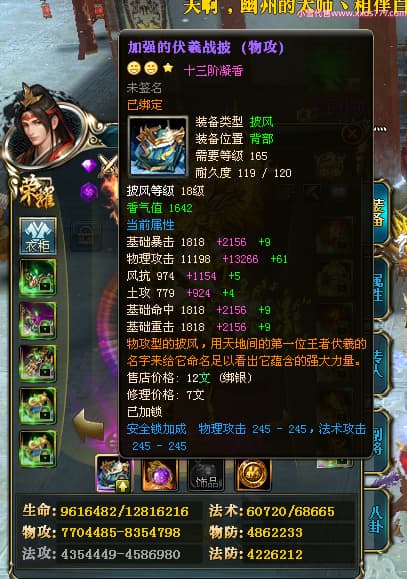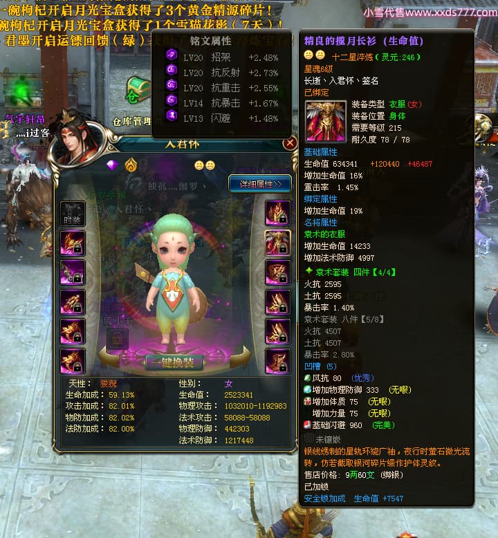 编号X24351 长逝丶入君怀丶 龙啸风云 青州 本国排名88名 10341W战力 人物极品紫15X(2件混沌) 传人精良紫12X 副将普通紫12X 马史诗紫9X 加强紫13披风 人物星魂12级 传人星魂6级 马星魂5级 人物铭刻1件15级1件14级其余12级 点亮2件14星其余12星 马铭刻12级 点亮10星 人物绿龙印 马蓝龙印(1件黄龙印) 五等单双属性神圣完美无暇石头 蓝白孔