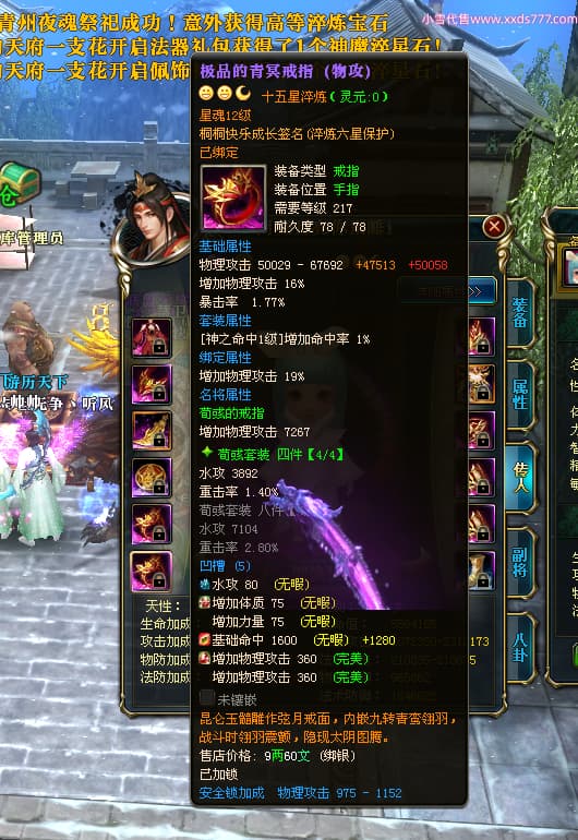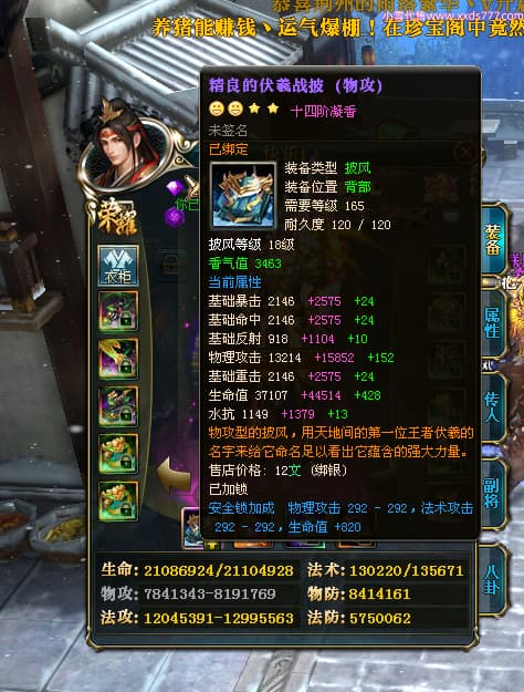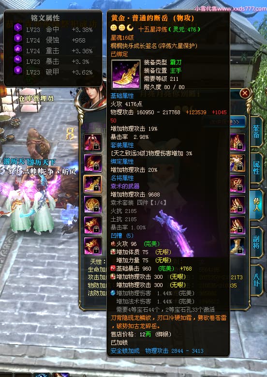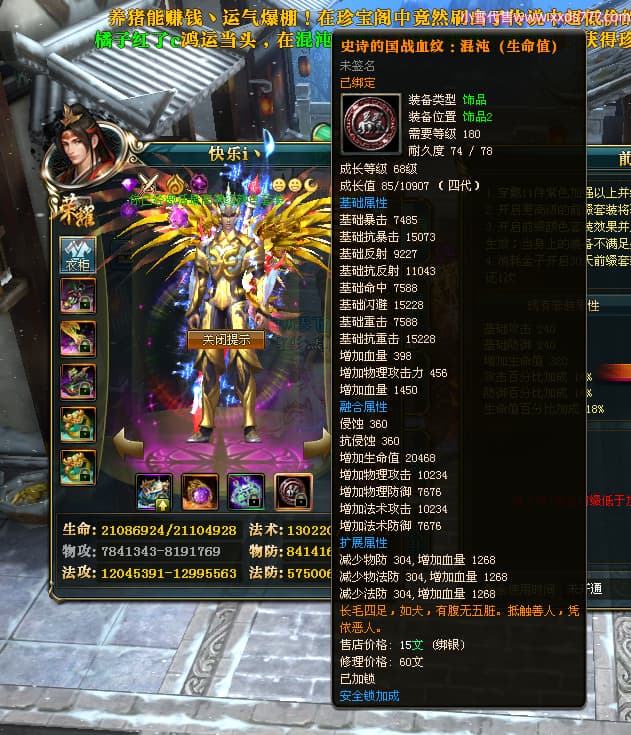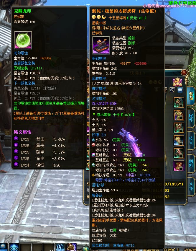 编号T24352 快乐i丶 龙腾问鼎 青州 本国排名12名 18770W战力 人物黄金普通橙15X(5件混沌) 传人精良紫15X 副将精良紫15X 马普通橙12X 精良紫14披风 人物星魂16级 传人星魂12级 副将星魂6级 马星魂13级 人物铭刻15级 点亮16星 马铭刻12级 点亮12星 人绿龙印 马黄龙印 六等单双属性神圣完美无瑕石头 黄蓝绿孔