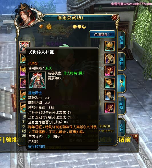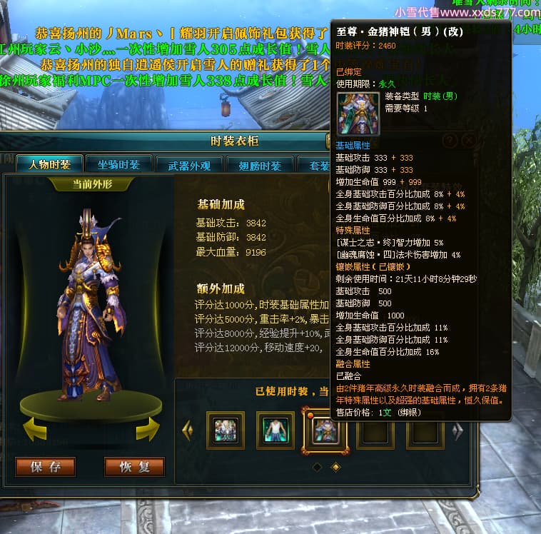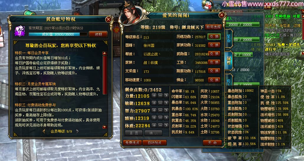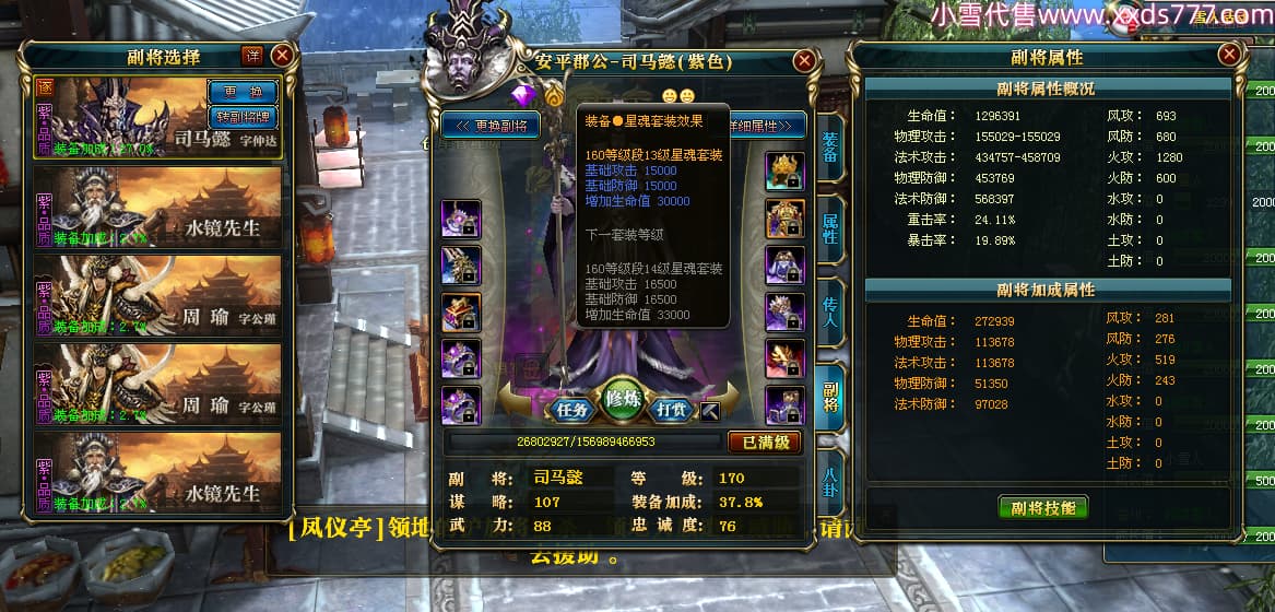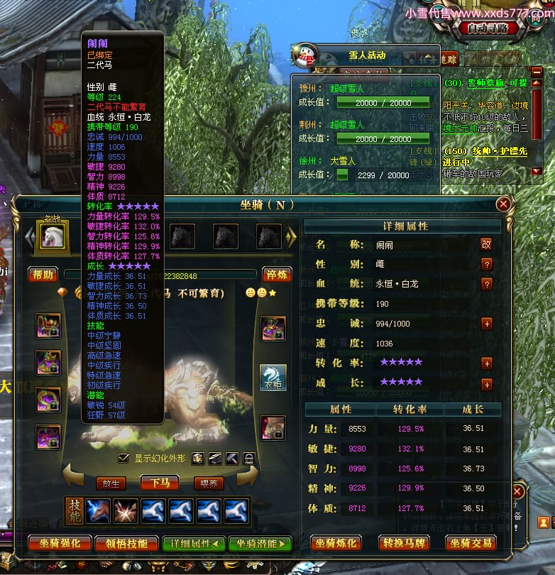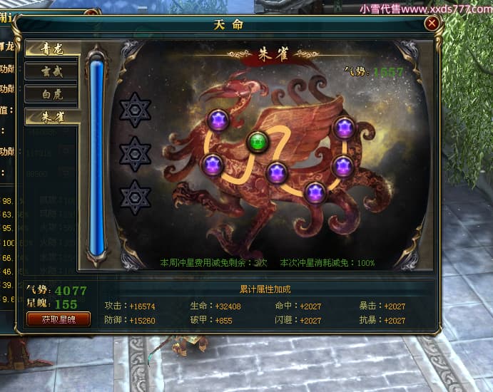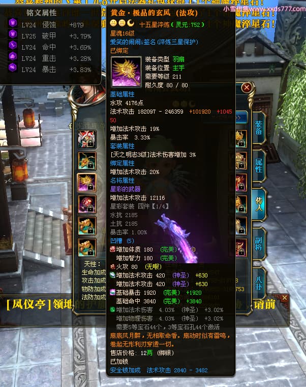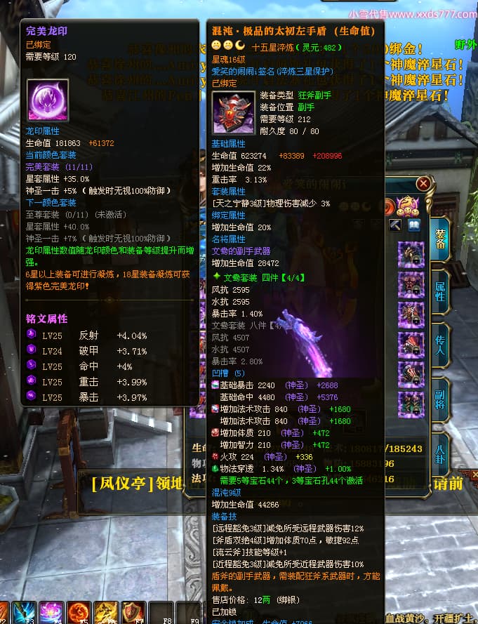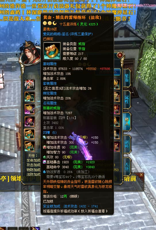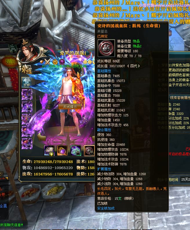 编号W24363 爱笑的闹闹i 龙舞九州 徐州 世界排名35名 32244W战力 人物混沌极品橙15X(1件18X) 传人黄金普通橙15X 副将史诗紫12X 马黄金精良橙13X(双潜能57级54级) 史诗紫17披风 人物星魂16级 传人星魂16级 副将星魂13级 马星魂16级 人物铭刻1件18级4件16级其余15级 点亮1件18星其余16星 马铭刻13级 点亮14星 人物紫龙印 马绿龙印 六等单双属性神圣完美无暇石头 黄绿紫孔 已开启永久18星套