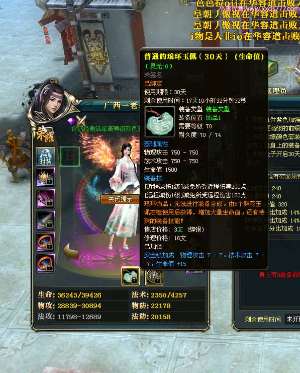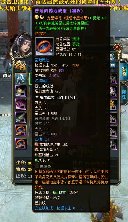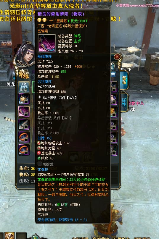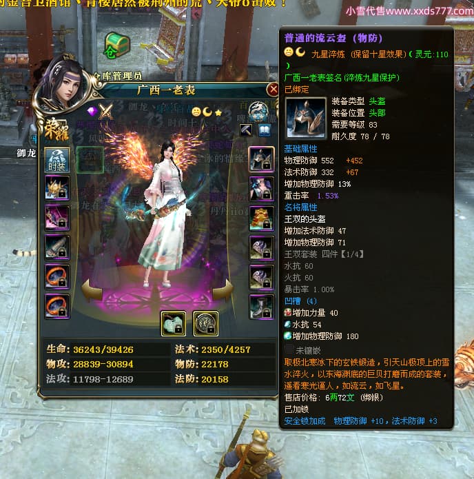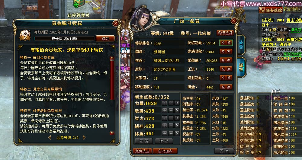 编号A24370 广西一老表 傲视皇朝 豫州 90级 本国排名43名 29W战力 人物普通紫10X(2件12X) 马普通紫3X 号内Q币1825个