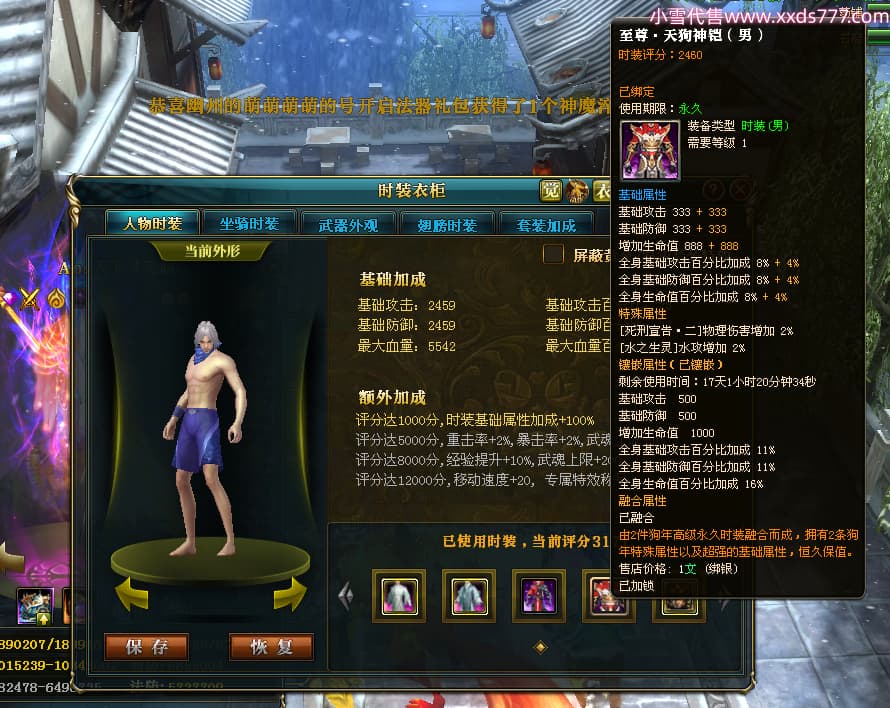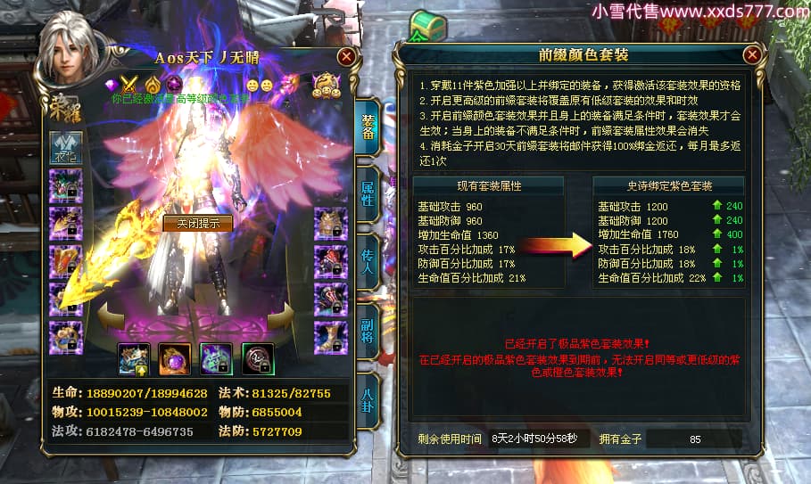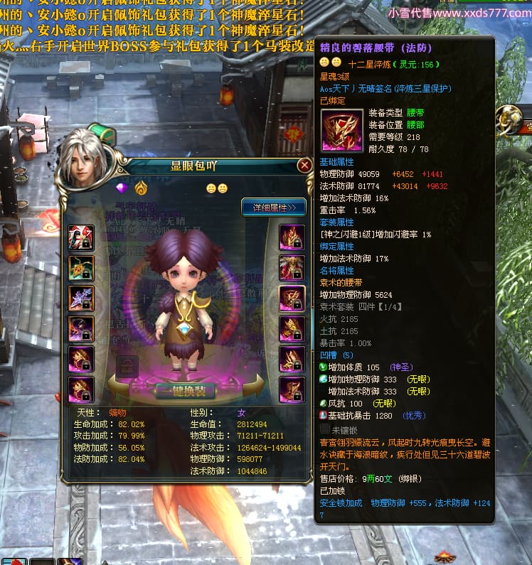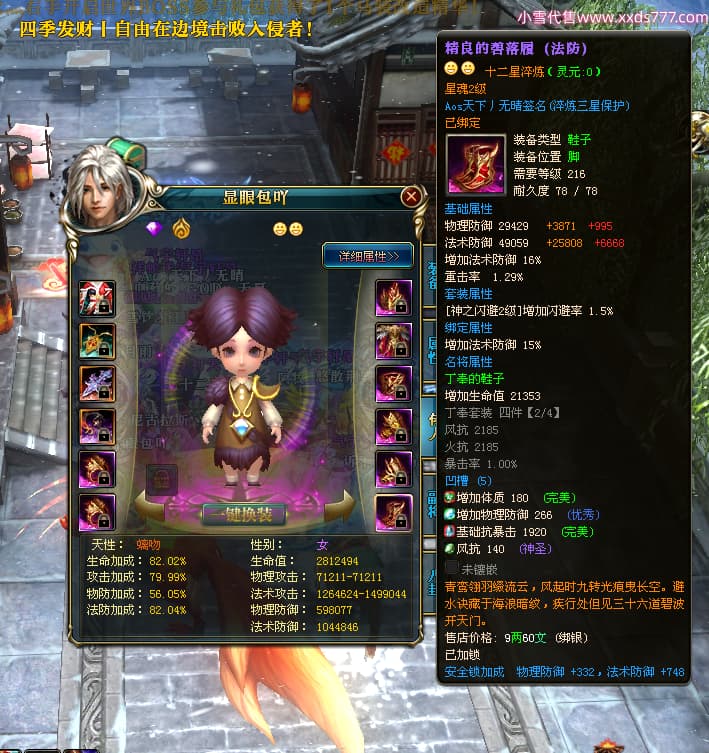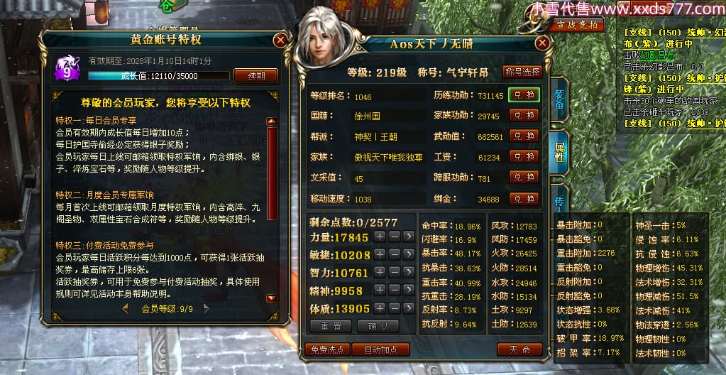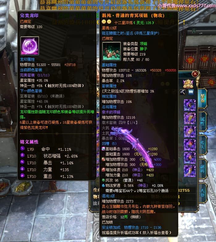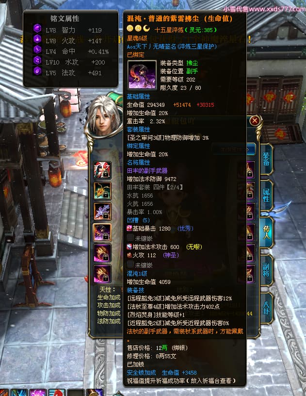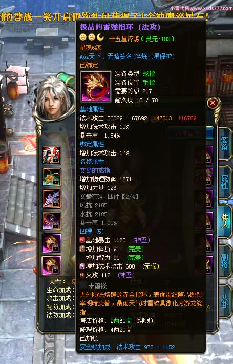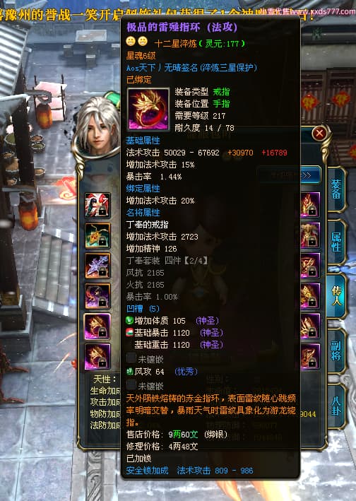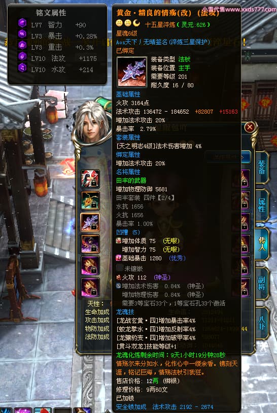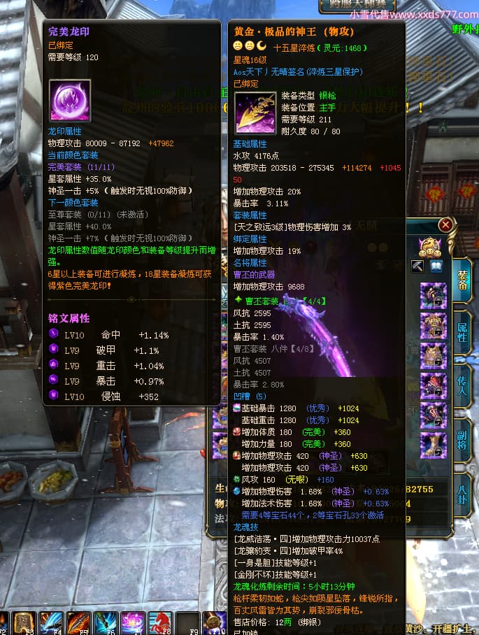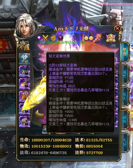 编号X24371 Aos天下丿无晴 龙啸风云 徐州 本国排名48名 13873W战力 人物黄金史诗紫12X(5件15X4件混沌) 传人精良紫12X(3件15X) 副将极品紫12X 马史诗紫12X 加强紫13披风 人物星魂11级 马星魂6级 人物铭刻8件15级其余12级 人物点亮1件16星4件14星其余12星 马铭刻12级 点亮12星 人物紫龙印 马黄龙印 五六等单双属性神圣完美优秀石头 蓝黄孔 已开完永久18星套