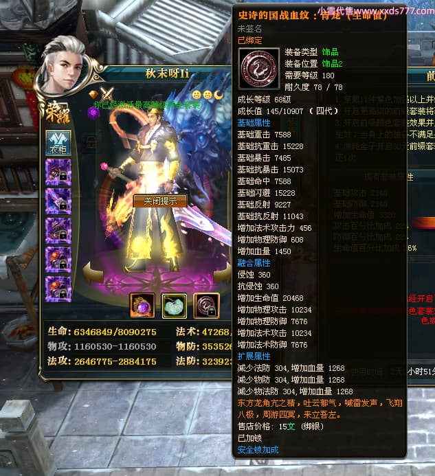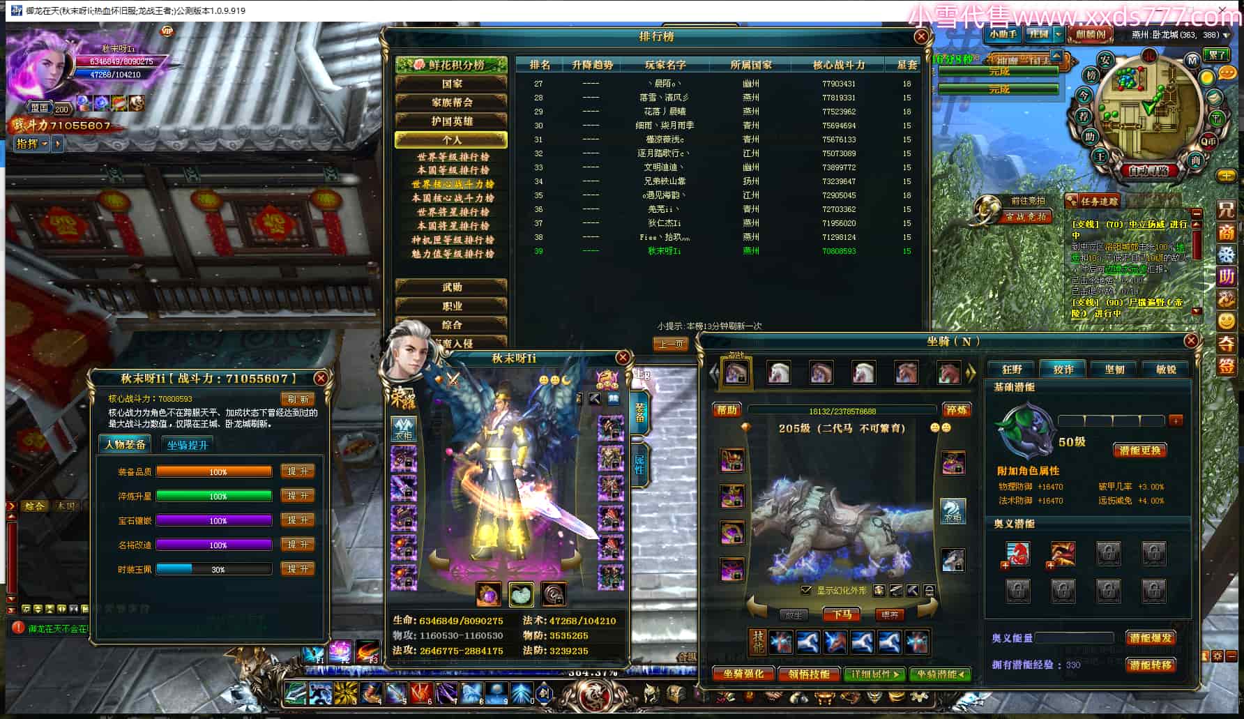 编号L24372 秋末呀Ii 龙战王者 燕州 世界排名39名 7105W战力 人物黄金极品橙15X(2件18X9件混沌) 马黄金极品橙12X(双潜能50级16级) 人物紫龙印 马绿龙印 六等单双属性石头 可以转移百分百安全