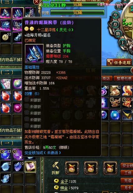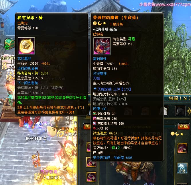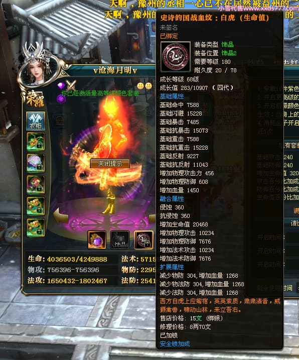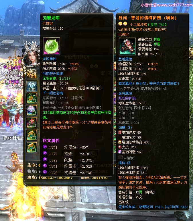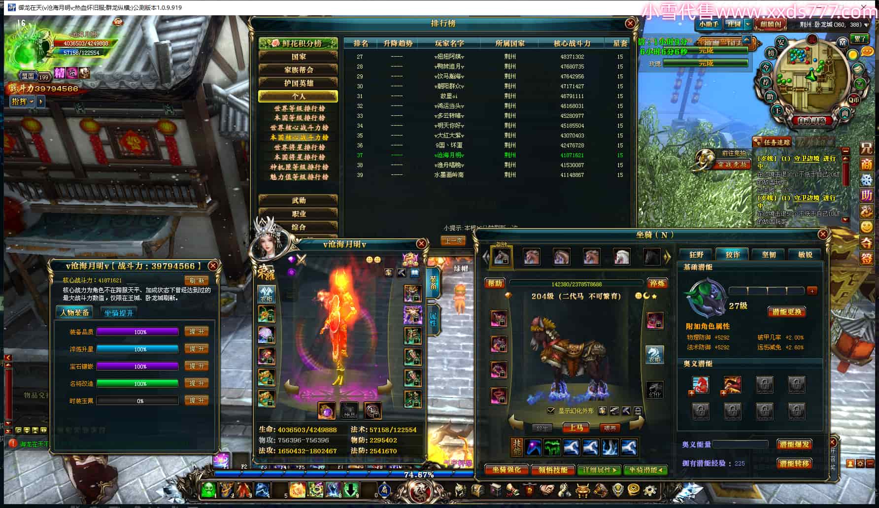 编号Q24375 v沧海月明v 群龙纵横 荆州 本国排名37名 3979W战力 人物黄金普通橙12X(1件18X5件15X6件混沌) 马普通橙10X 人物绿龙印(1件紫龙印) 马黄龙印 六等单双属性石头 已开2次永久15星套 可以转移百分百安全