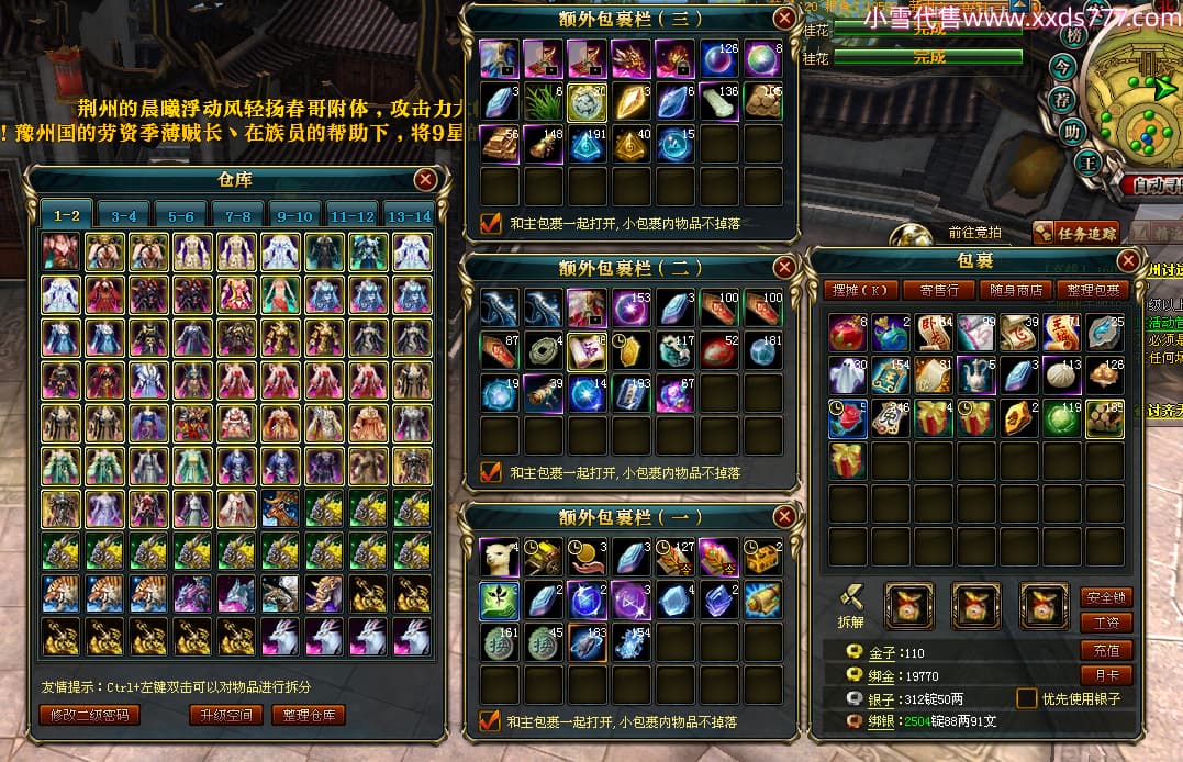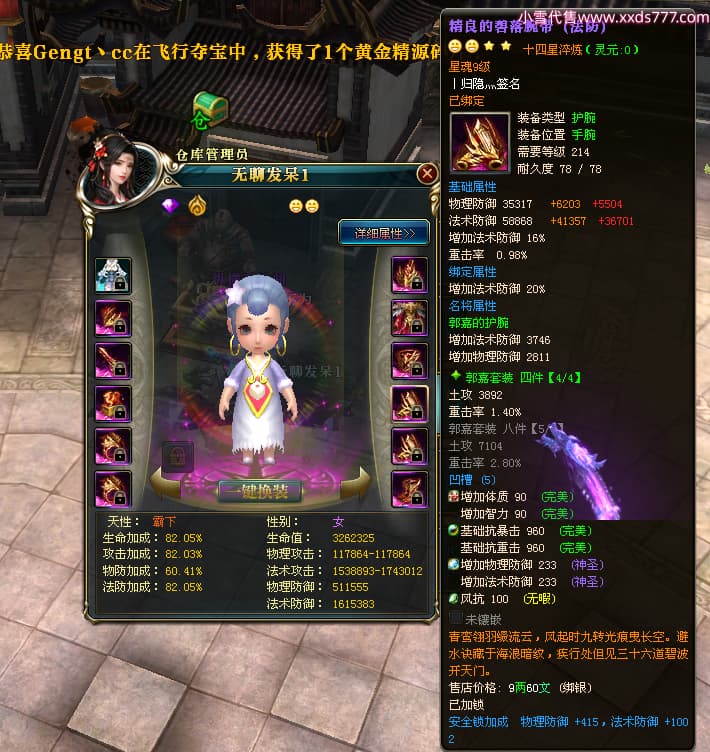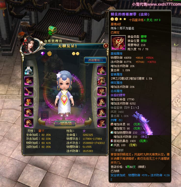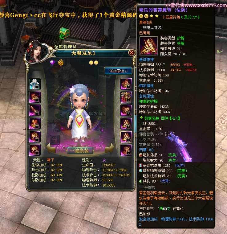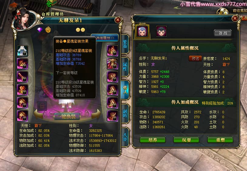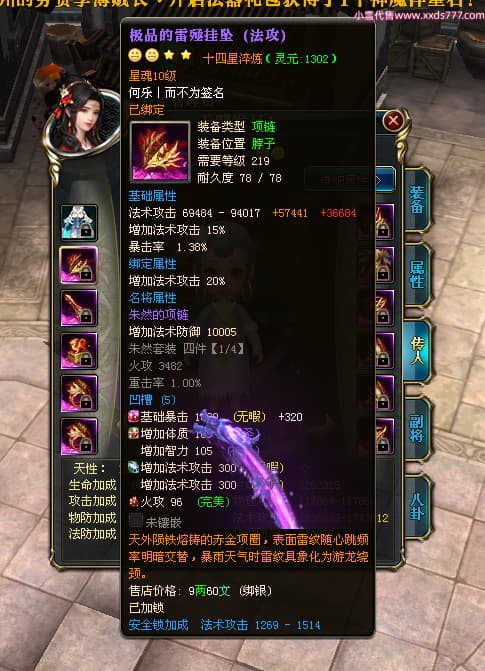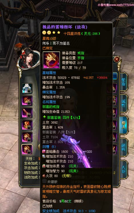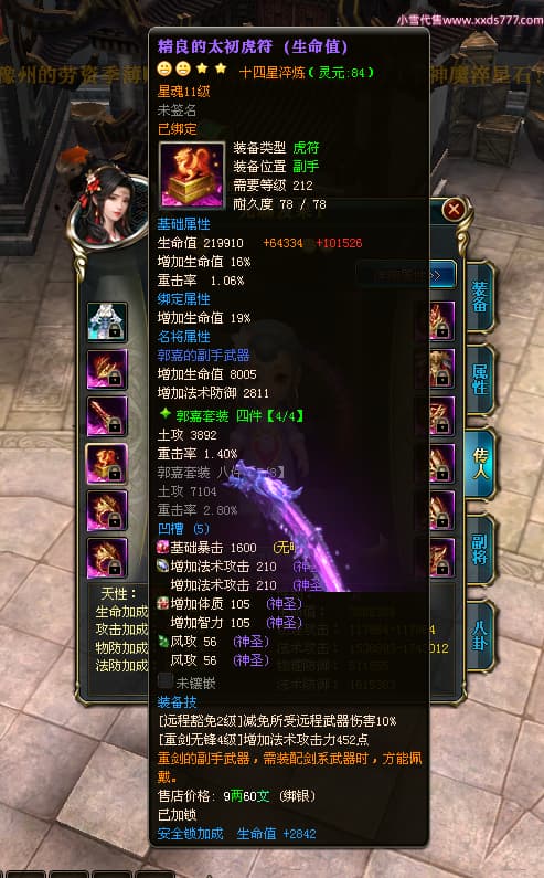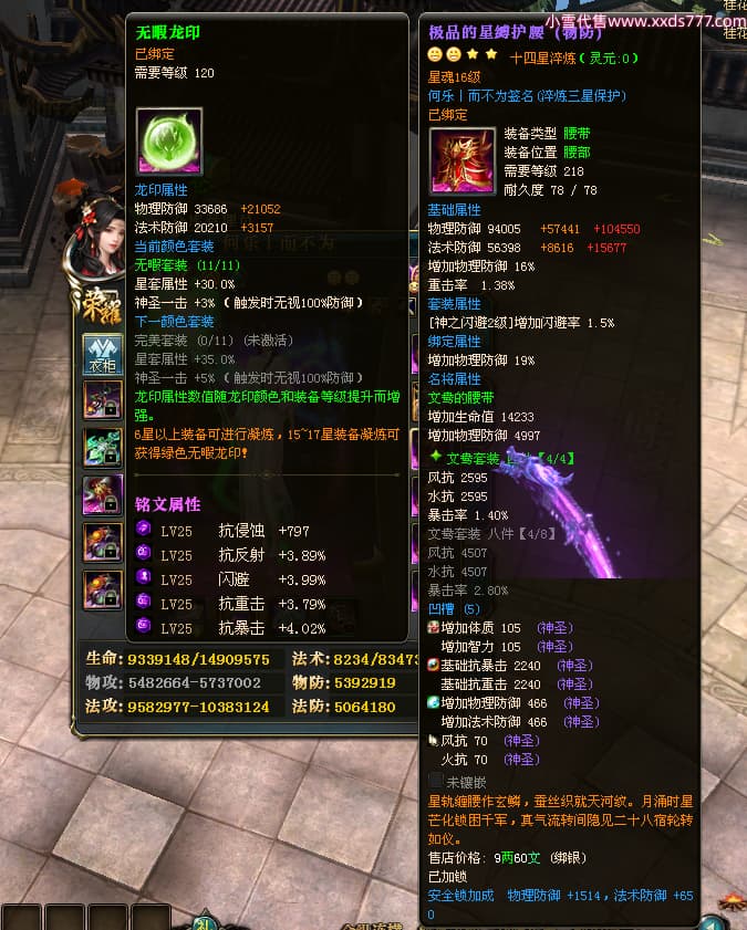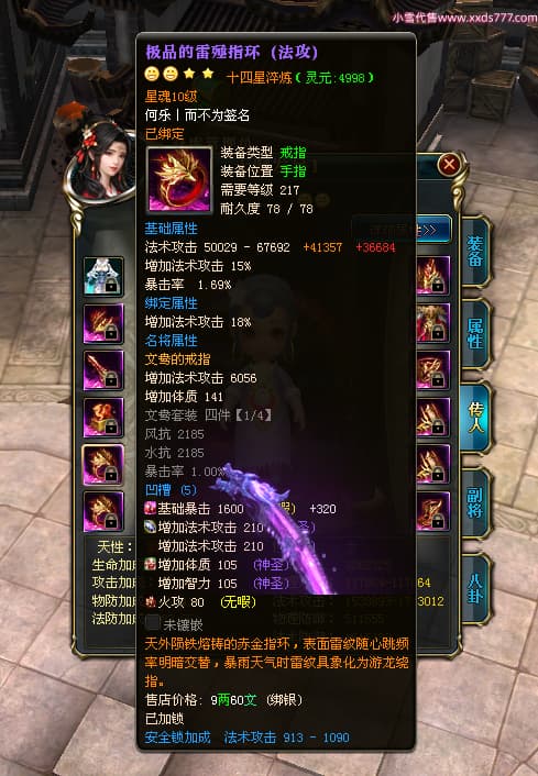 编号T24383 何乐丨而不为 龙腾问鼎 荆州 本国排名70名 13818W战力 人物极品紫14X(2件15X3件混沌) 传人精良紫14X 副将精良紫12X 马史诗紫10X 精良紫14披风 人物星魂16级 传人星魂9级 副将星魂6级 马星魂10级 人物铭刻14级 点亮14星 马铭刻12级 点亮10星 人物绿龙印 马黄龙印 五六等单双属性完美神圣石头 可以转移百分百安全