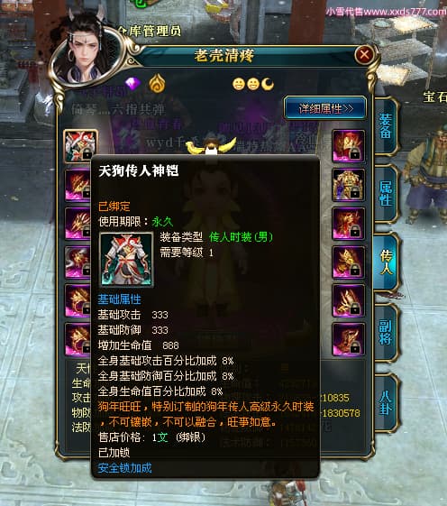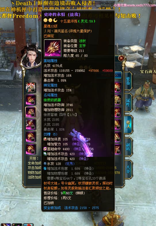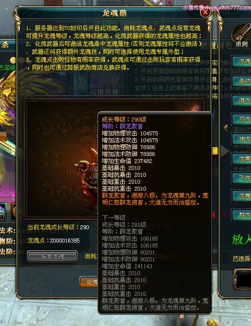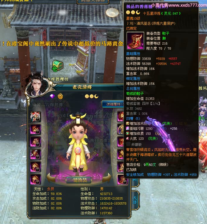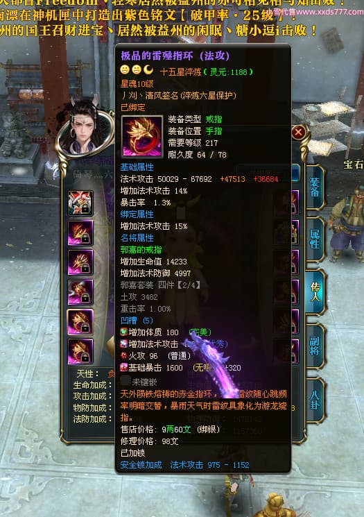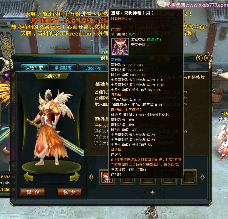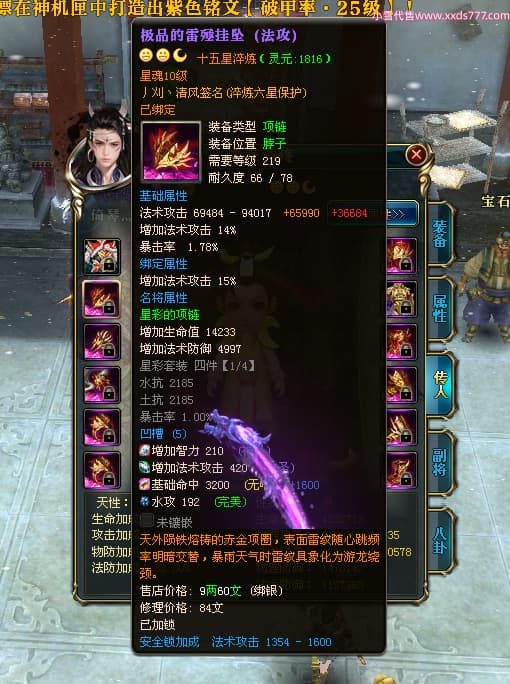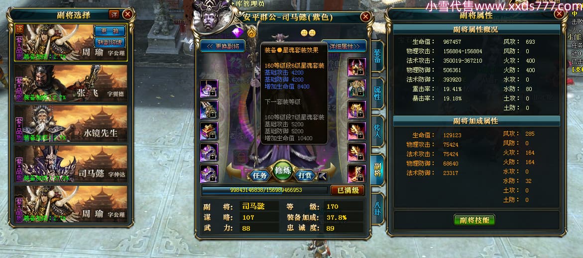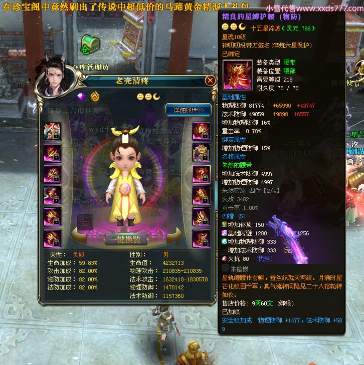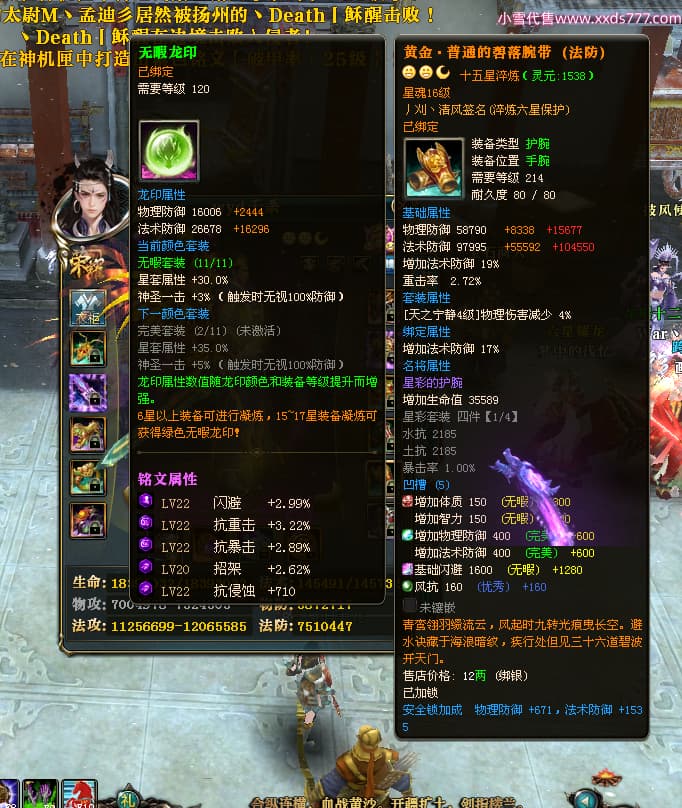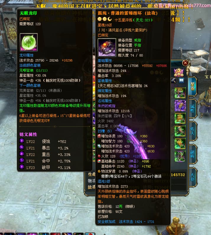 编号X24386 wyd千杀 龙啸风云 扬州 本国排名54名 16690W战力 人物黄金普通橙15X(1件18X4件混沌) 传人极品紫15X 副将精良紫12X 马史诗紫12X 极品紫15披风 人物星魂16级 传人星魂10级 副将星魂6级 马星魂13级 人物铭刻15级 点亮16星 马铭刻12级 点亮12星 人物绿龙印(2件紫龙印) 马黄龙印 六等单双属性神圣完美无暇石头 黄孔 已开3次永久15星套