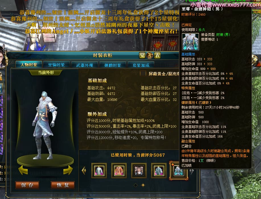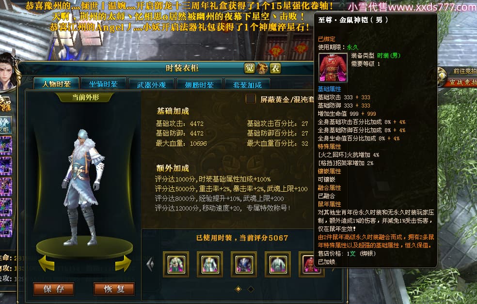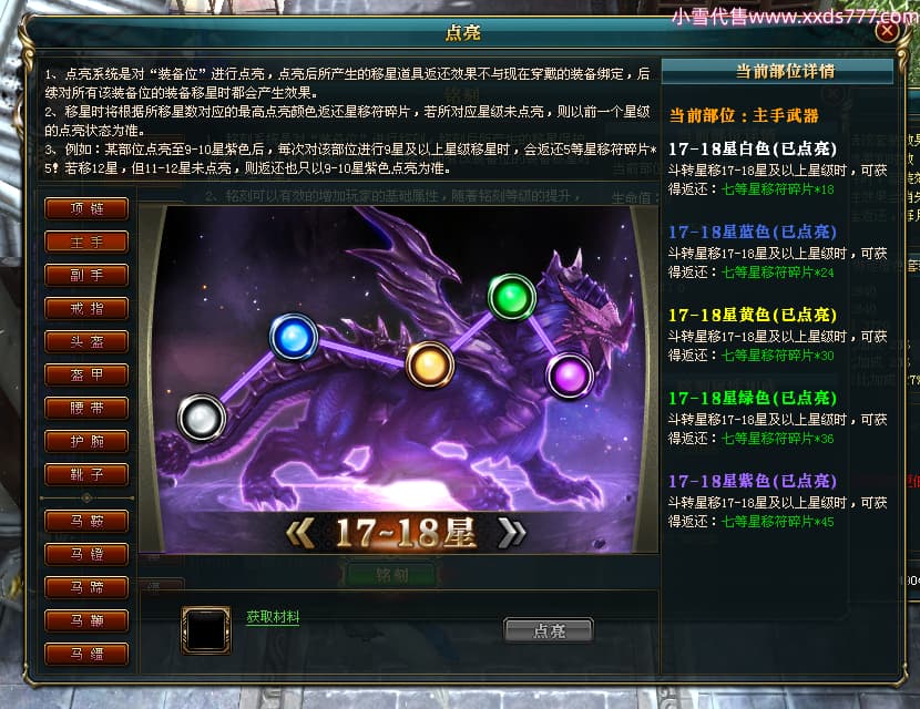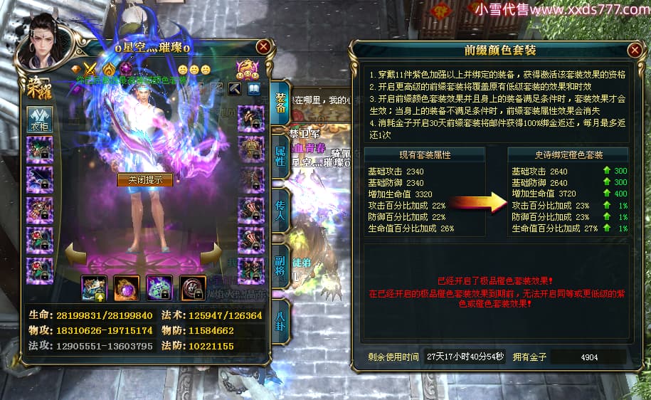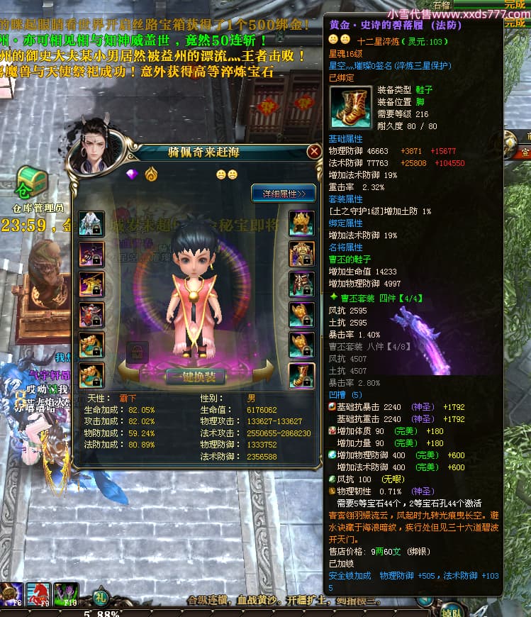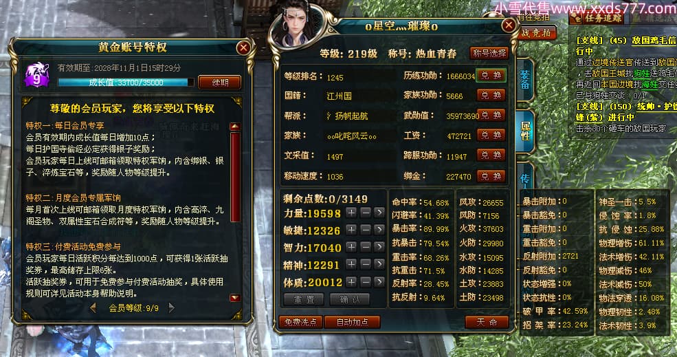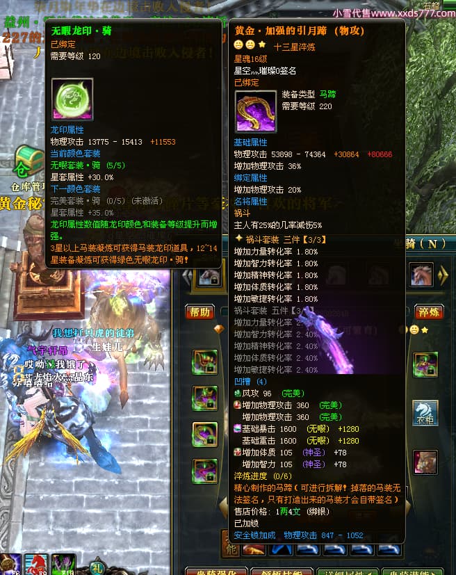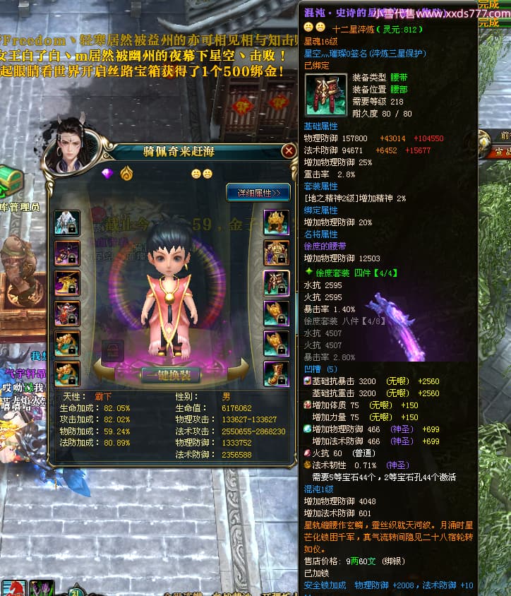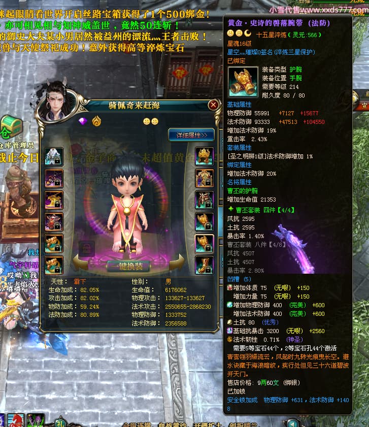 编号X24387 o星空灬璀璨o 龙啸风云 江州 世界排名30名 30128W战力 人物黄金极品橙18X(9件混沌) 传人黄金史诗紫12X(1件18X2件15X) 副将普通橙12X 马黄金加强橙13X 极品紫16披风 人物星魂16级 传人星魂16级 副将星魂12级 马星魂16级 人物铭刻7件18级1件17级其余16级 人物点亮4件18星其余16星 马铭刻15级 点亮14星 人物紫龙印 马绿龙印 六等单双属性神圣完美优秀石头 黄绿孔
