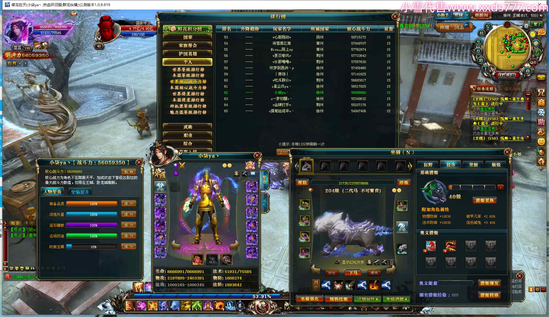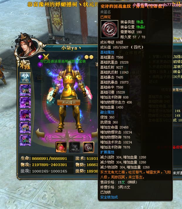 编号Q24392 小柒ya丶 群龙纵横 幽州 世界排名62名 5605W战力 人物黄金极品橙12X(6件15X8件混沌) 马黄金加强橙12X 人物紫龙印 马绿龙印 六等单双属性石头 已开完永久15星套 可以转移百分百安全
