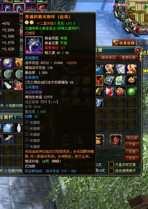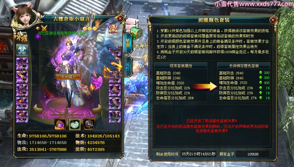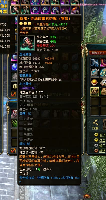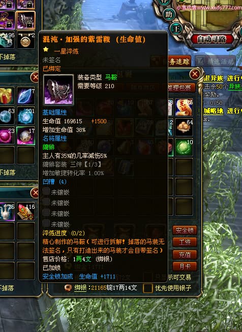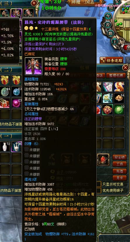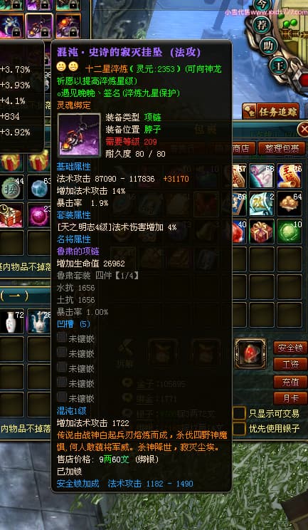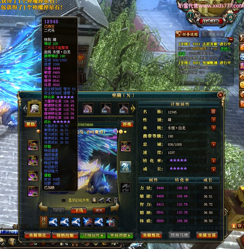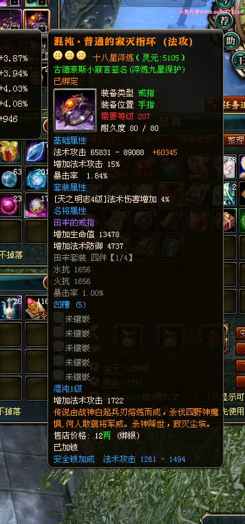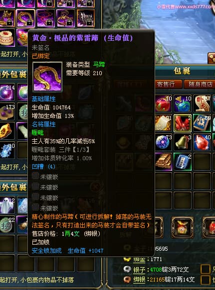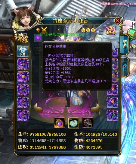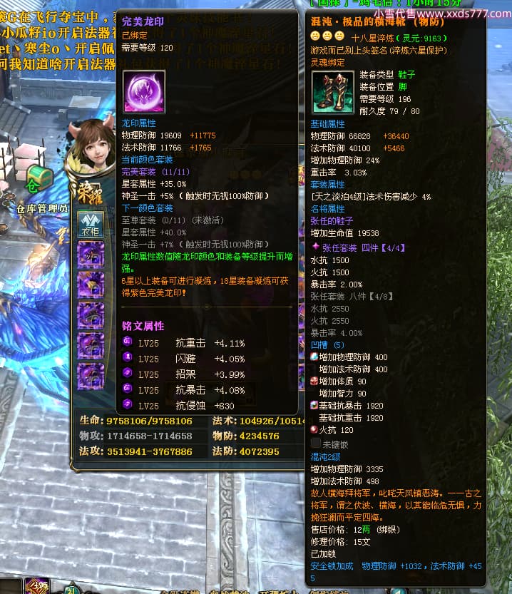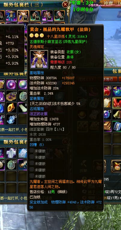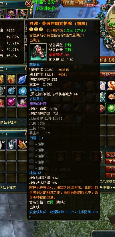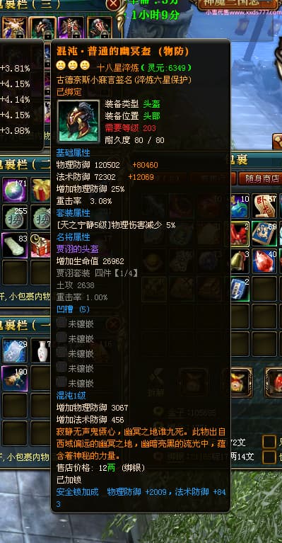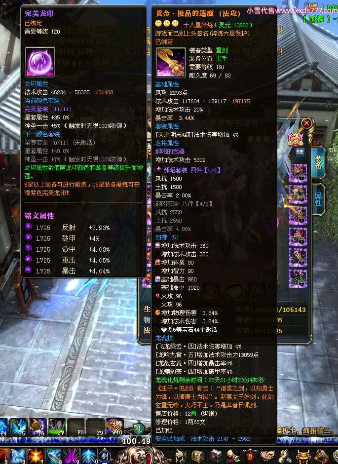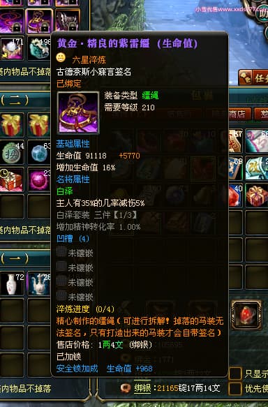 编号L24403 古德奈斯小寐言 龙战王者 江州 世界排名10名 9273W战力 人物黄金极品橙18X(9件混沌) 马黄金极品橙13X(双潜能50级29级) 人物紫龙印 马绿龙印 六等单双属性石头 已开3次永久18星套 可以转移百分百安全